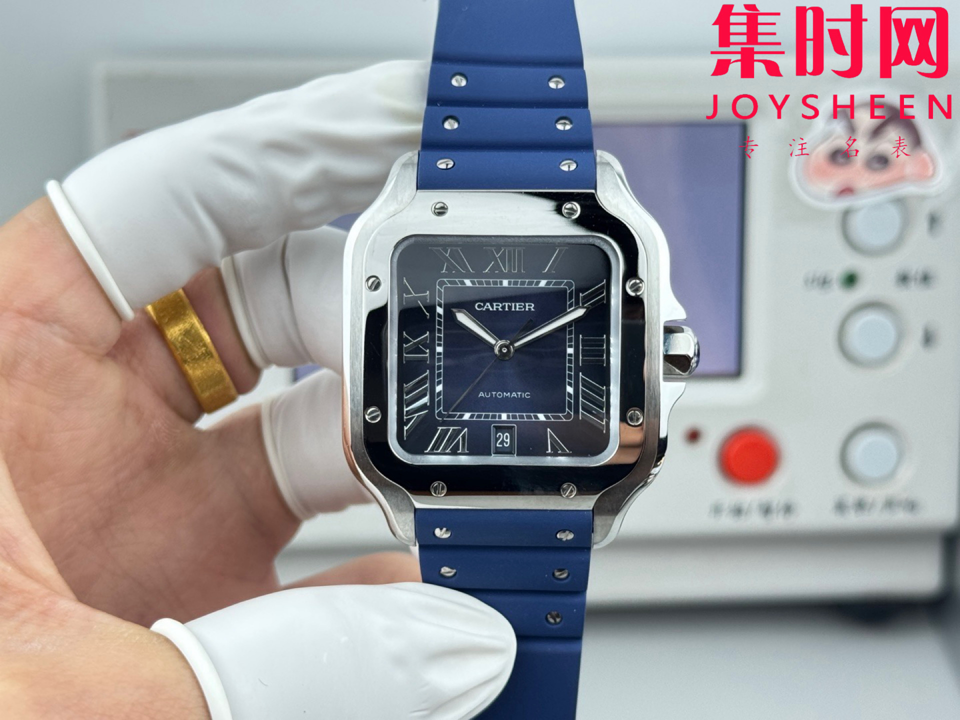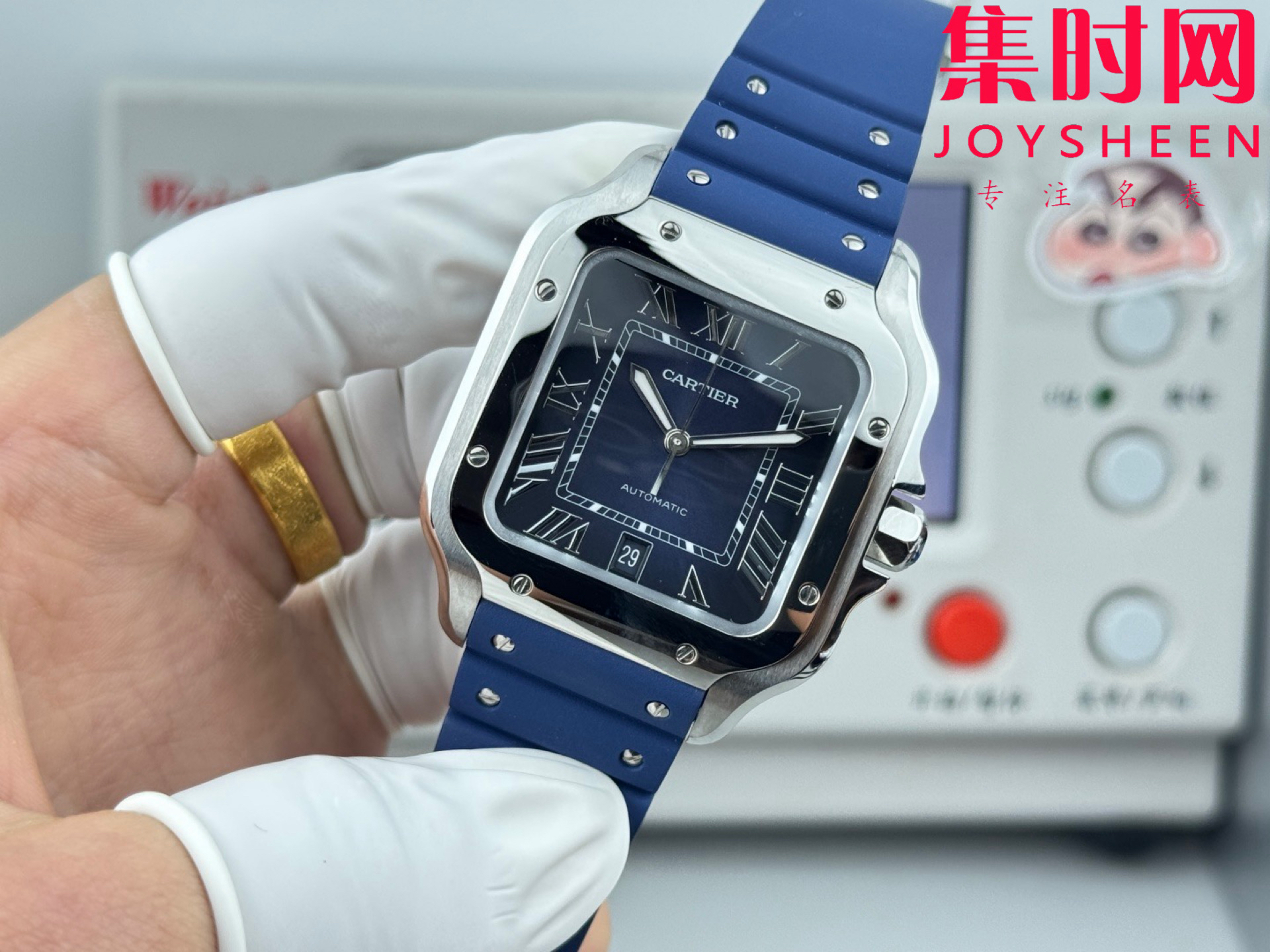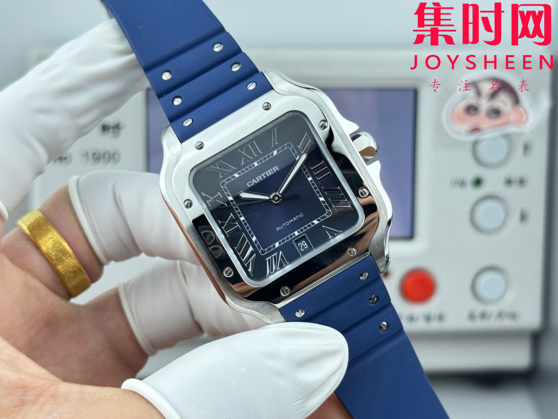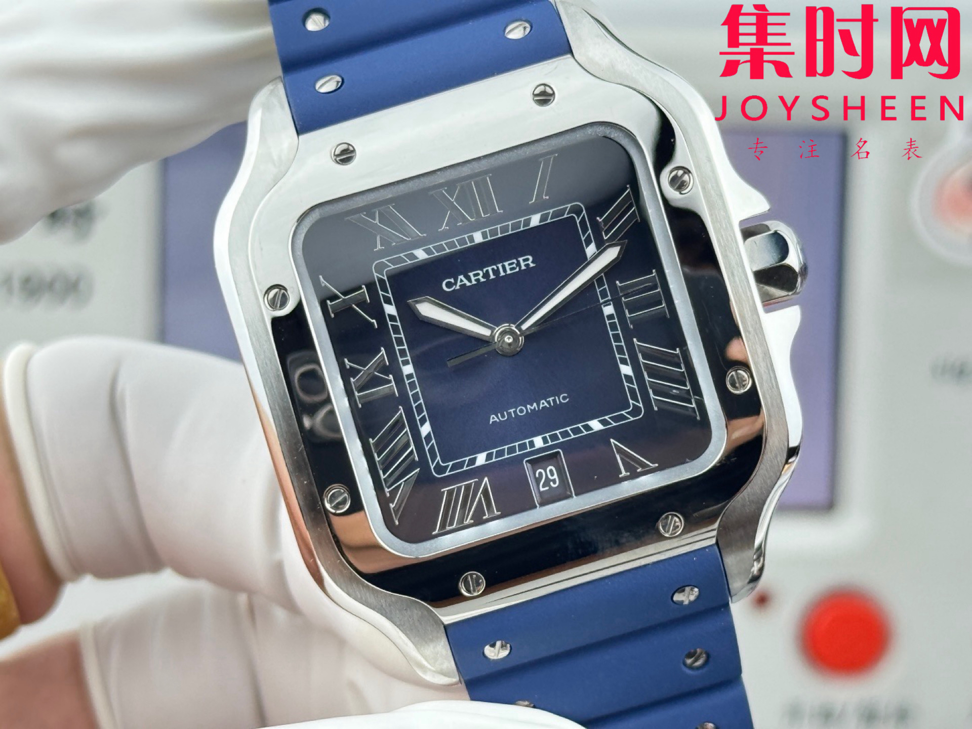 GF卡地亚山度士系列 山度士大号 蓝色盘 方形男士腕表 绝对是绕不开的经典 表径39.8mm,舒适感很不错。从细节上看,表冠镶有蓝色合成多切面尖晶石,增添了许多精致感。6点钟还设置了日期显示窗口。采用进口9015改Cal.1847 MC自动上链机械机芯,在稳定性和日常佩戴的可靠性上没有问题。防水达到100米。总的来说,这款山度士更适合那些既看重品牌调性,又希望腕表能兼顾实用性的用户。