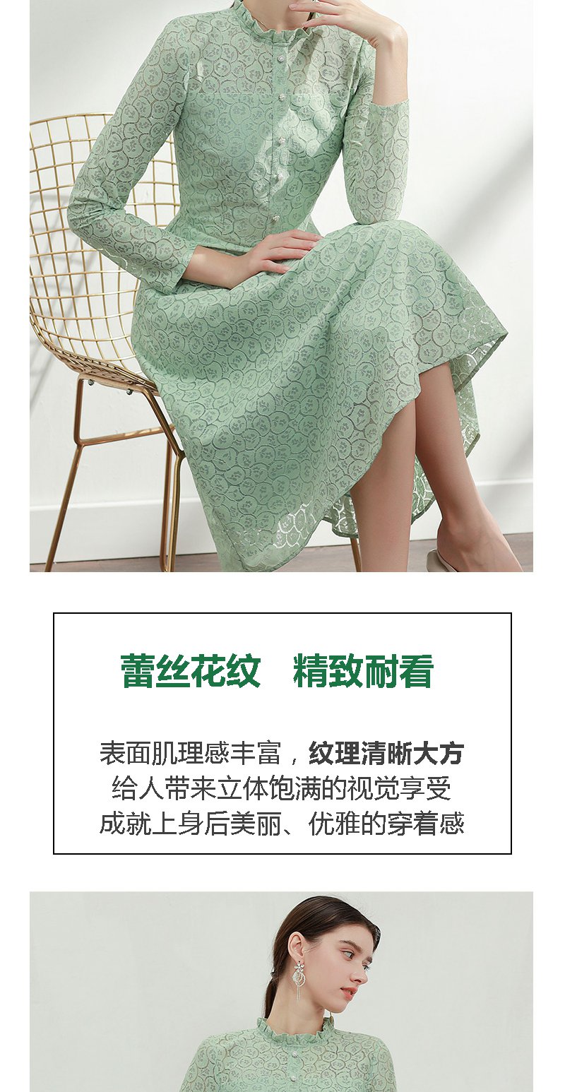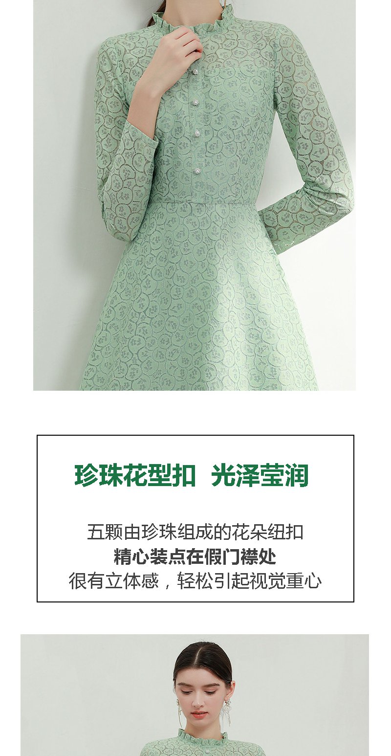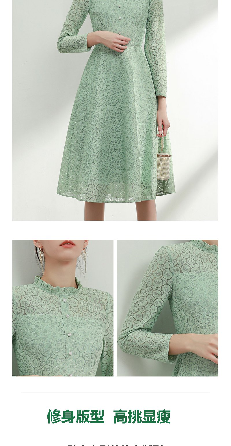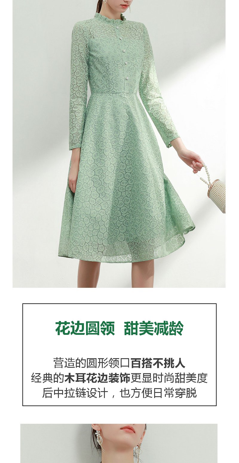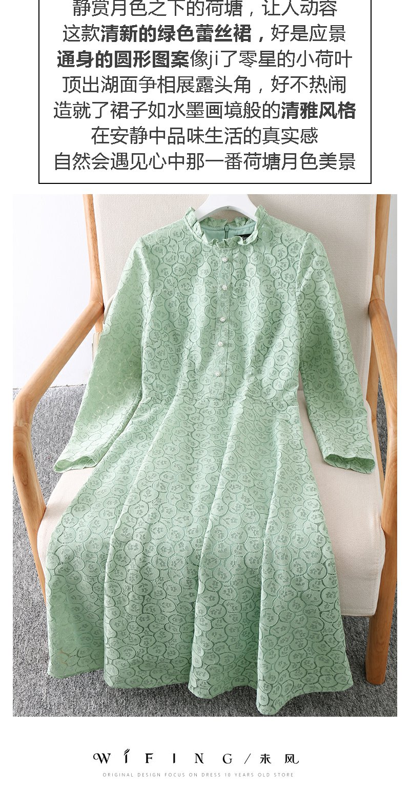未风绿色蕾丝连衣裙女秋2024年秋季新款女装气质高腰减龄长袖裙子
