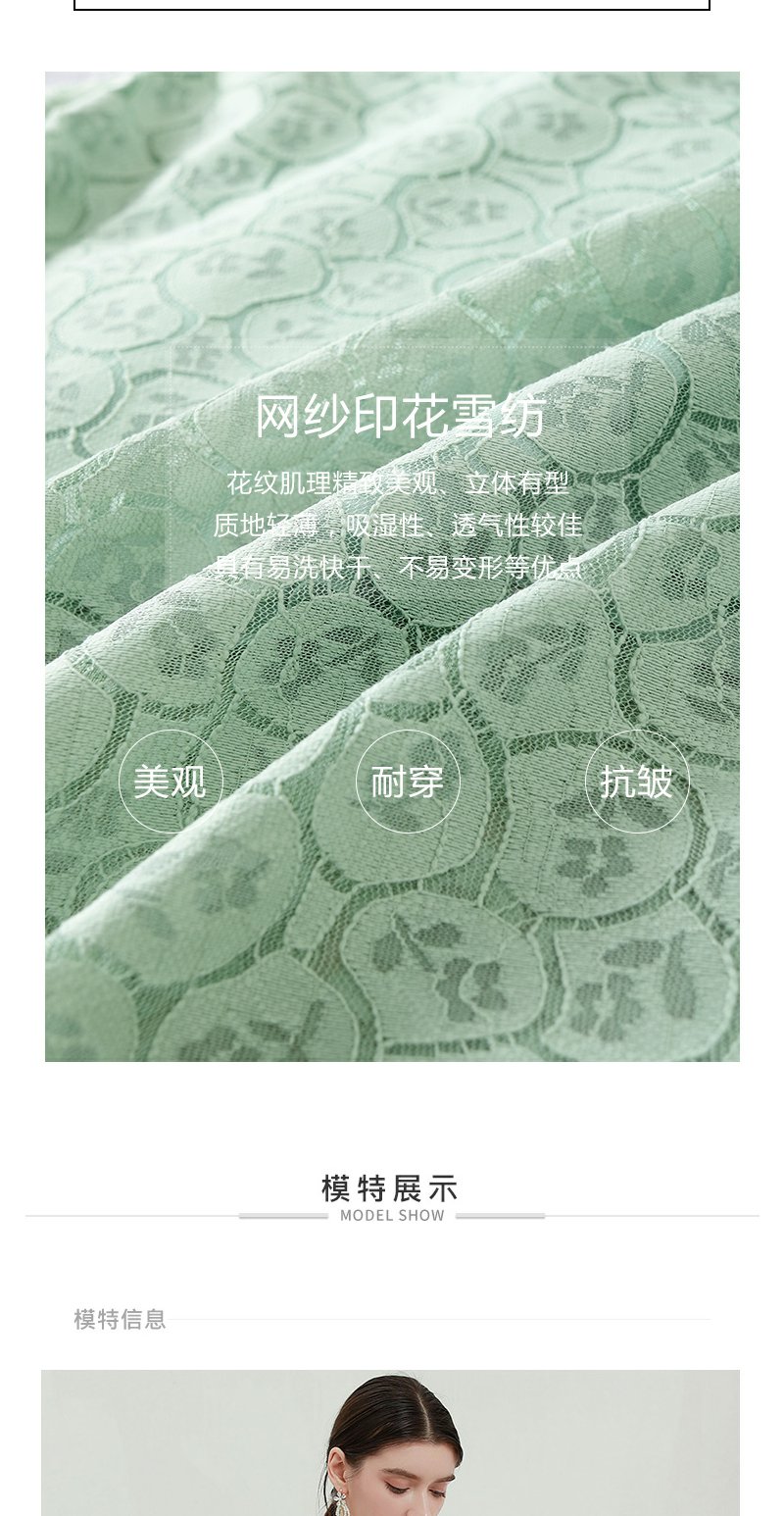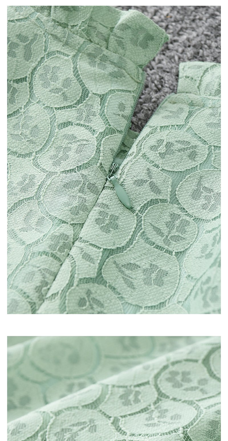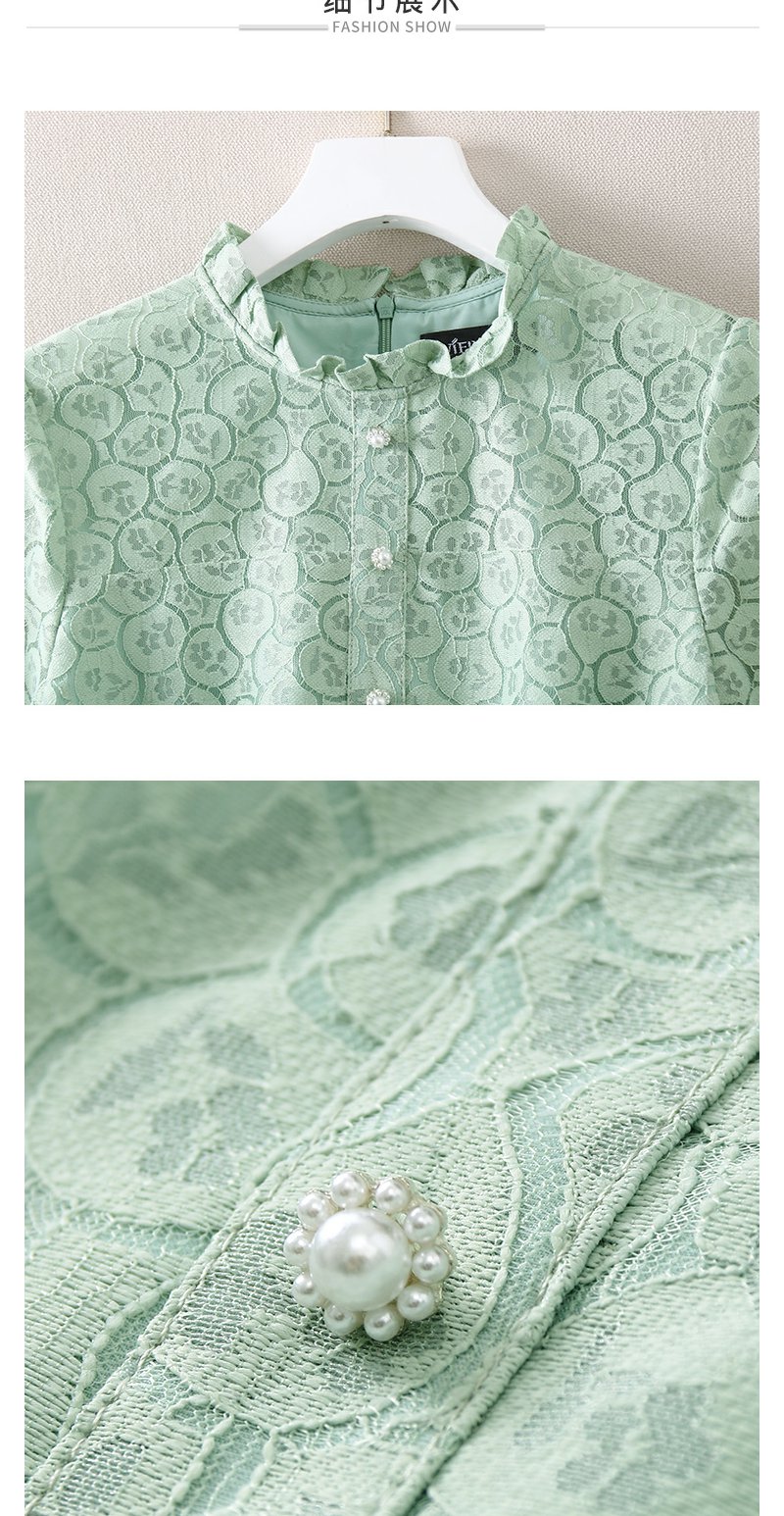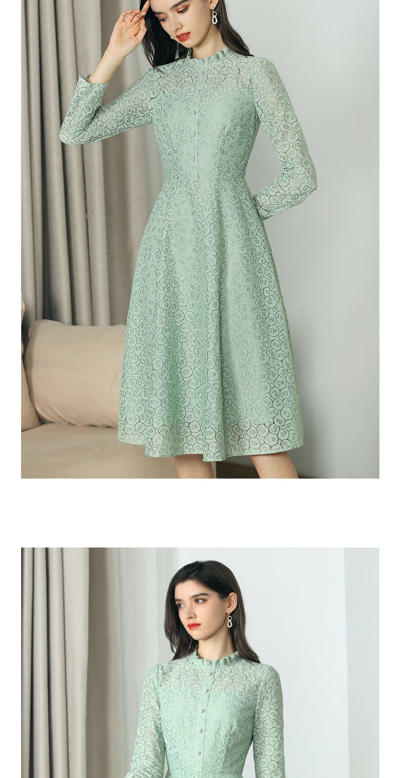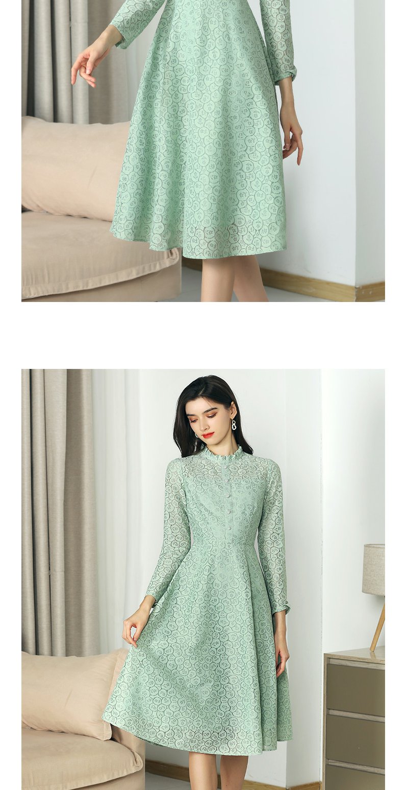 未风绿色蕾丝连衣裙女秋2024年秋季新款女装气质高腰减龄长袖裙子