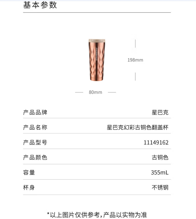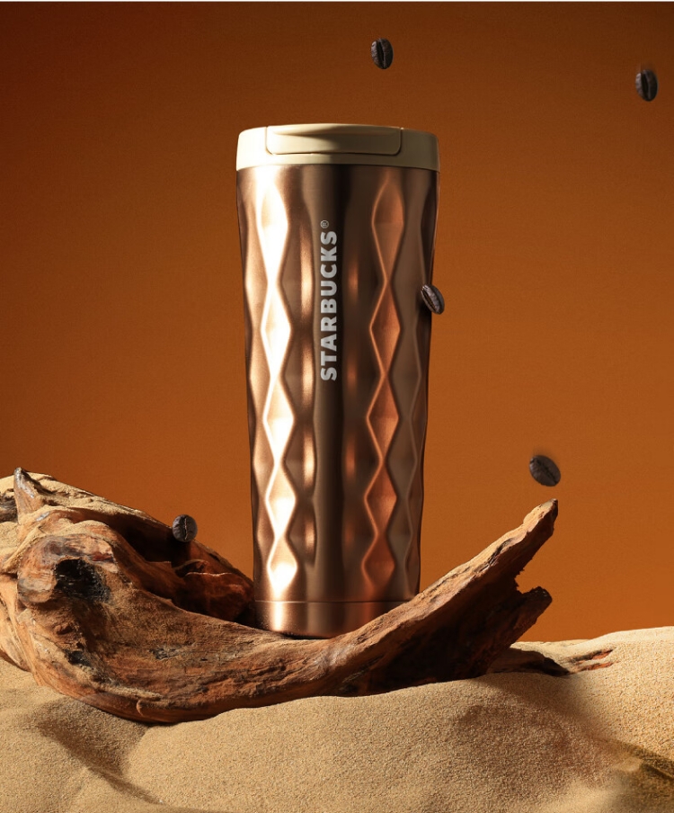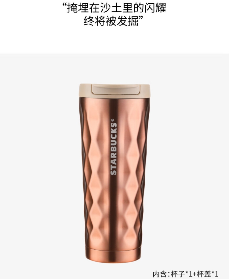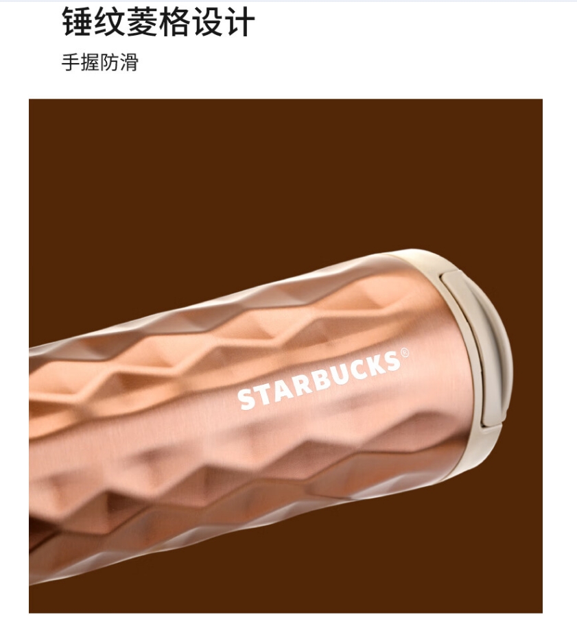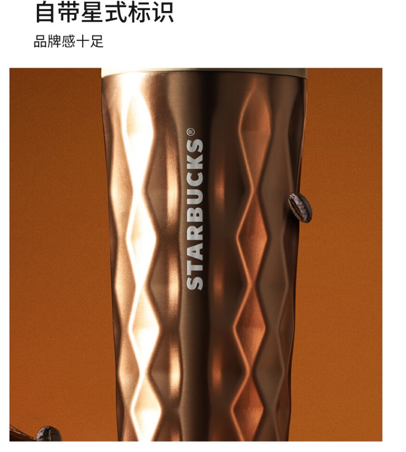 星巴克 杯子双层保护幻彩古铜色翻盖保温杯11149162 容里355mL