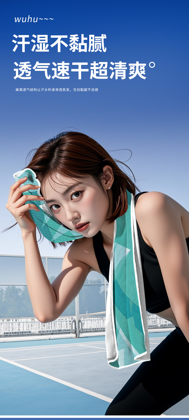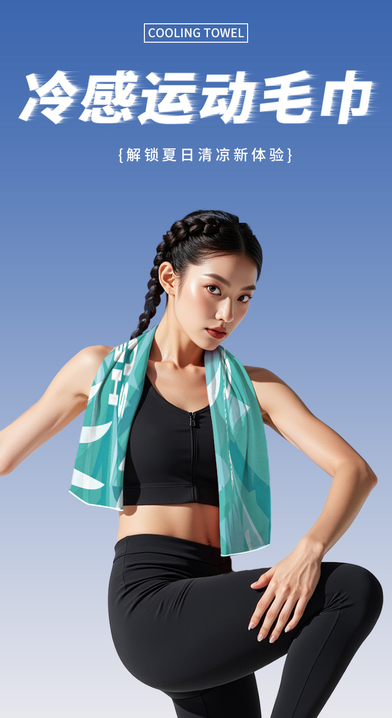 【解锁夏日❗️清凉新体验🔥冷感运动毛巾】凉感新科技「物理降温」体验一甩即凉,速干运动毛巾,吸汗健身房羽毛球降温冰凉感毛巾L
