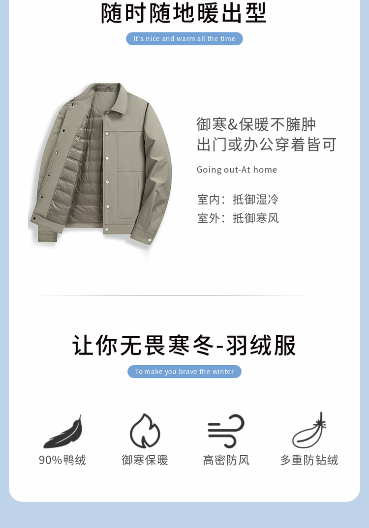 【90%鸭绒】圣得西轻薄羽绒服男冬季韩版翻领单排扣外套