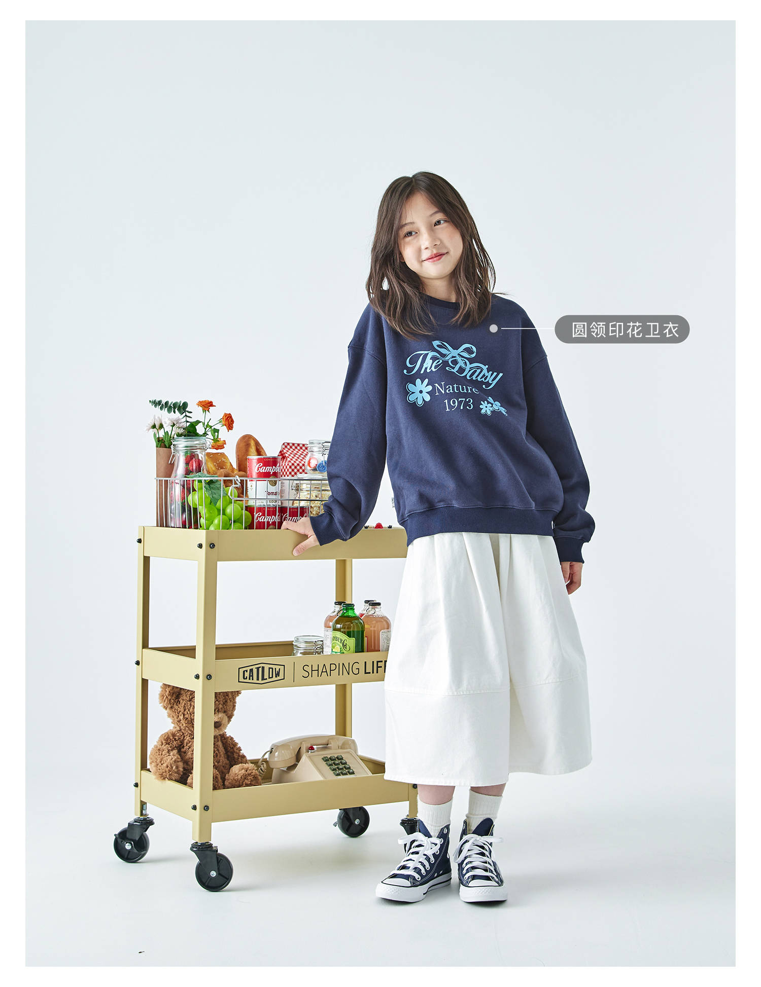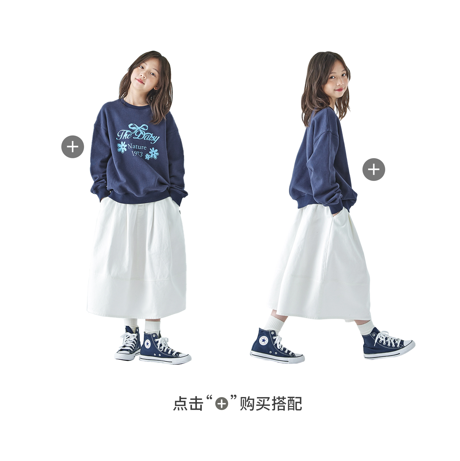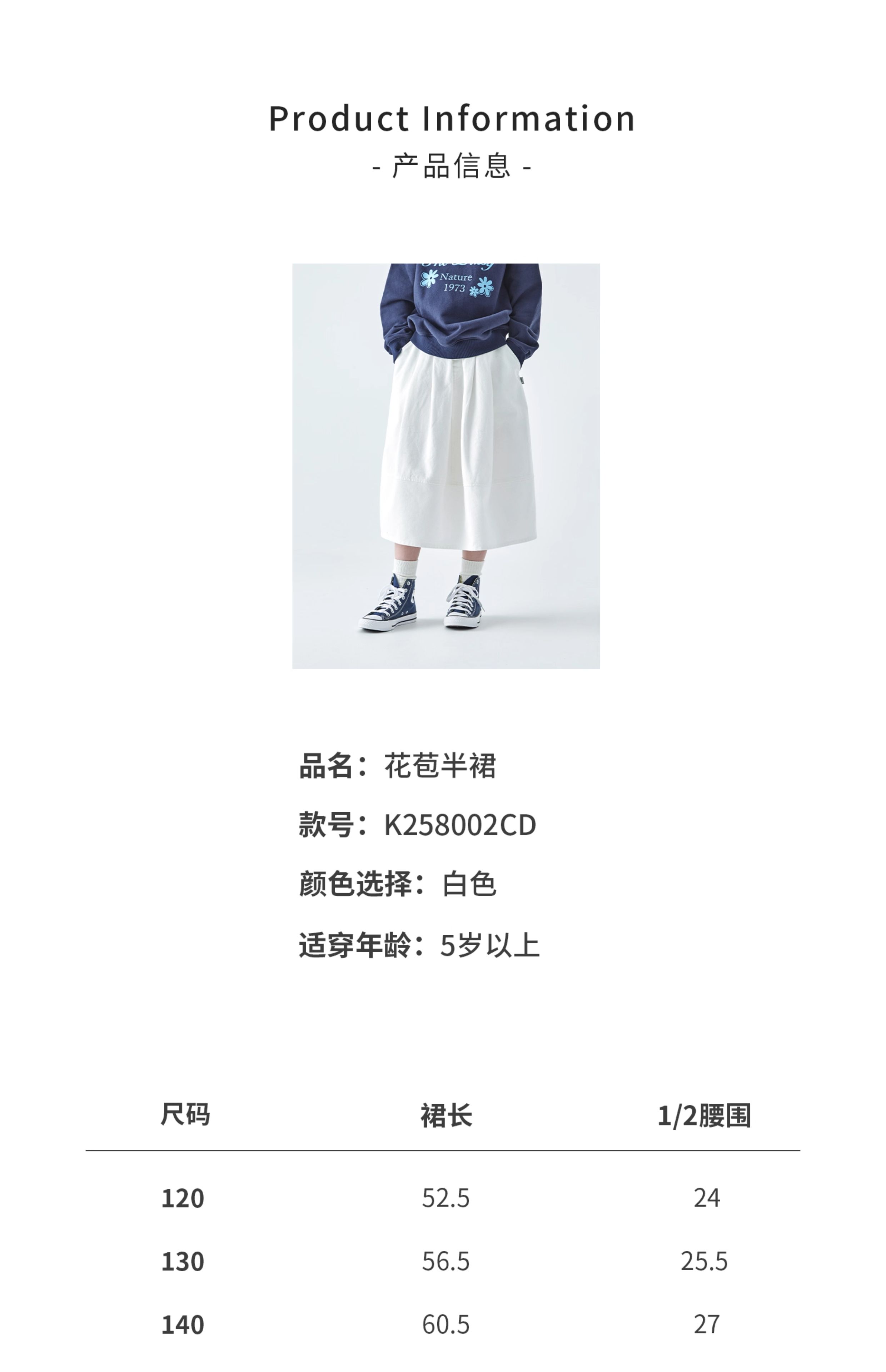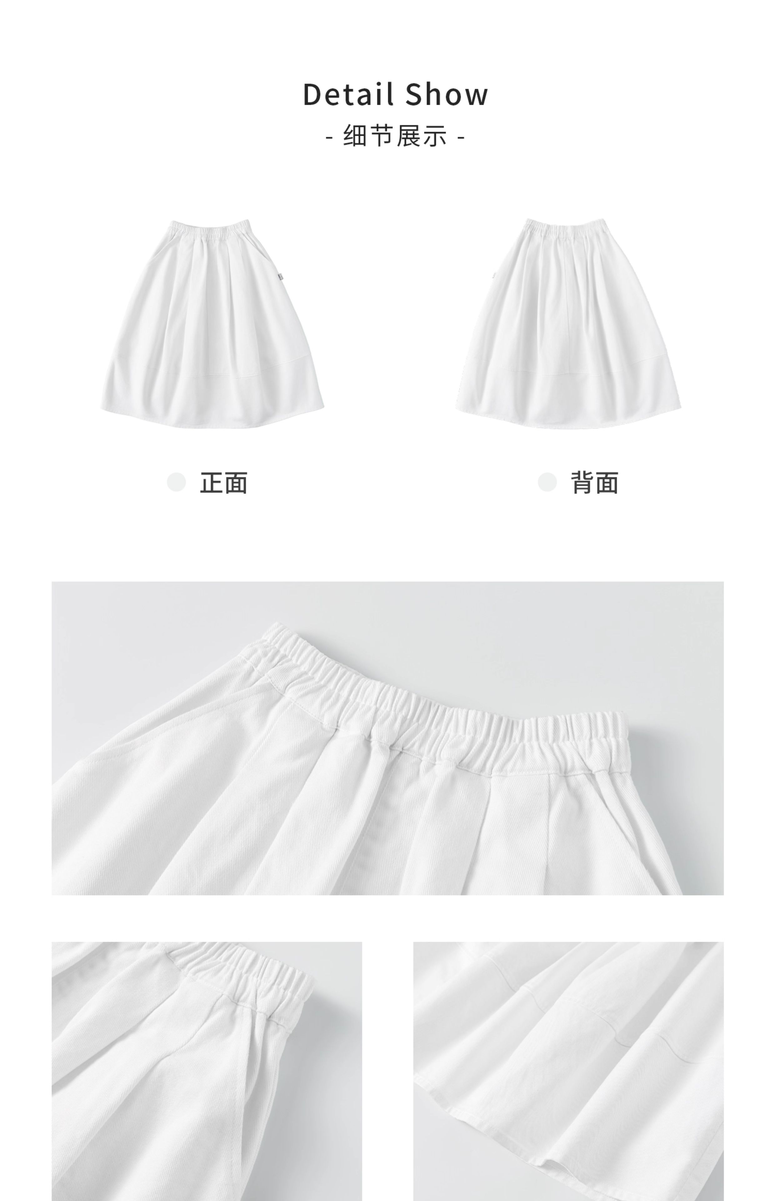 棵初2025年秋季新款亲子中大女童花苞半裙简约气质纯棉白色牛仔裙