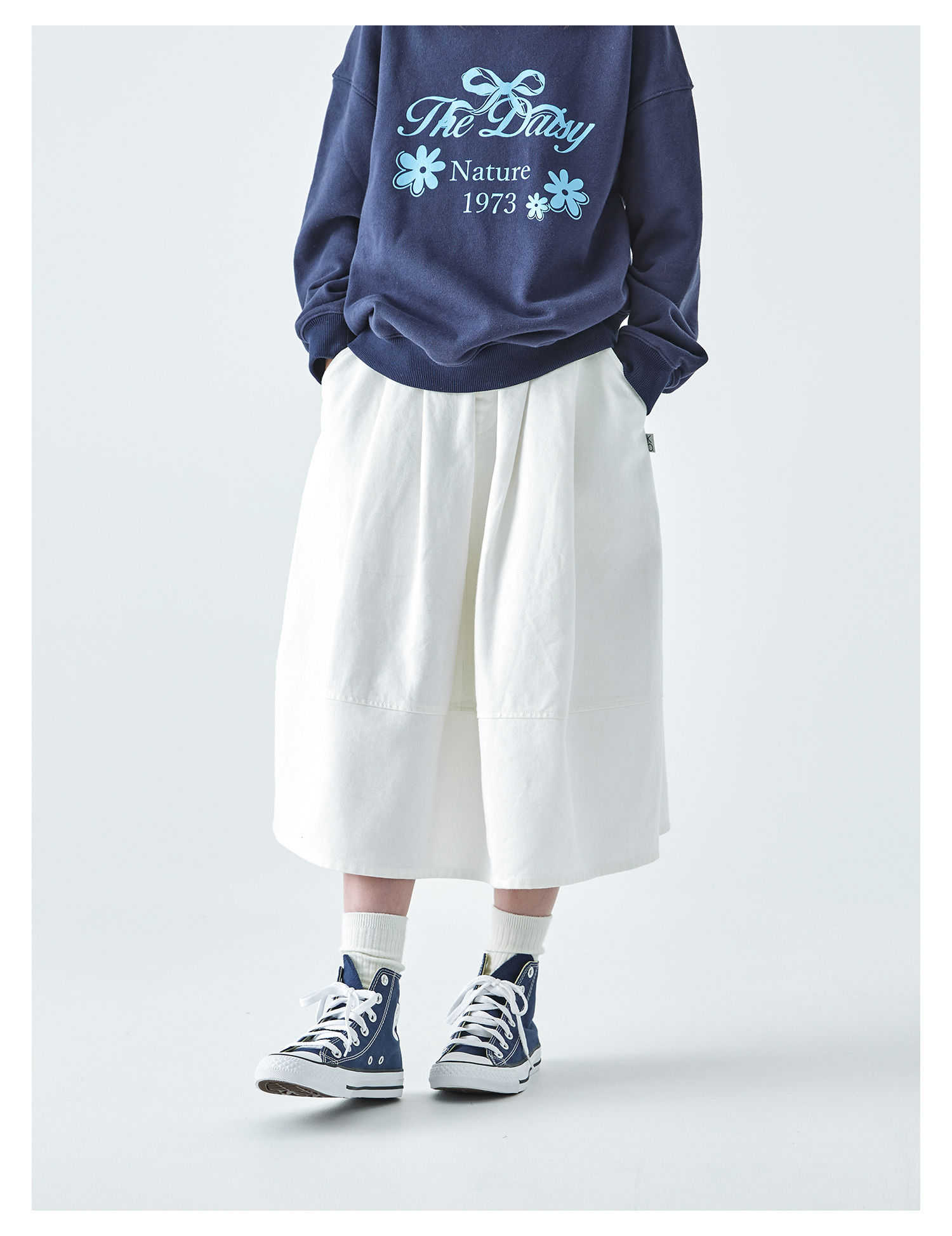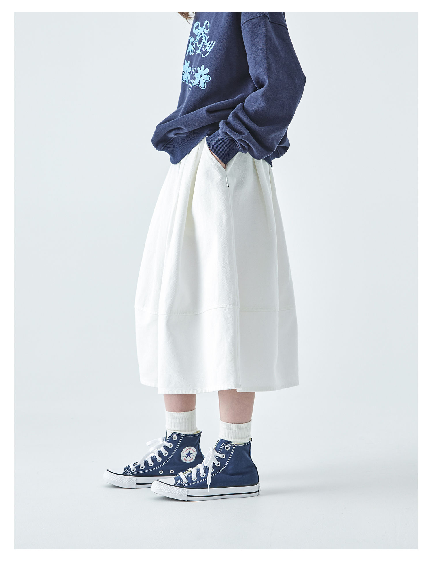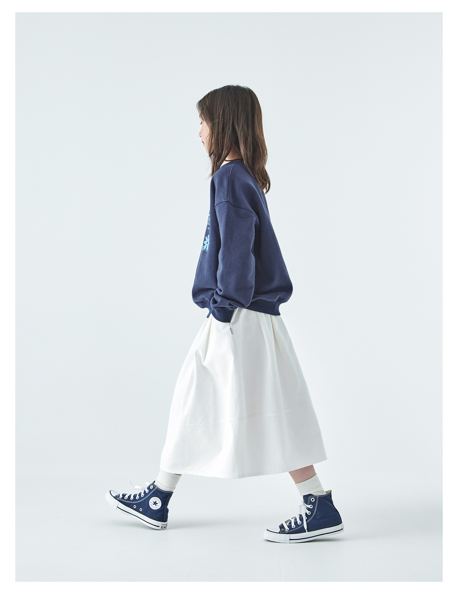 棵初2025年秋季新款亲子中大女童花苞半裙简约气质纯棉白色牛仔裙