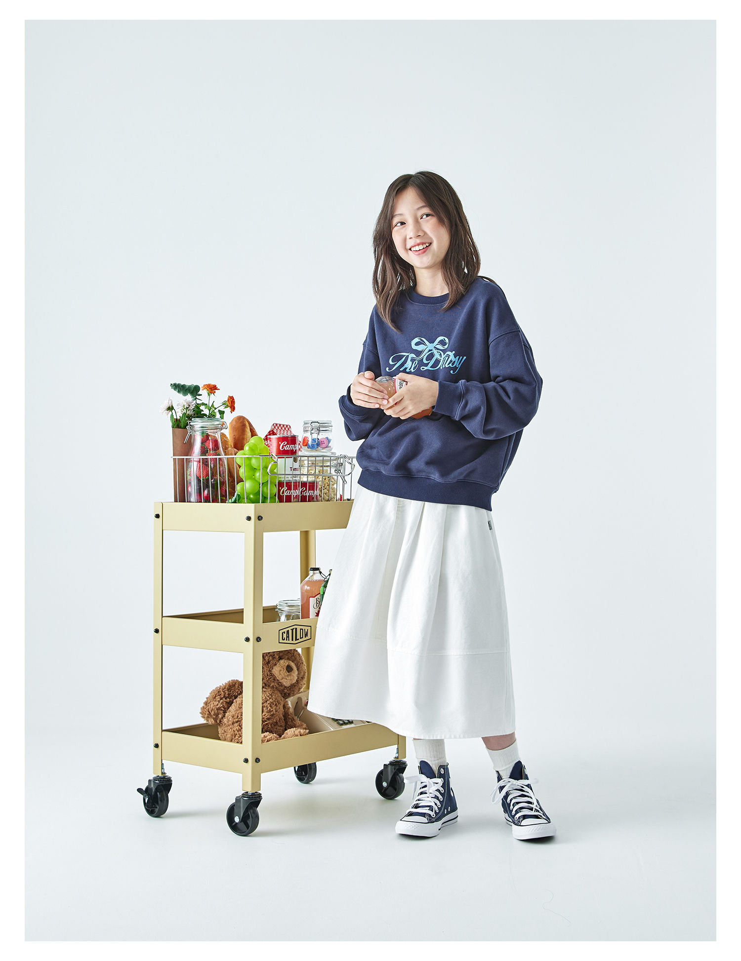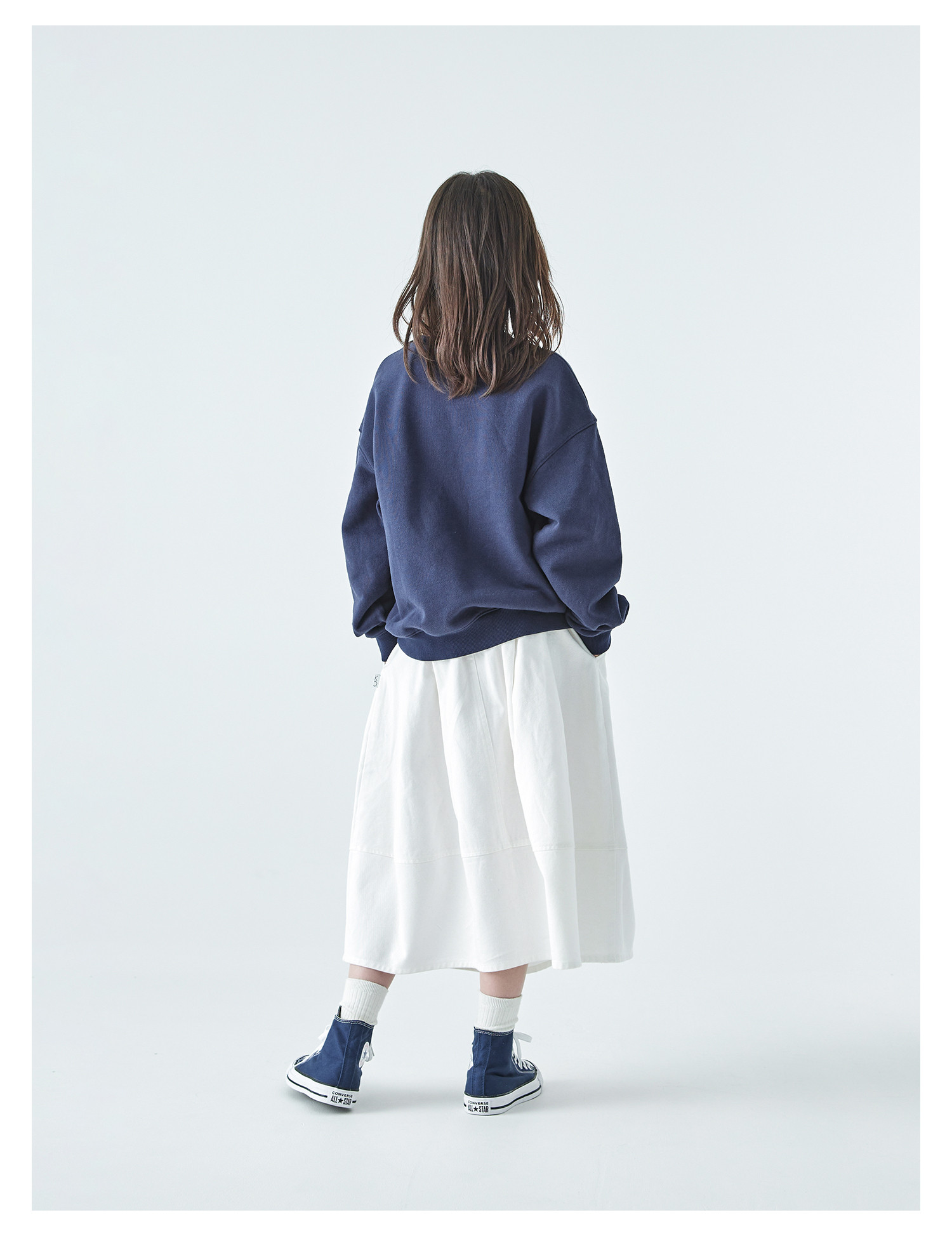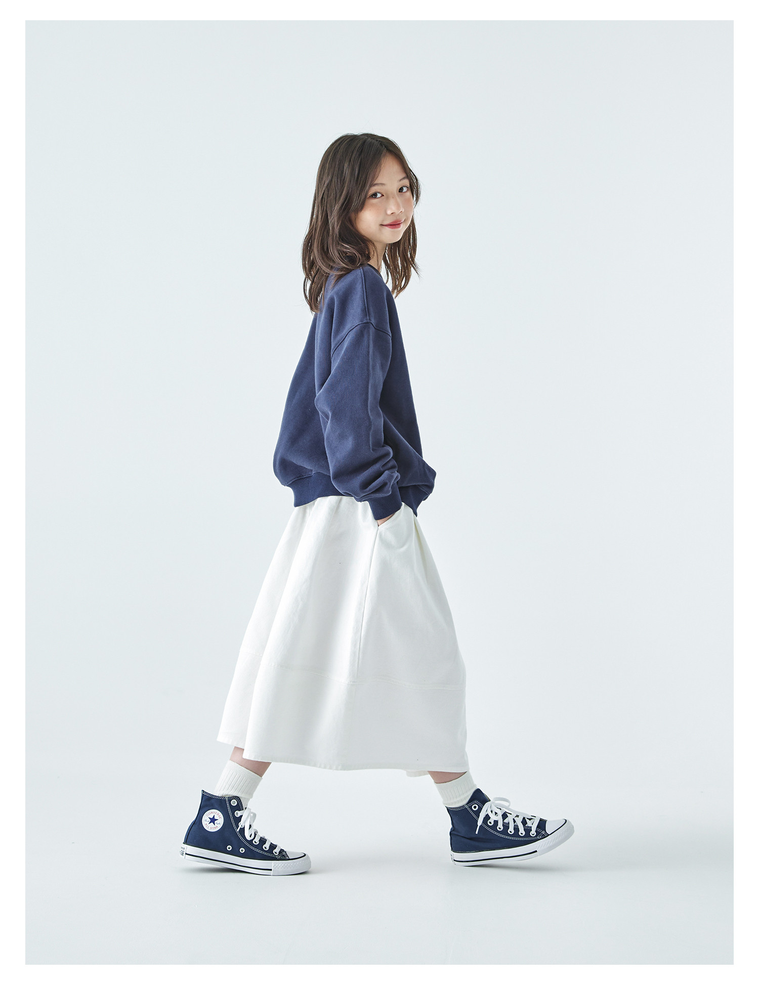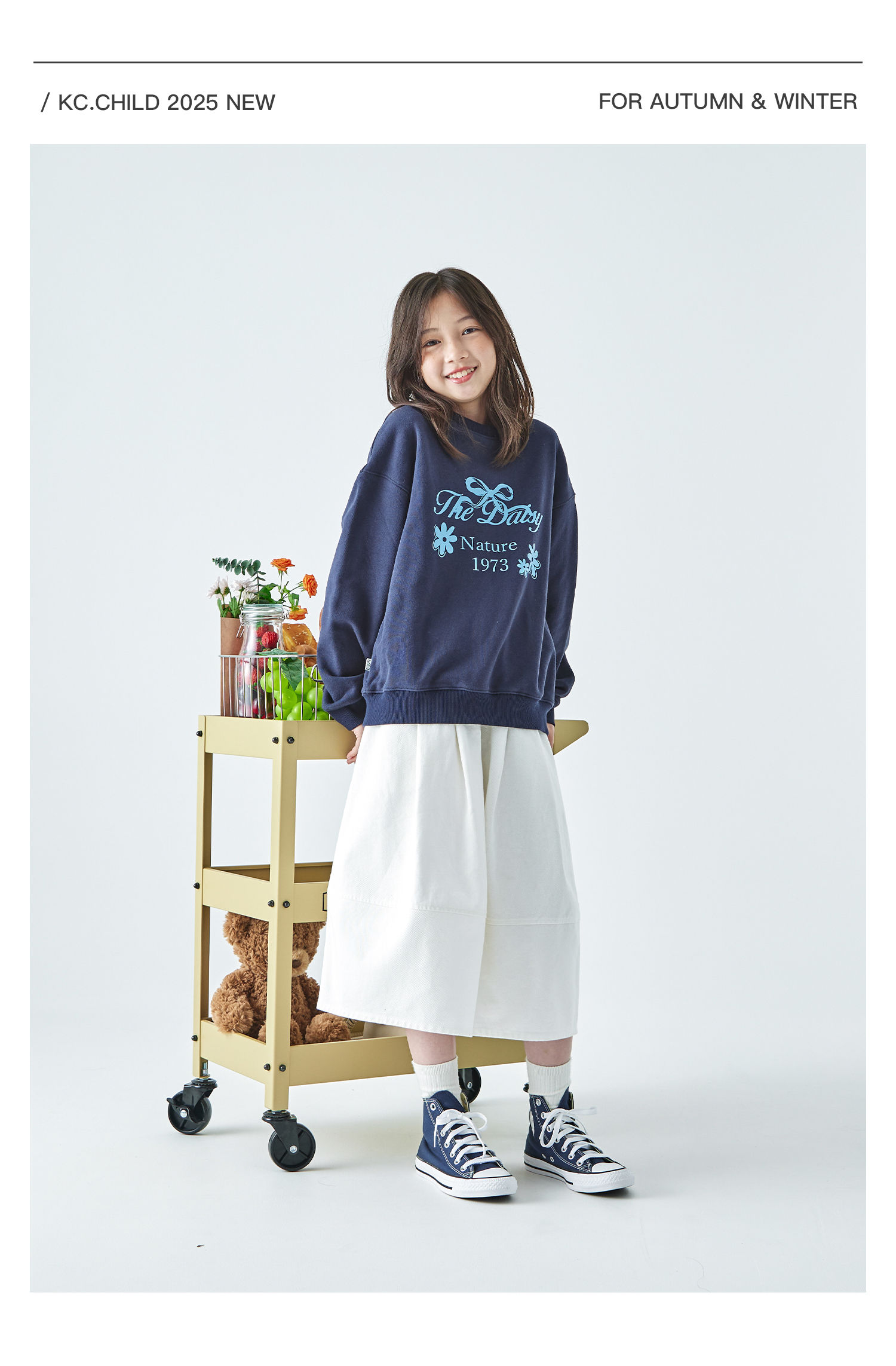 棵初2025年秋季新款亲子中大女童花苞半裙简约气质纯棉白色牛仔裙