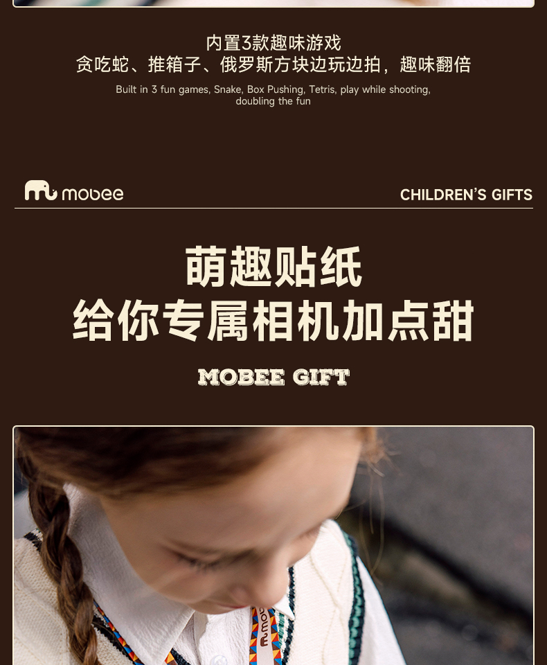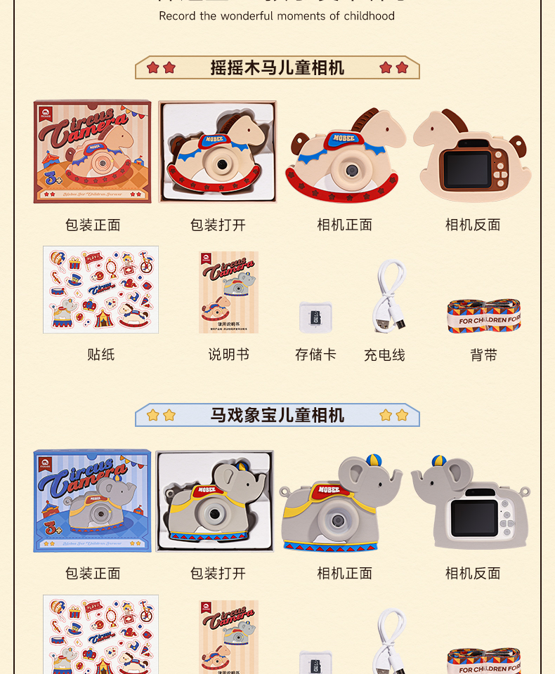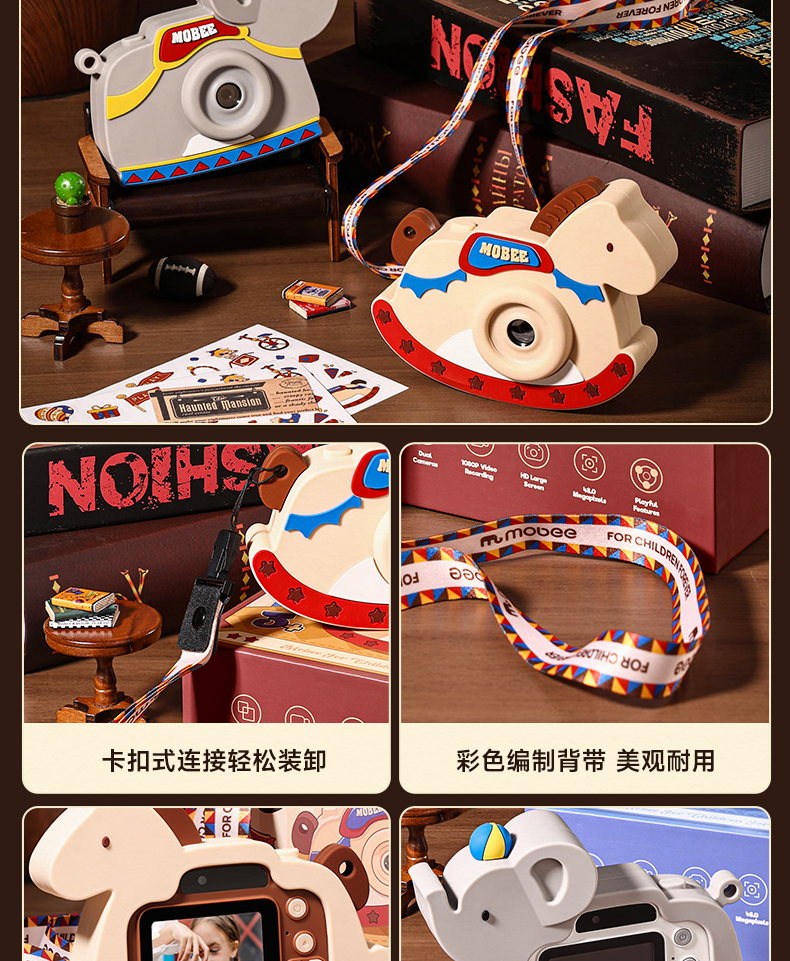 【赠32G内存卡】mobee4800W前后双摄像头 儿童摇摇木马相机 超多功能集成一体机 小巧身形 单手即可操作 马戏象宝、摇摇木马共享朋友的快乐时刻 一一定格