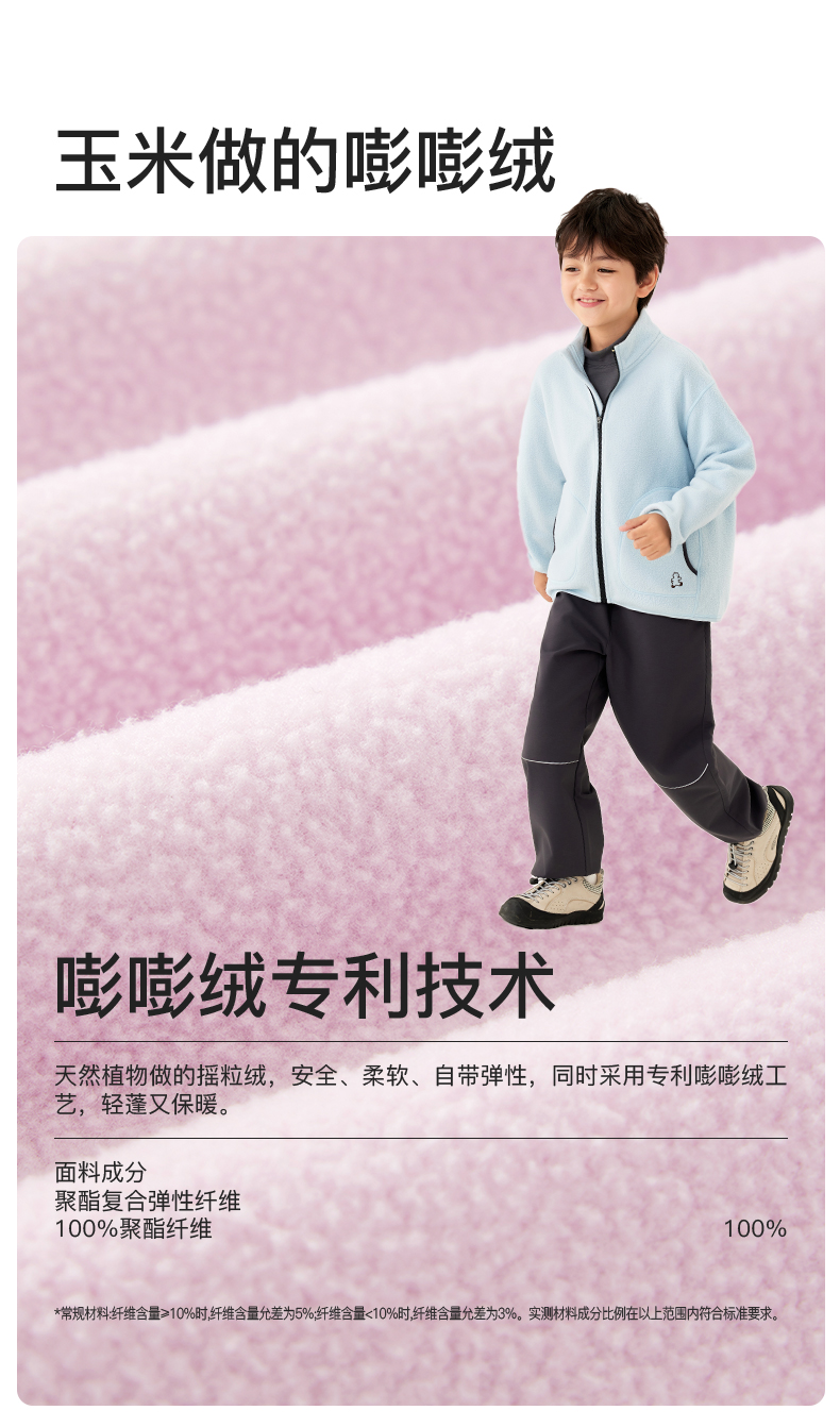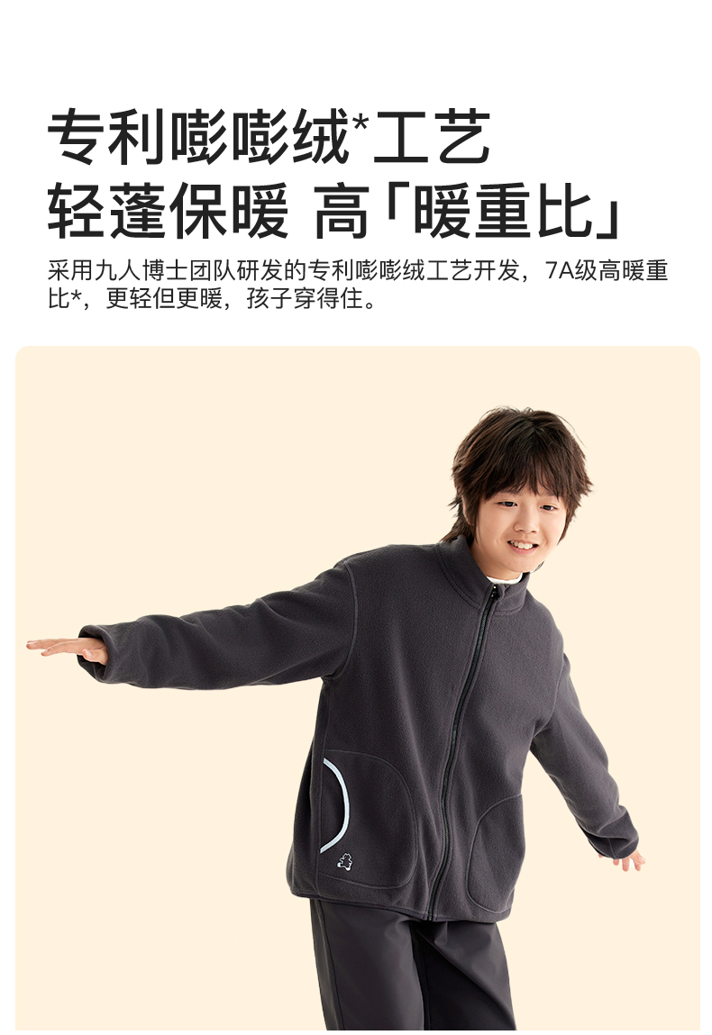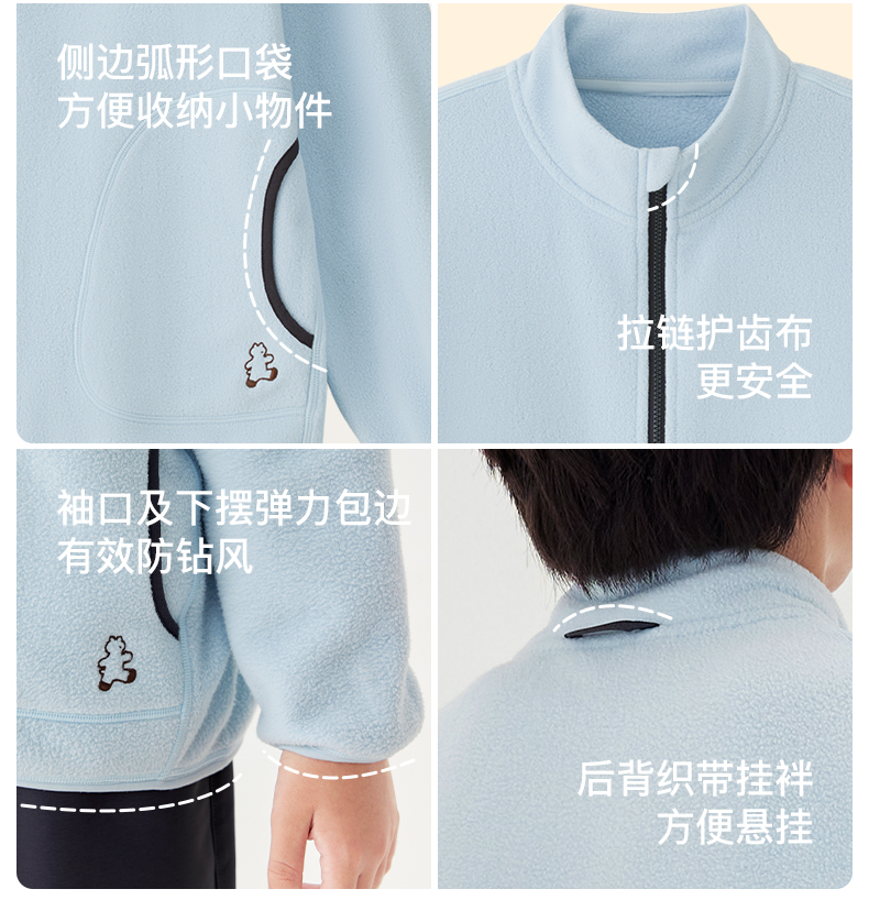 ubras旗下likeuu儿童抓绒衣男女中大童冬季校服内胆保暖外套上衣dr