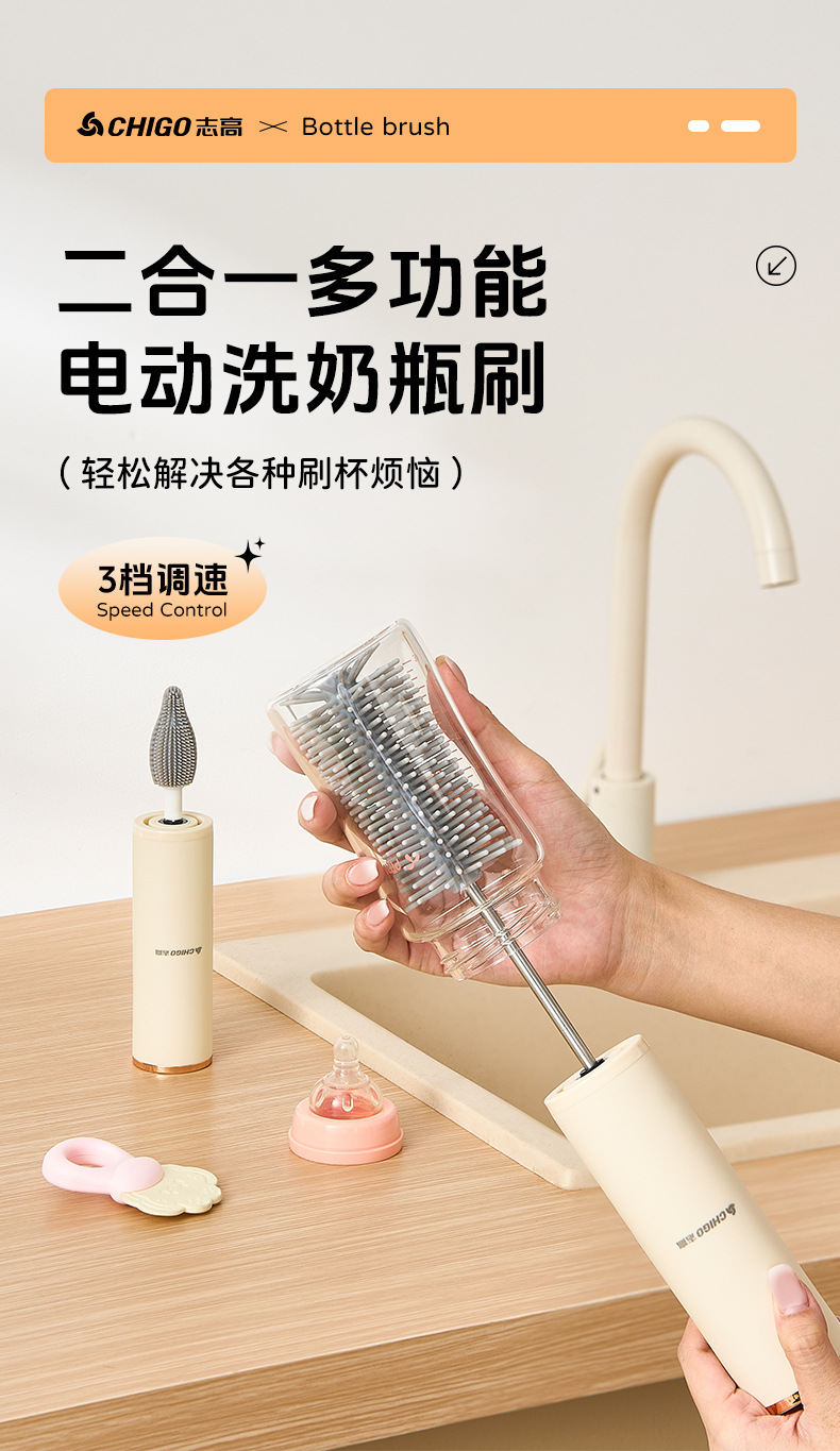 志高电动奶瓶奶嘴刷婴儿专用防水360度可洗耐用全自动洗杯子神器