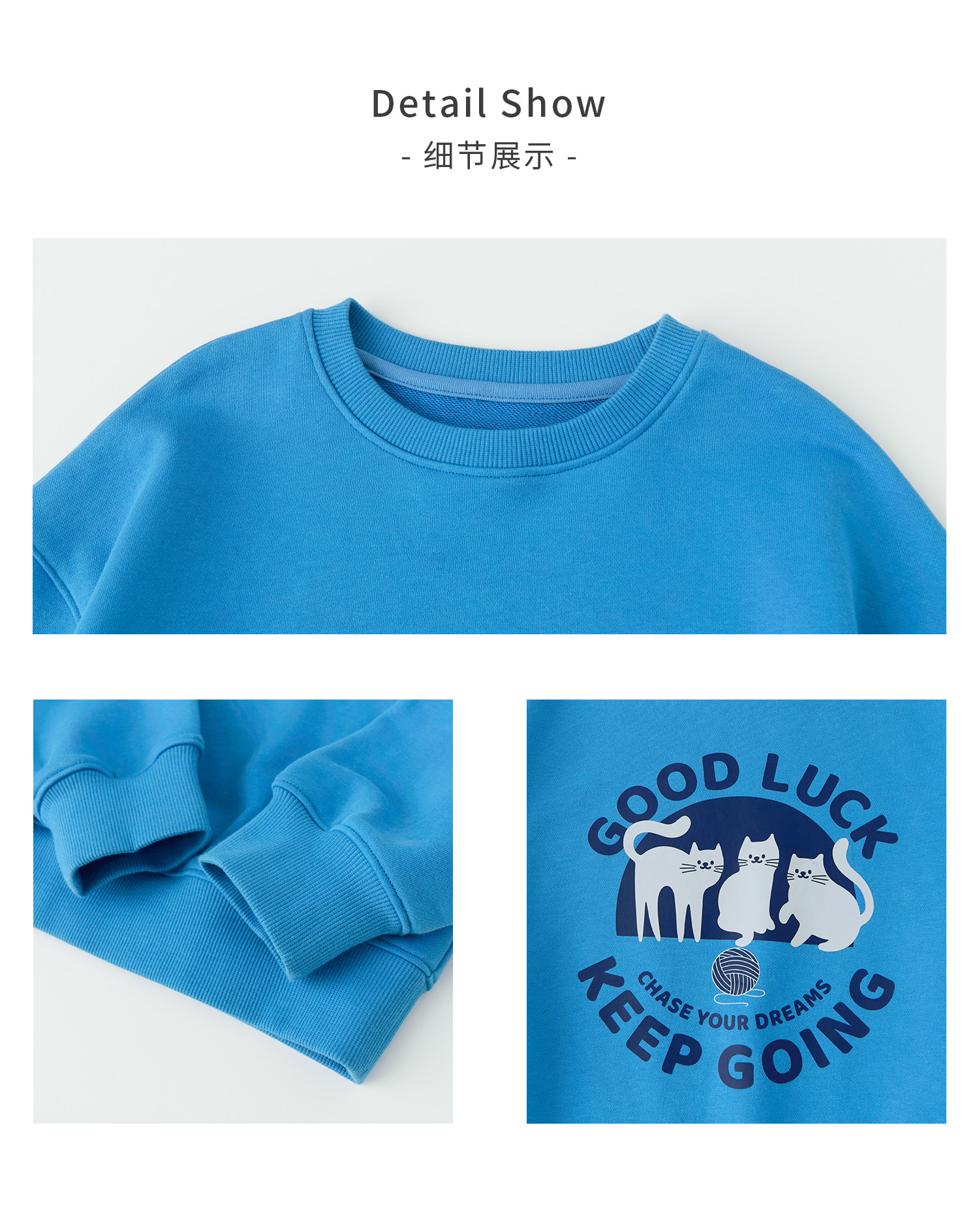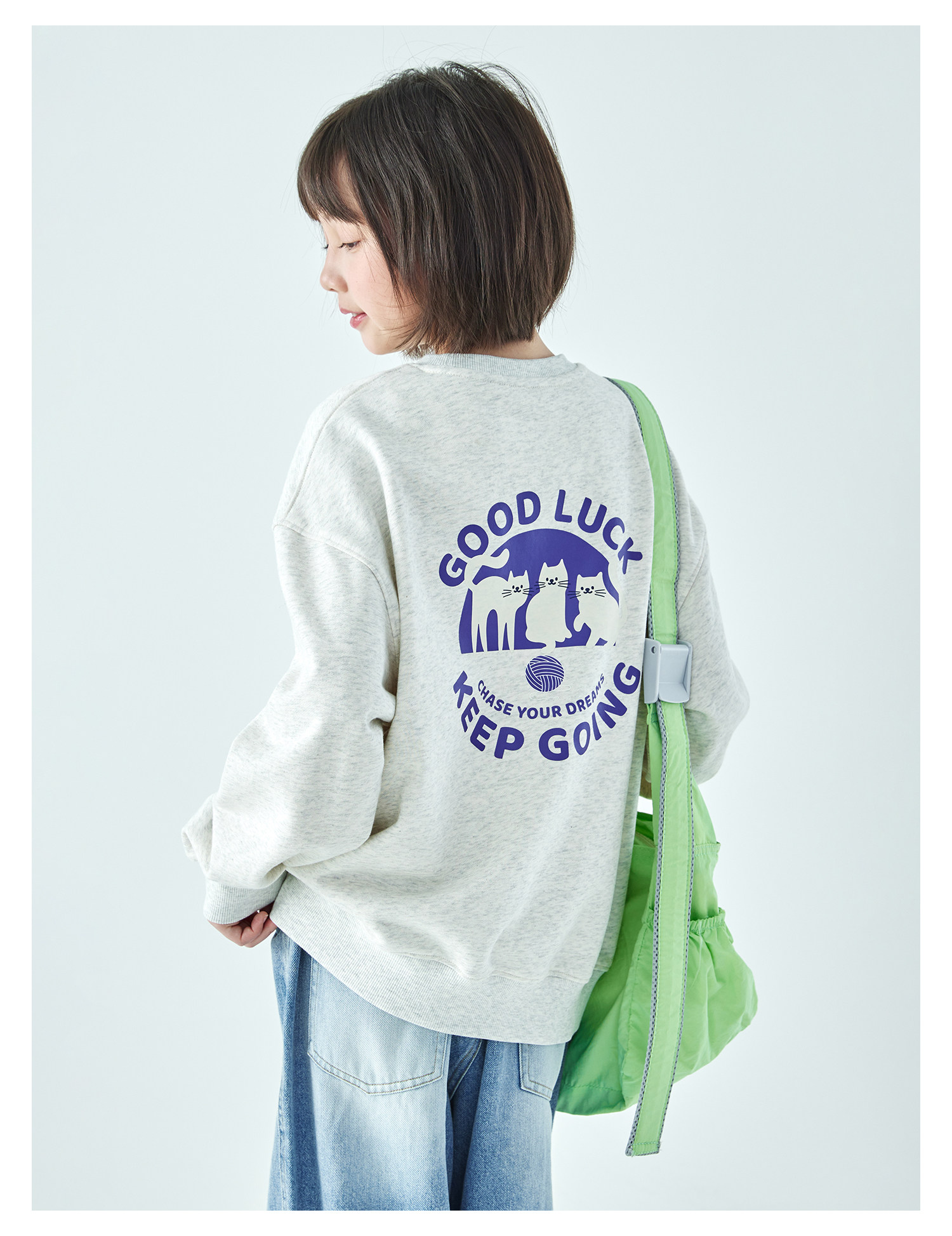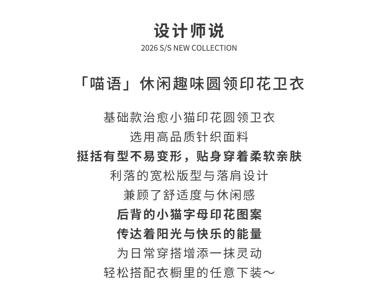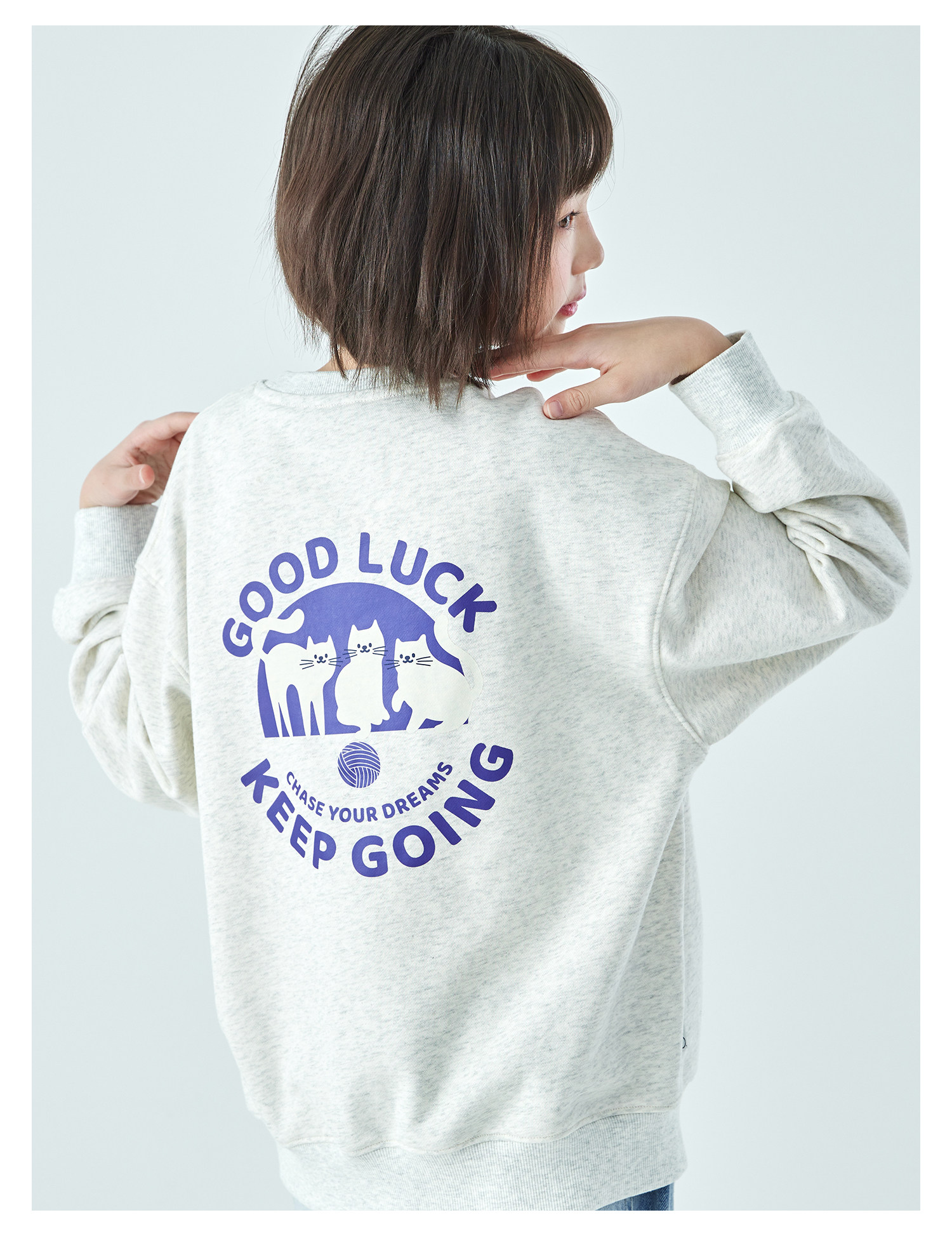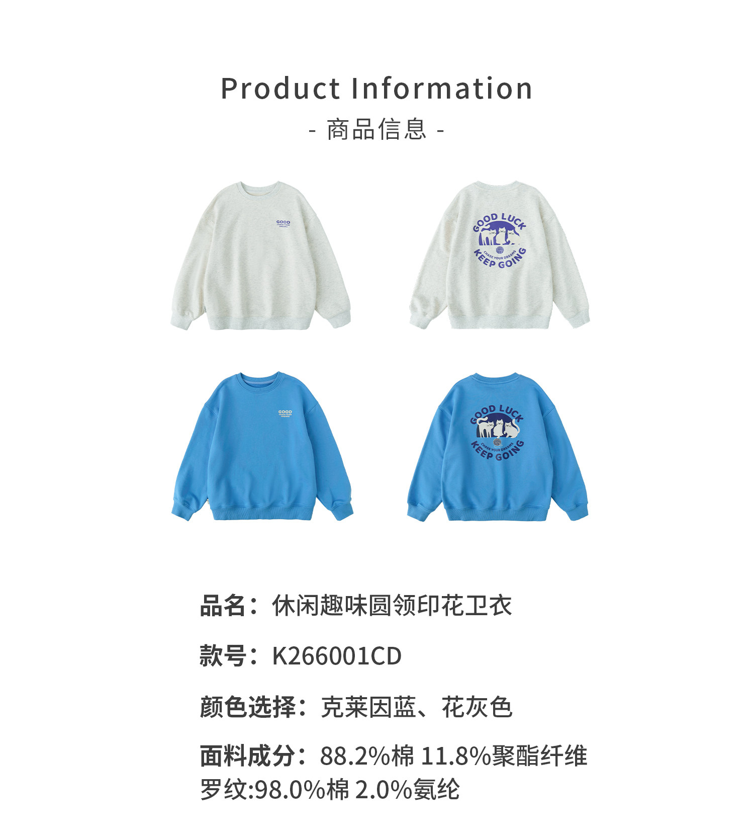克莱茵蓝预售3.31发 花灰色3.20发 棵初26年春季新款亲子中大女童小猫印花圆领卫衣趣味棉感休闲上衣
