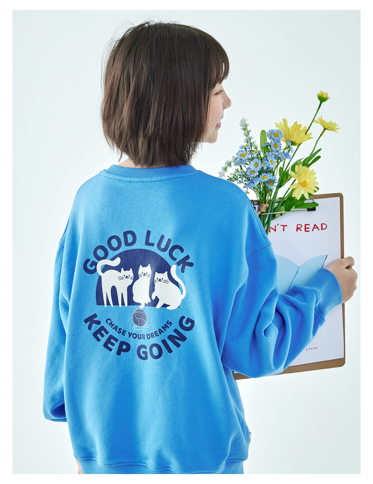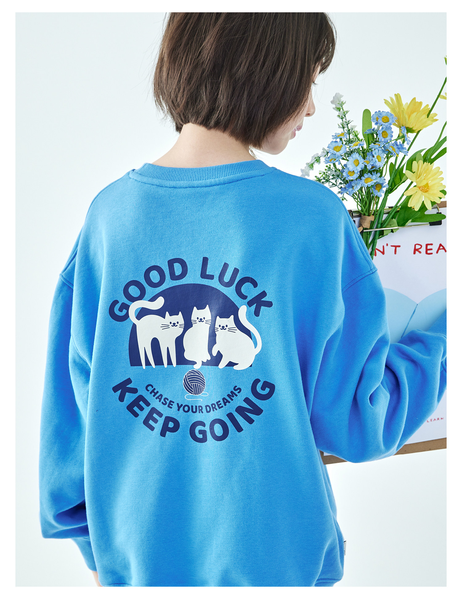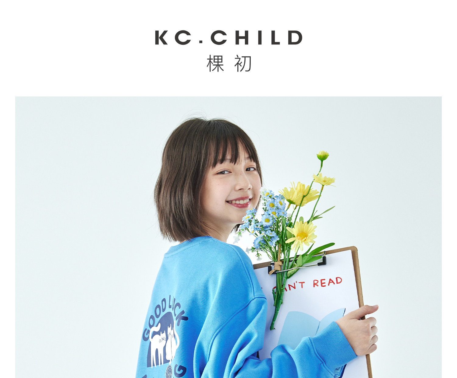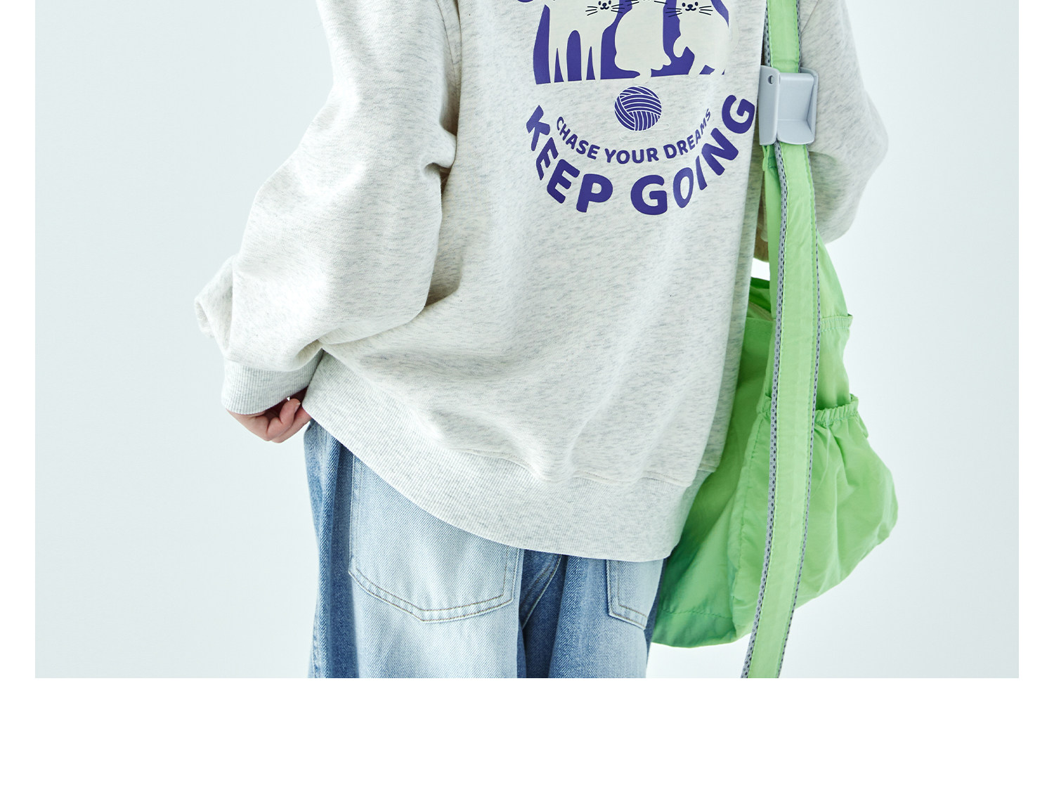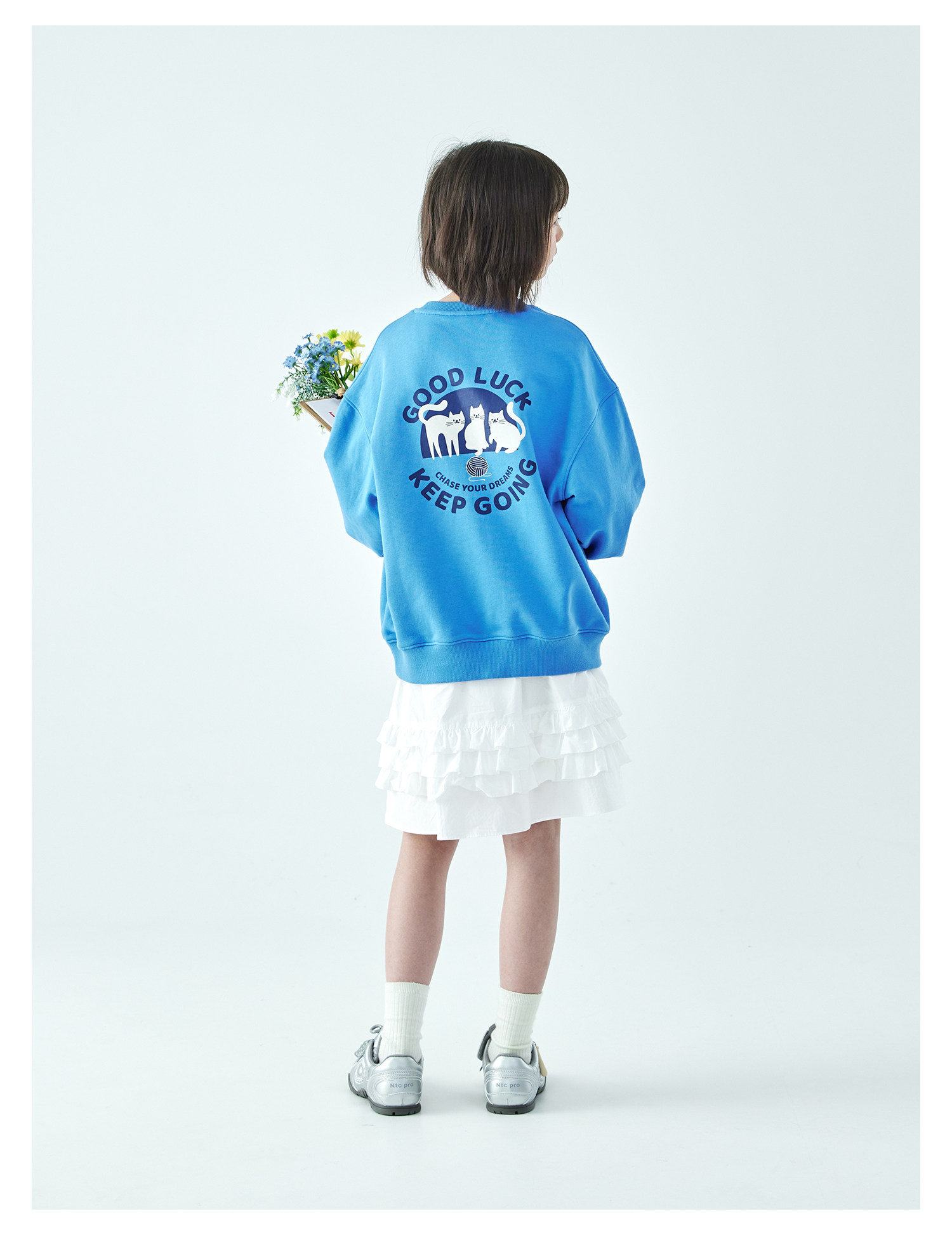 克莱茵蓝预售3.31发 花灰色3.20发 棵初26年春季新款亲子中大女童小猫印花圆领卫衣趣味棉感休闲上衣