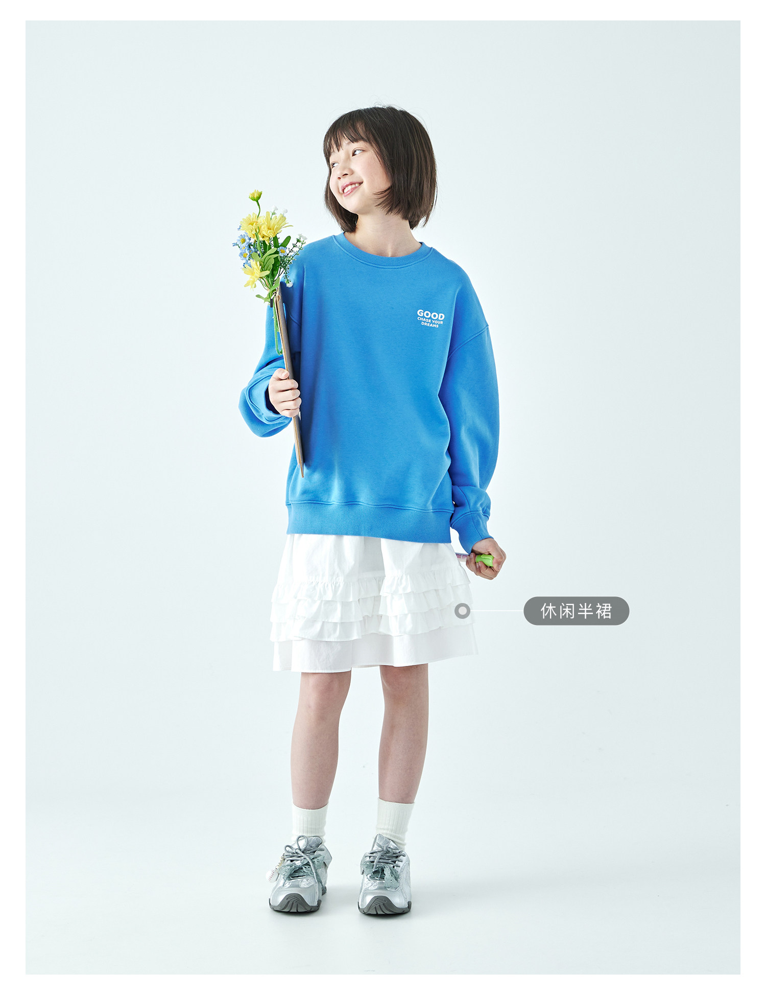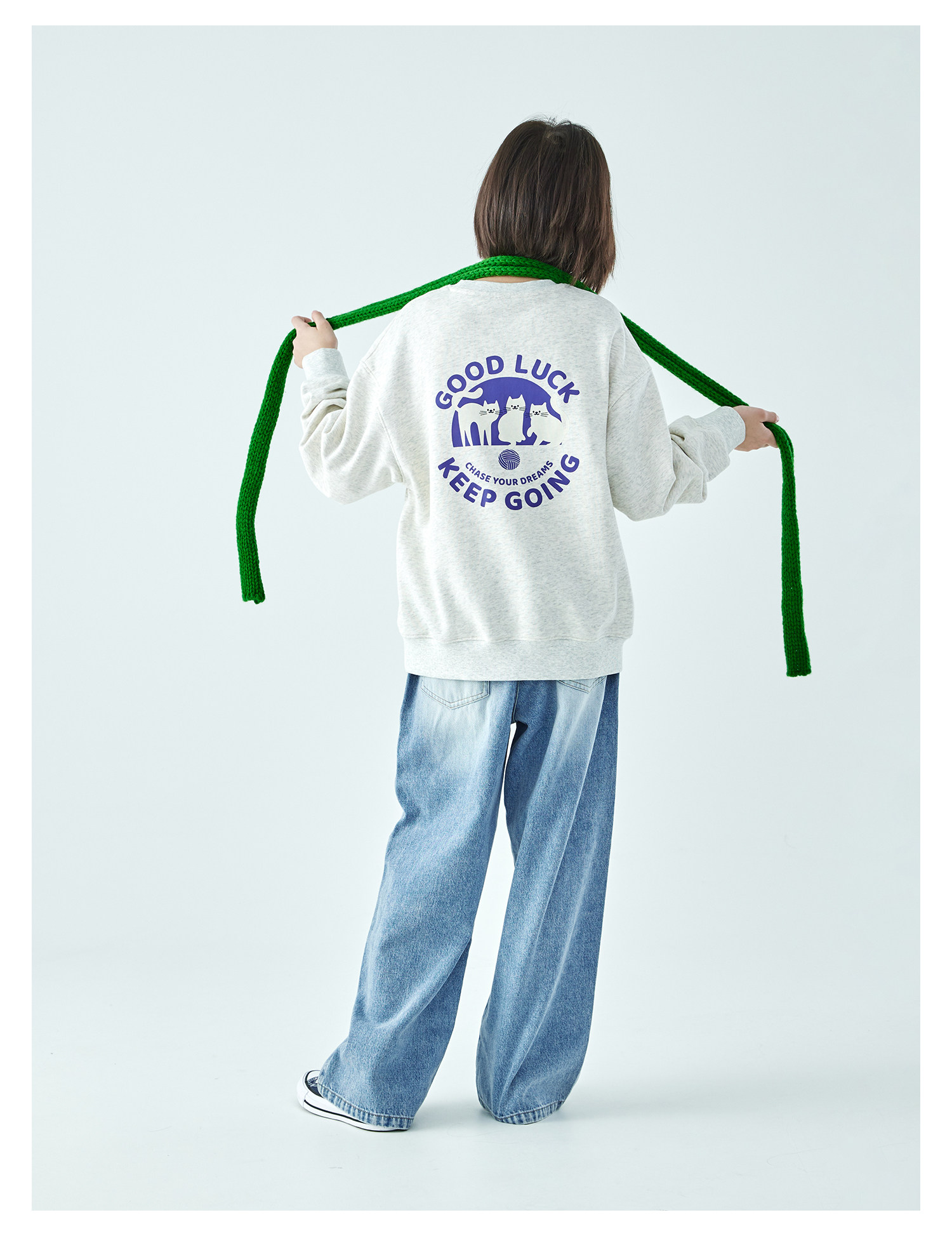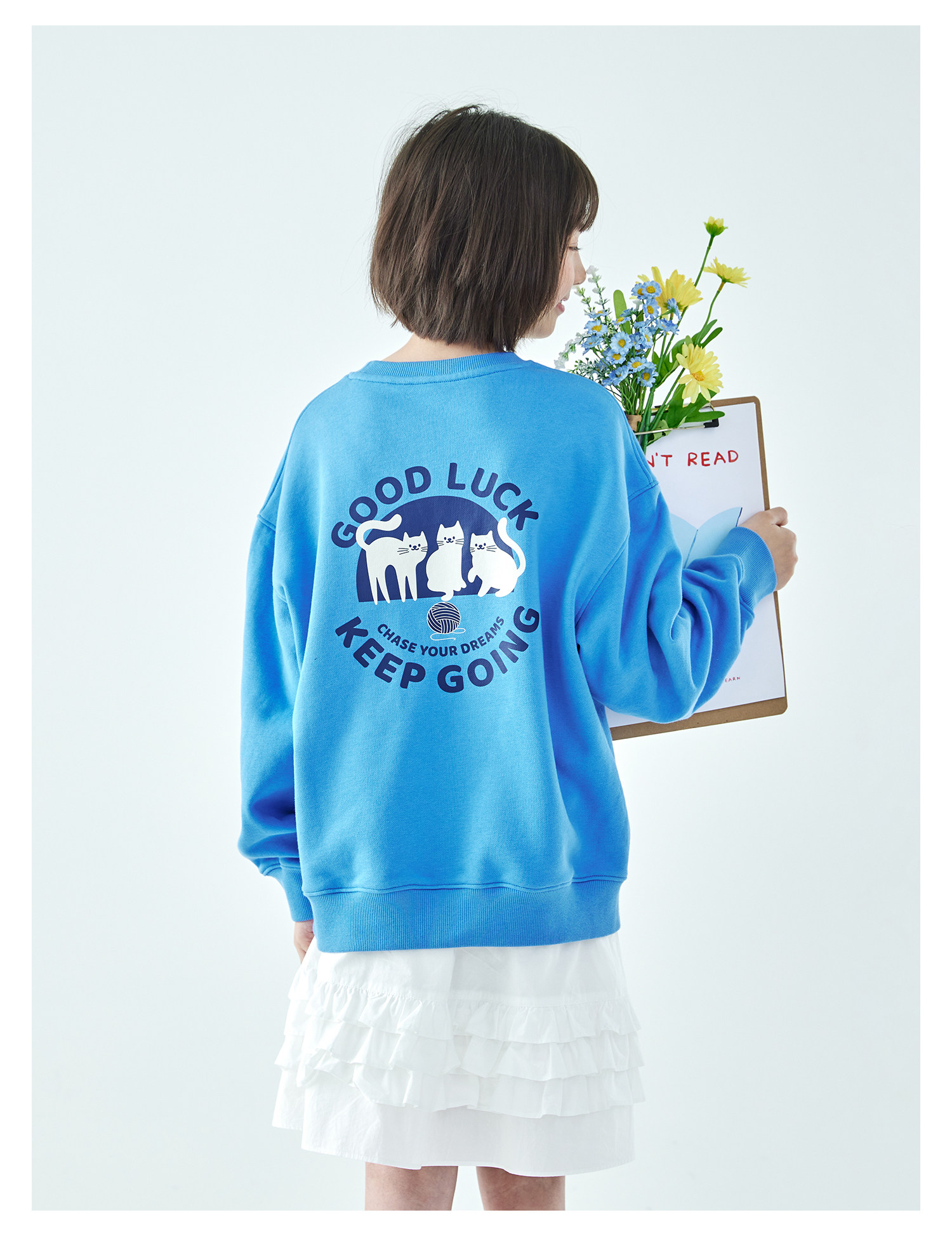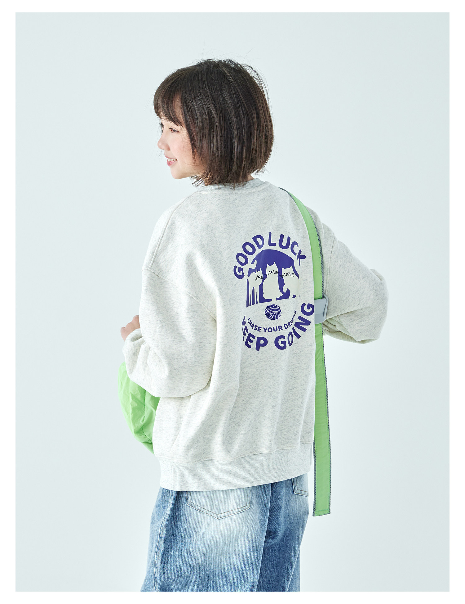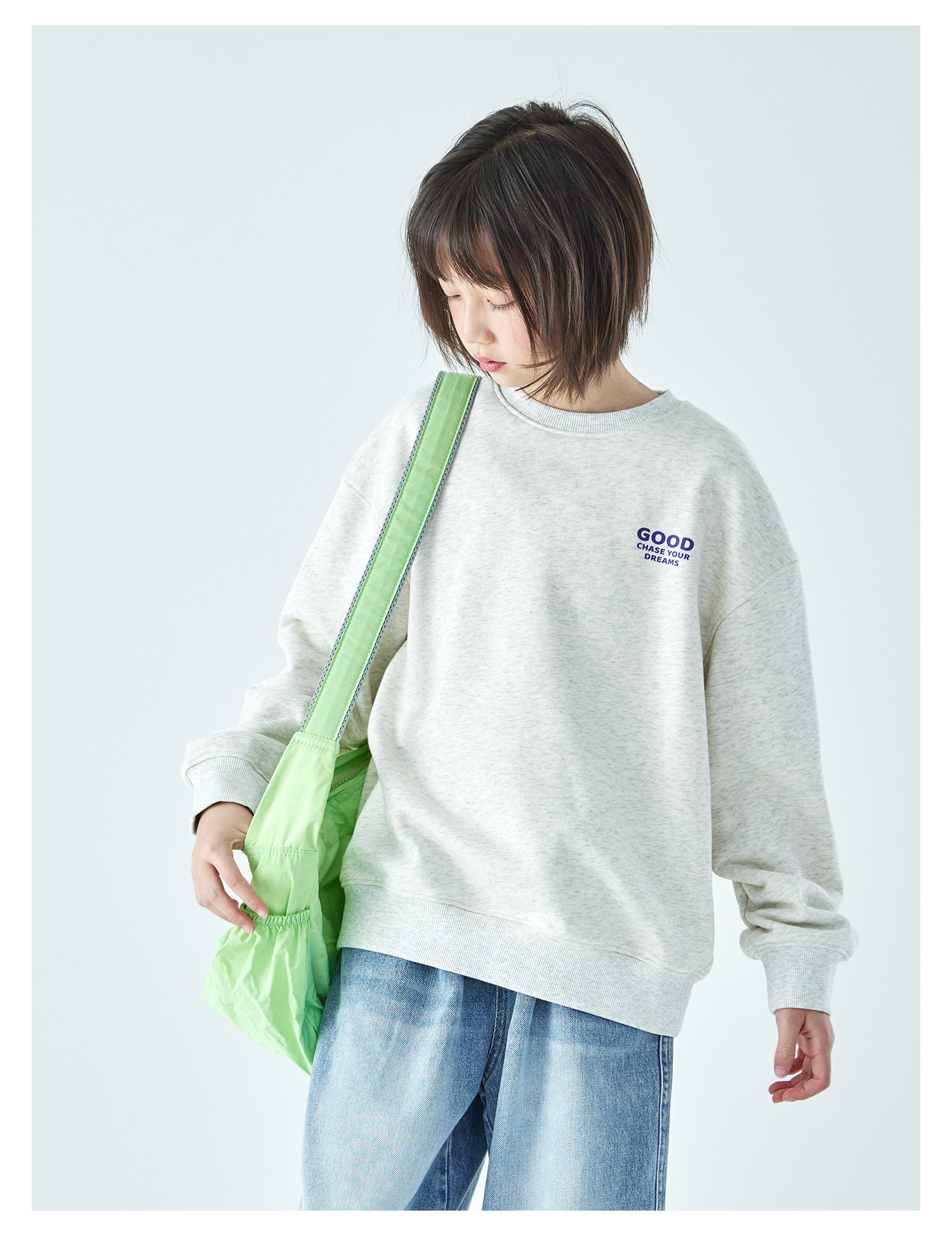 克莱茵蓝预售3.31发 花灰色3.20发 棵初26年春季新款亲子中大女童小猫印花圆领卫衣趣味棉感休闲上衣