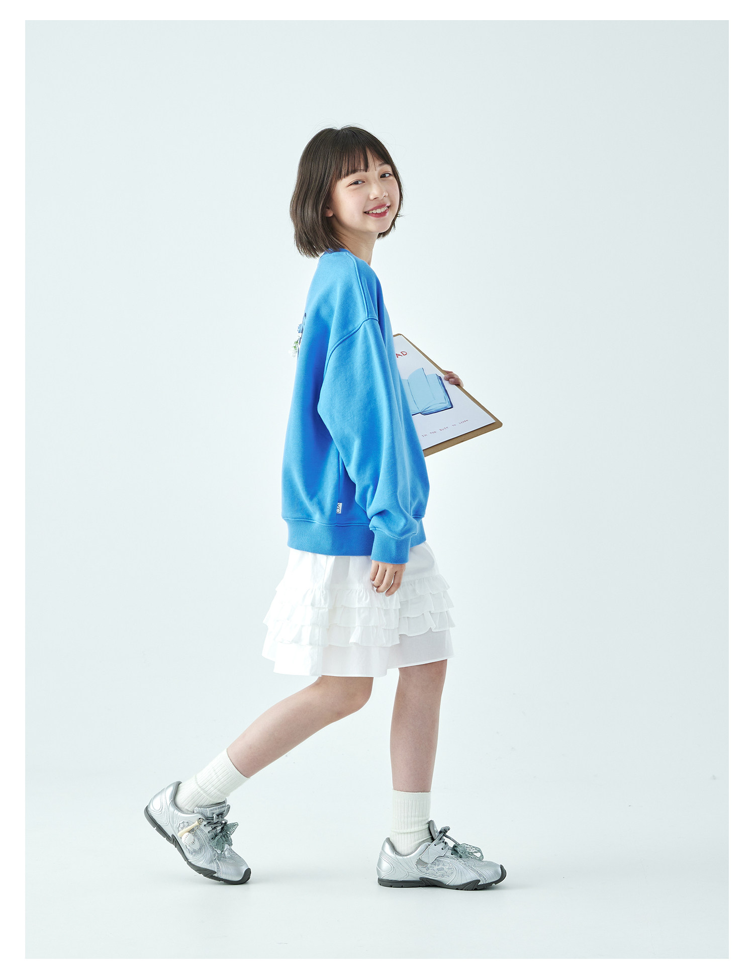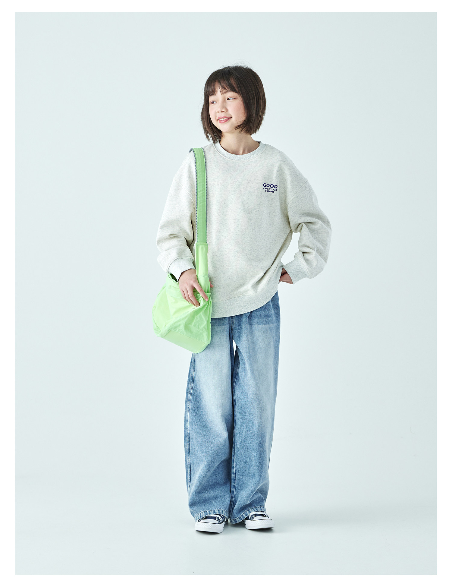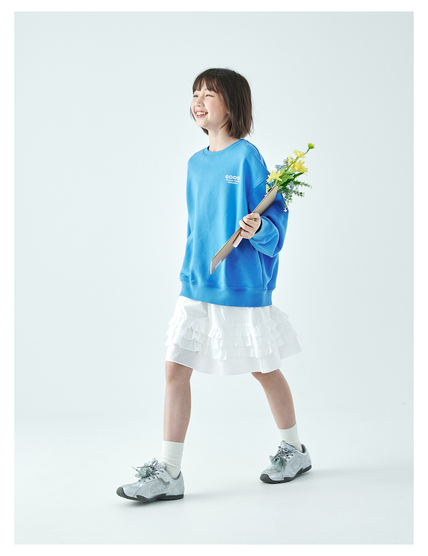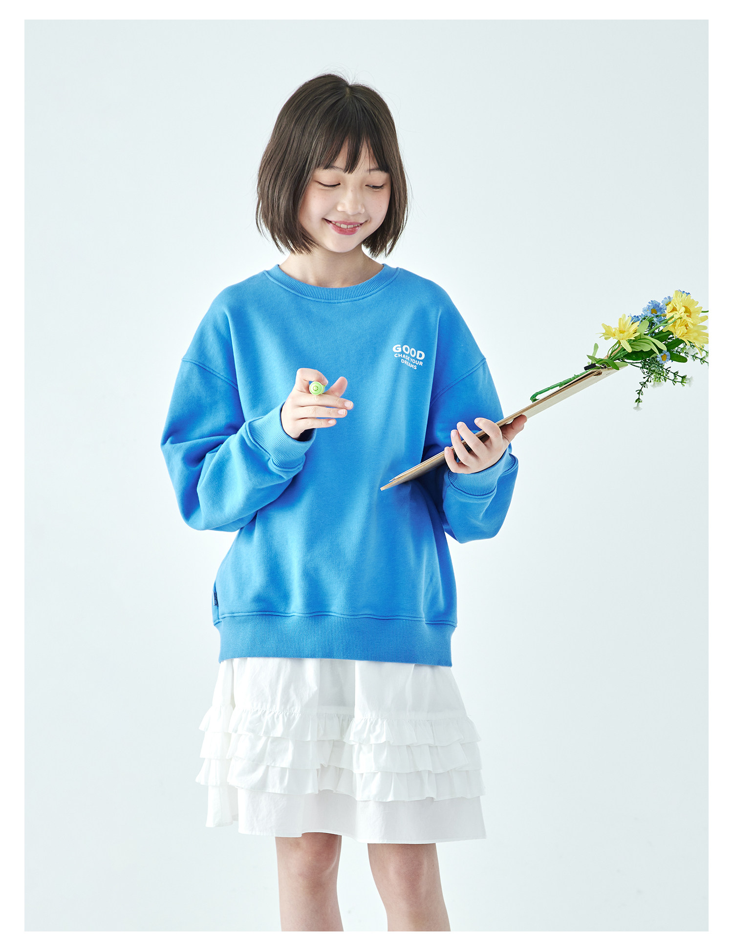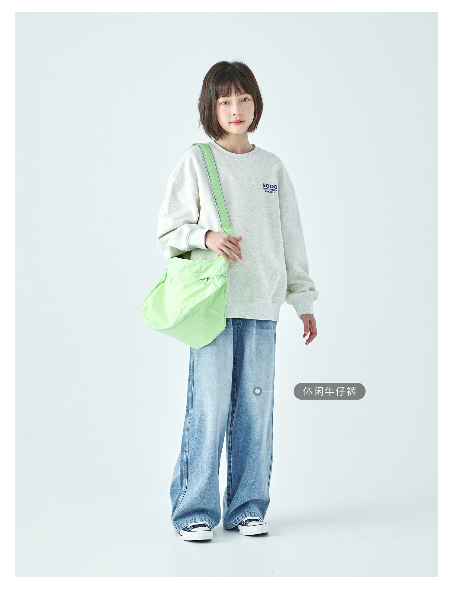 克莱茵蓝预售3.31发 花灰色3.20发 棵初26年春季新款亲子中大女童小猫印花圆领卫衣趣味棉感休闲上衣