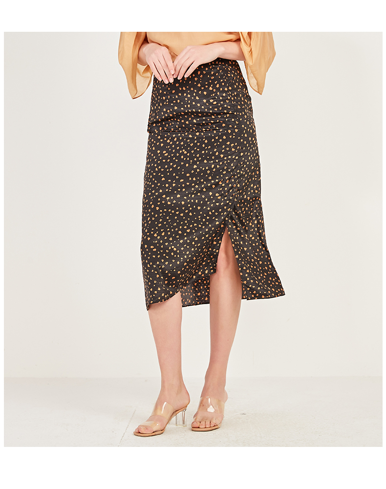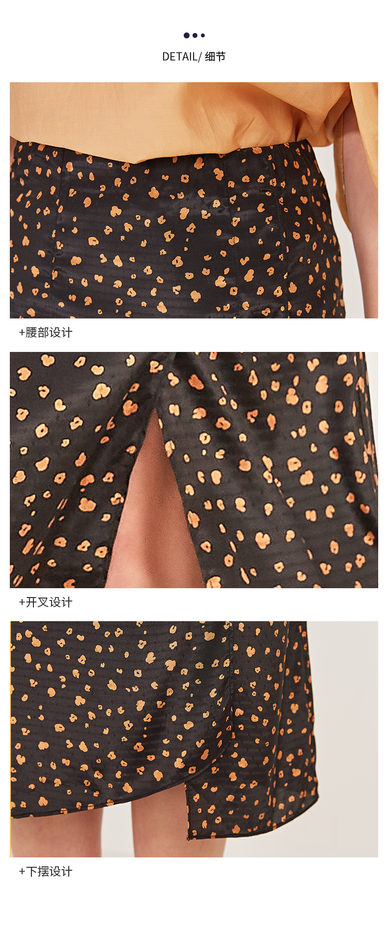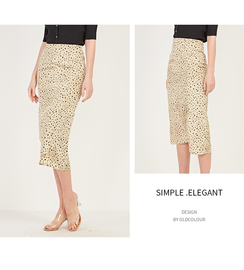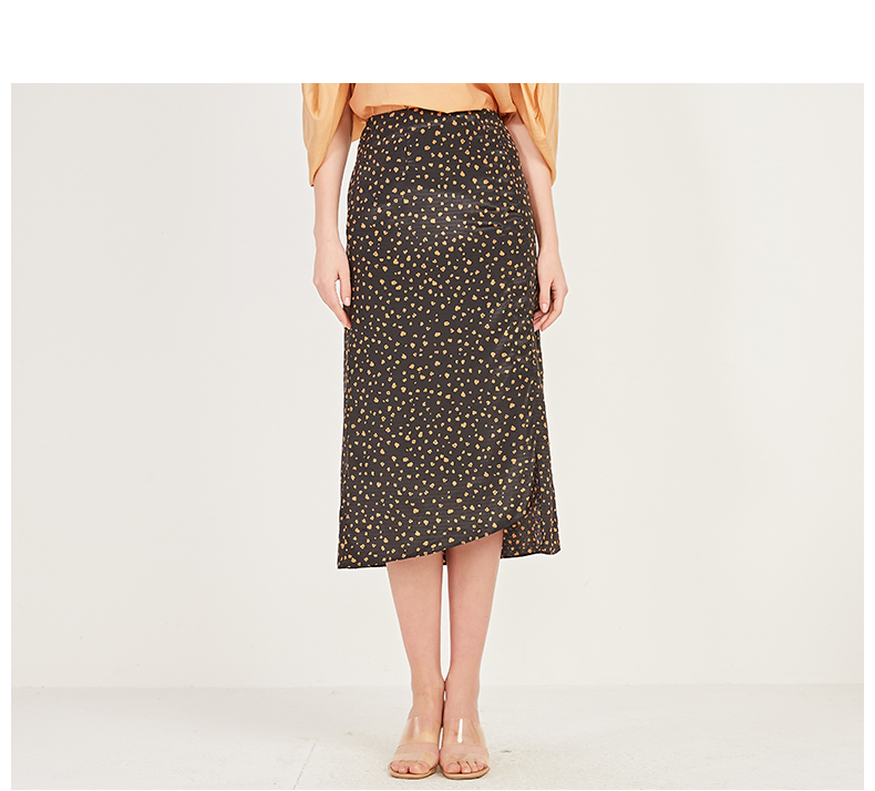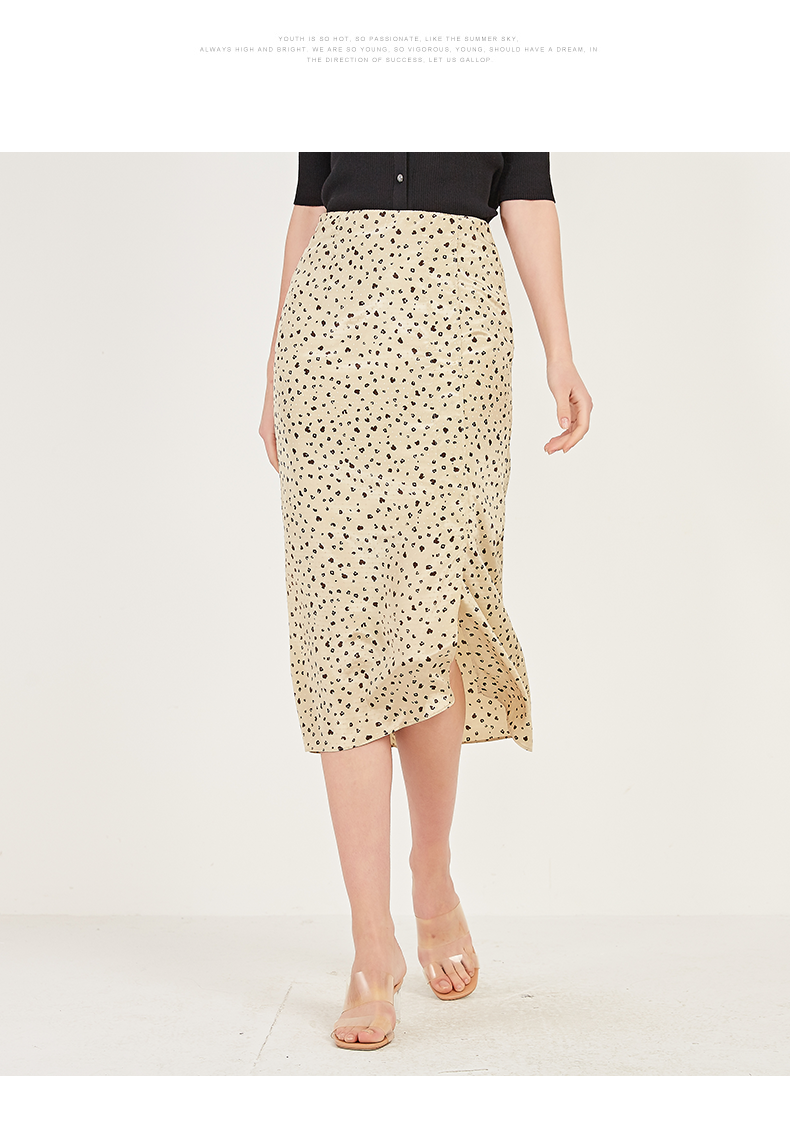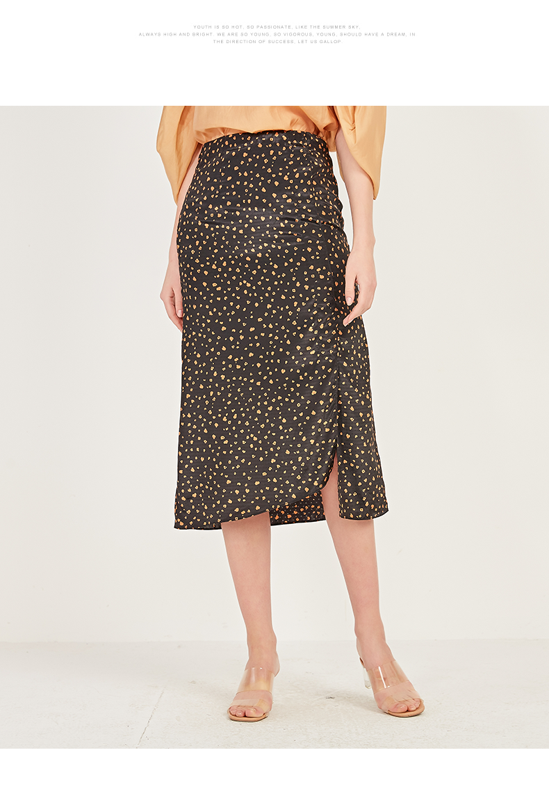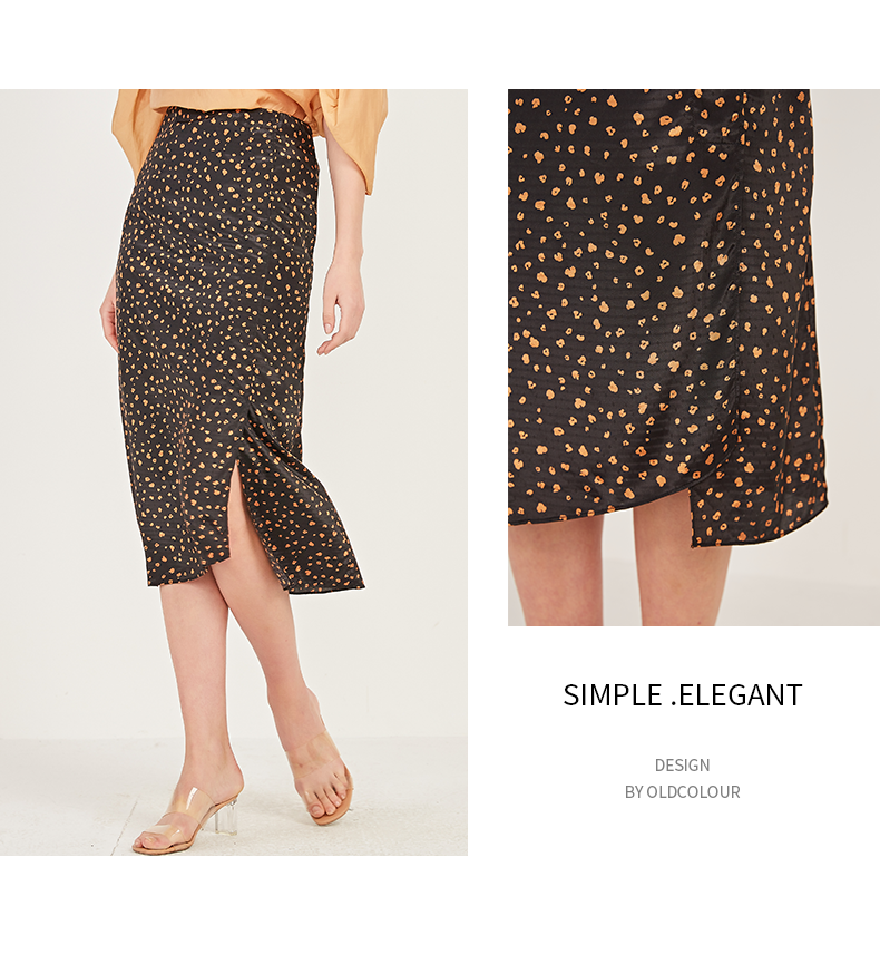 oldcolour春季时尚小碎花优雅小开叉中长款气质半身裙N13063347