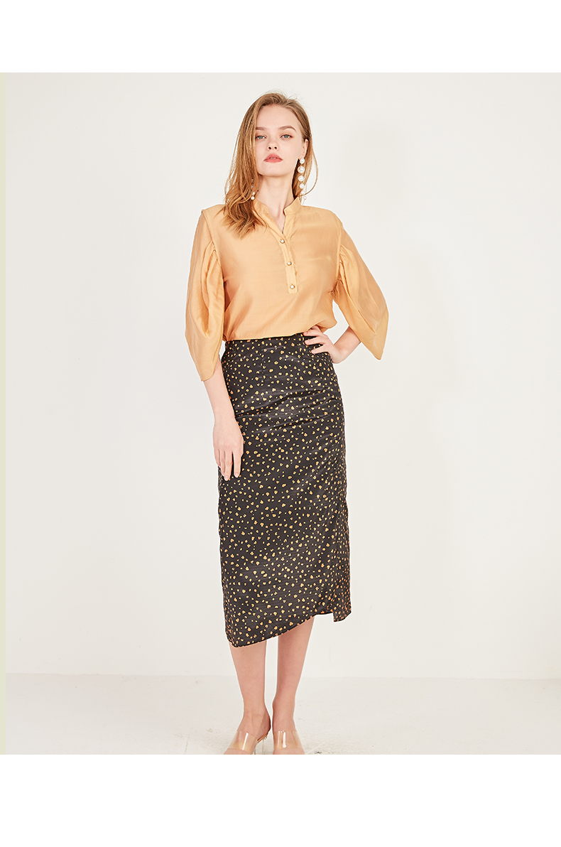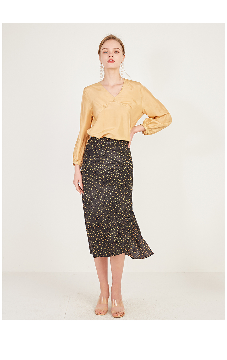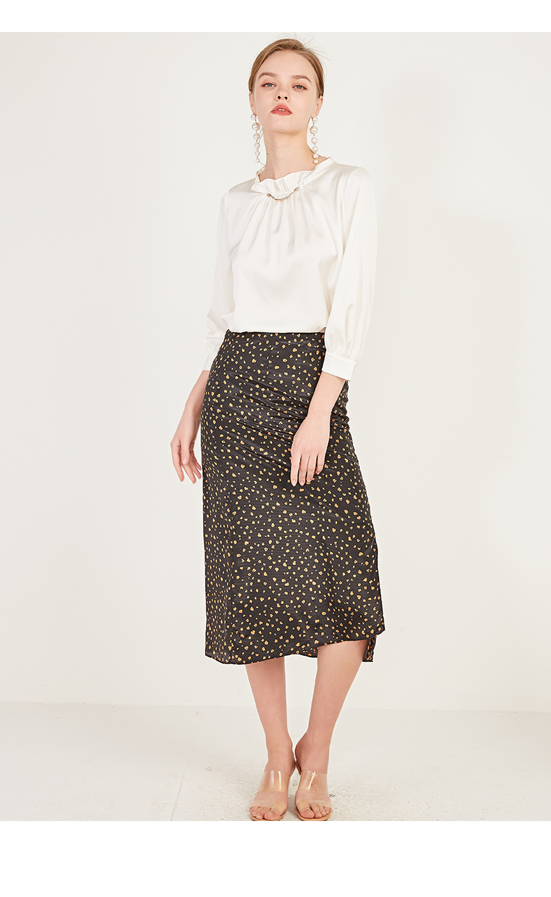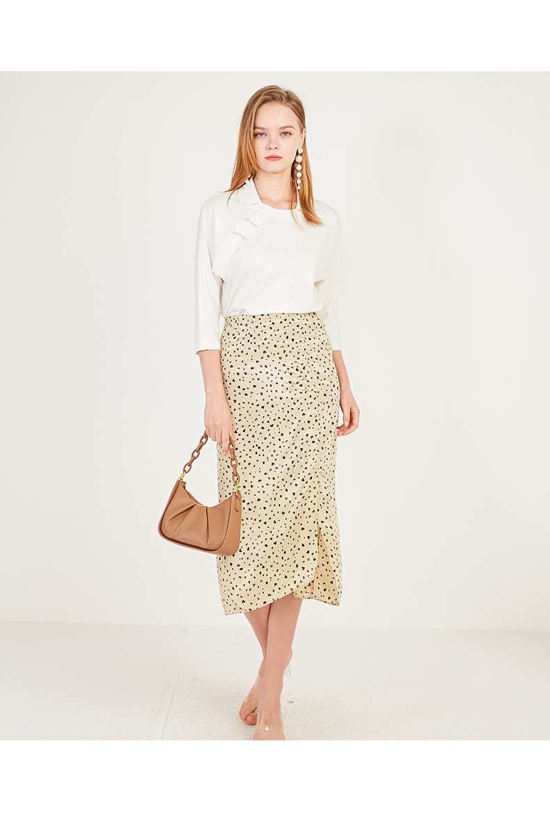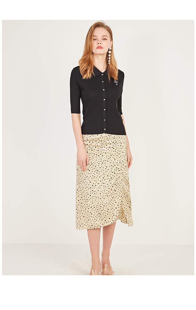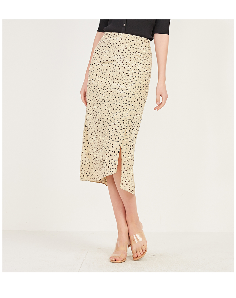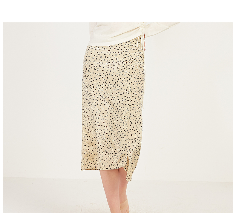 oldcolour春季时尚小碎花优雅小开叉中长款气质半身裙N13063347
