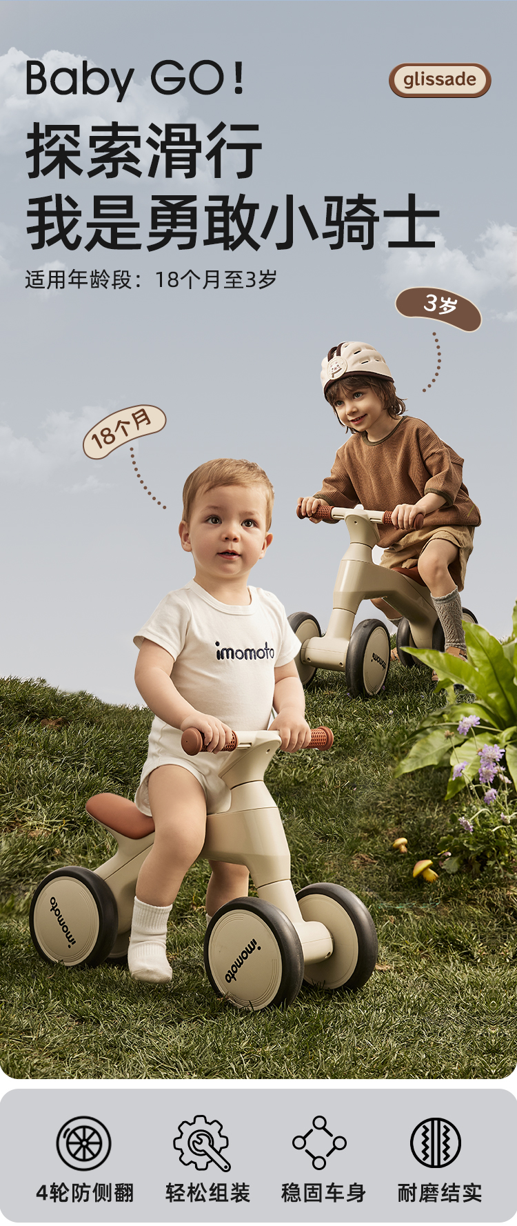 imomoto 婴儿宝宝平衡车1一3岁儿童学步滑行车幼儿防侧翻平行车滑步车3一6