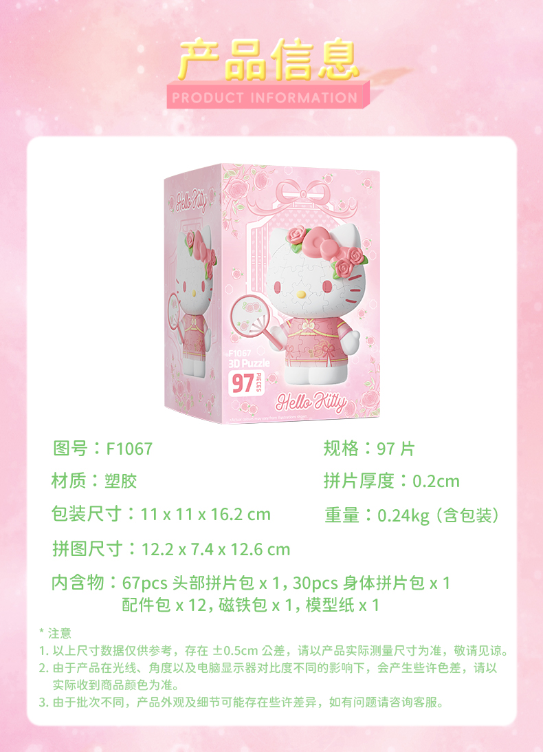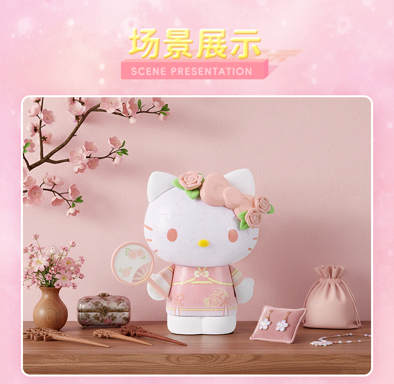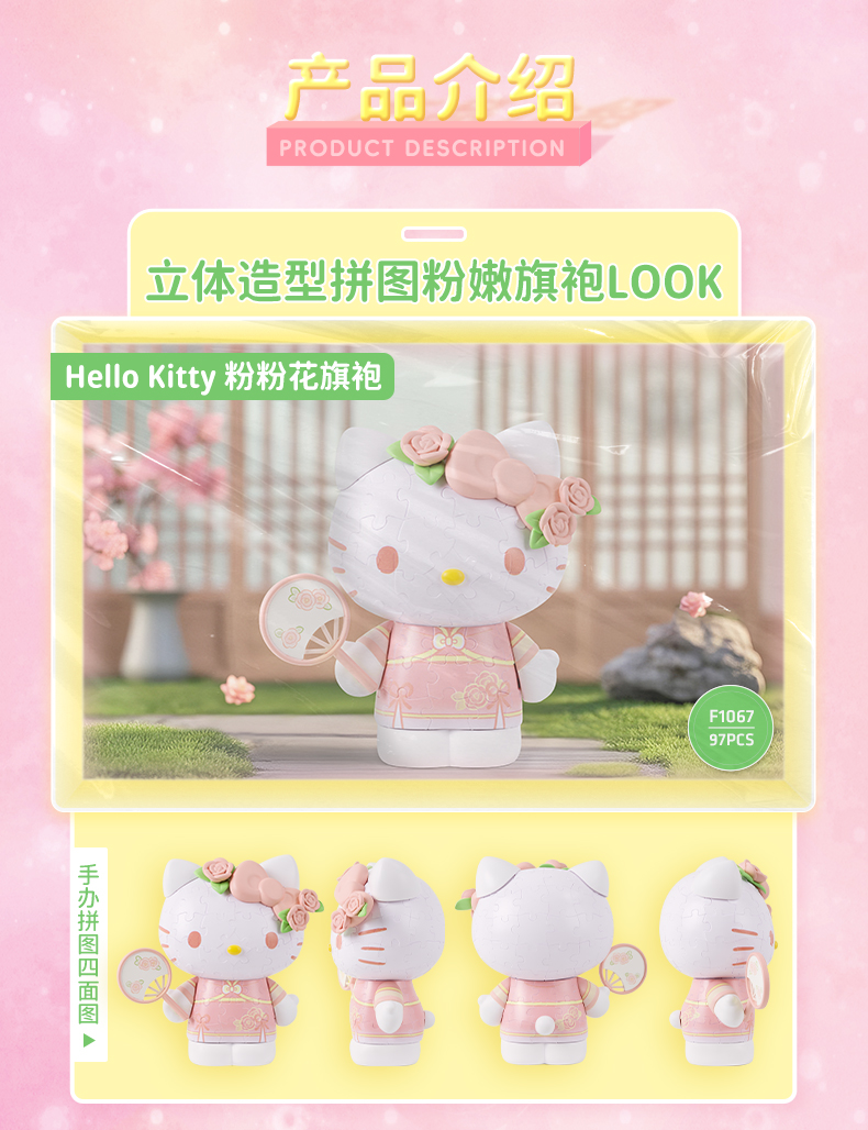 97片 立体造型拼图 F1067 粉粉花旗袍-三丽鸥家族系列Hello Kitty