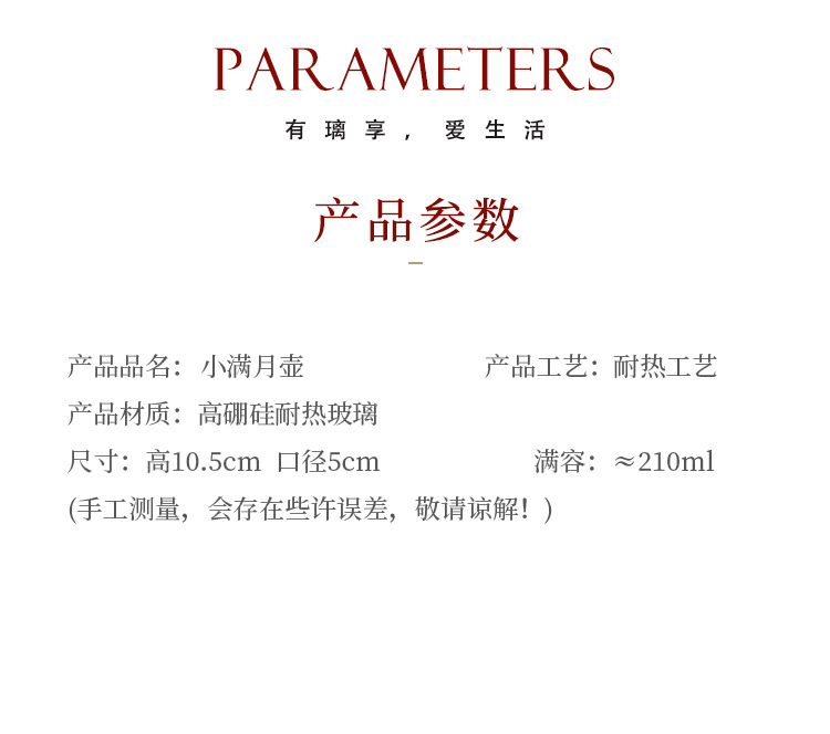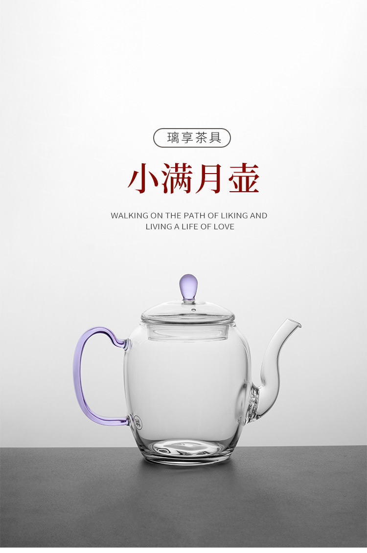 璃享小满月壶玻璃茶壶迷你泡茶壶功夫茶具小壶花茶壶透明带过滤小号
