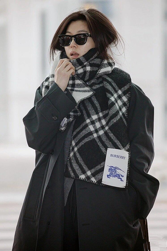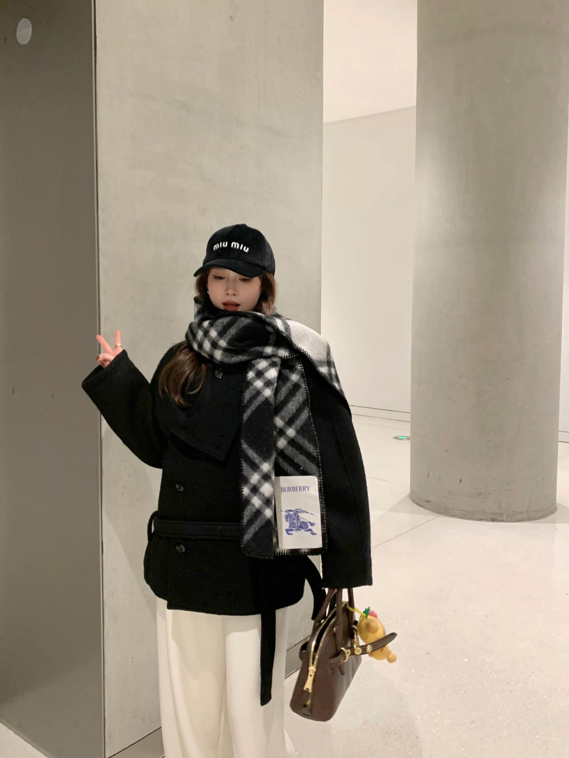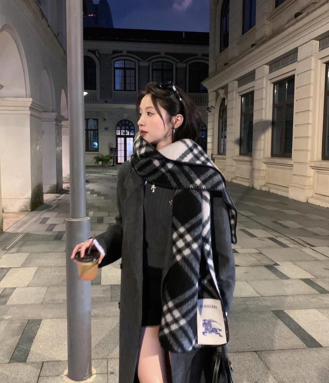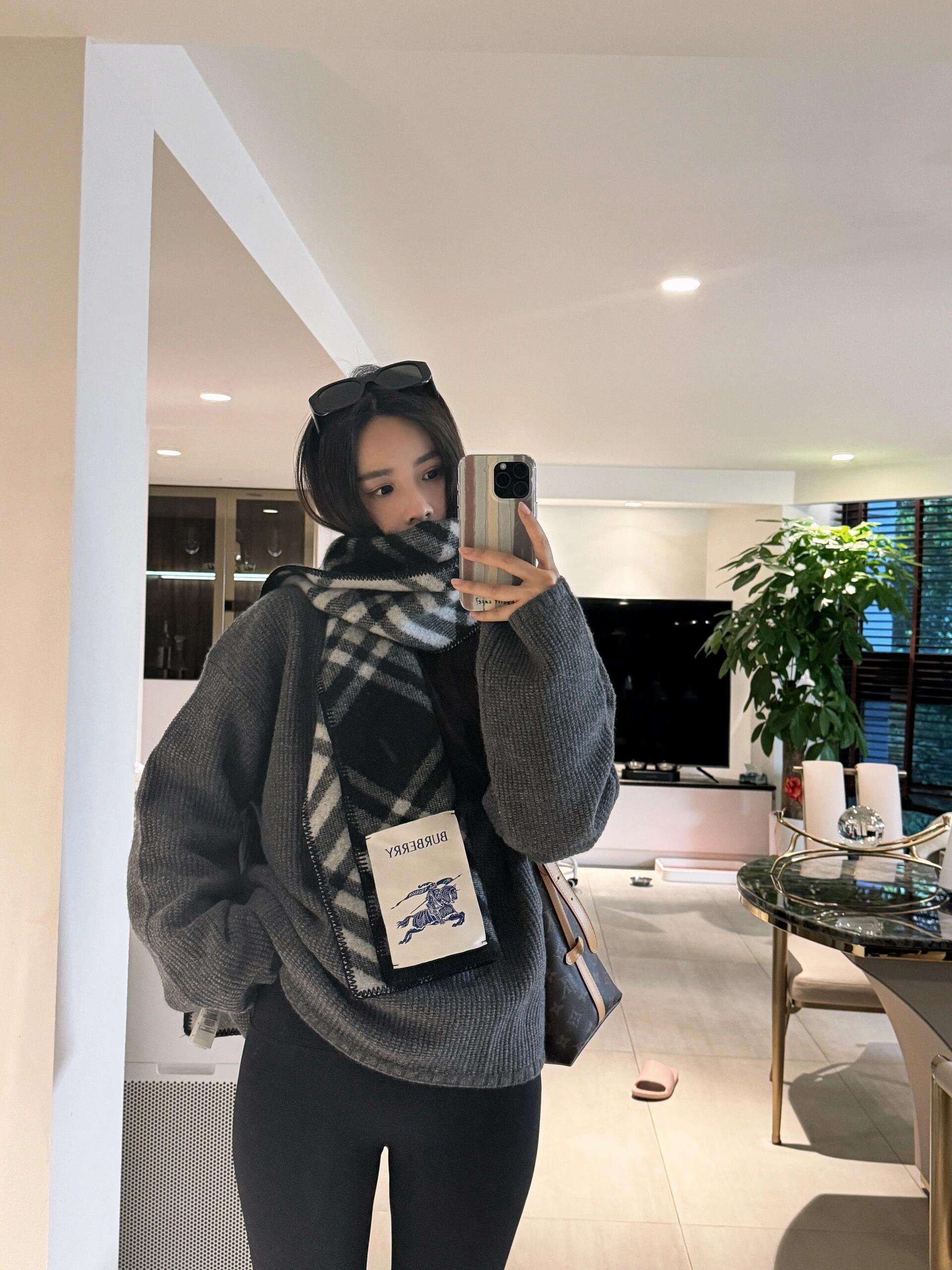【代购级 出入专柜无压力】全智贤同款 Burberry羊绒羊毛混纺围巾 黑白配色经典不过时 很有标志性的bbr格纹设计 又美又飒 秋冬氛围感拉满 get大美女同款!