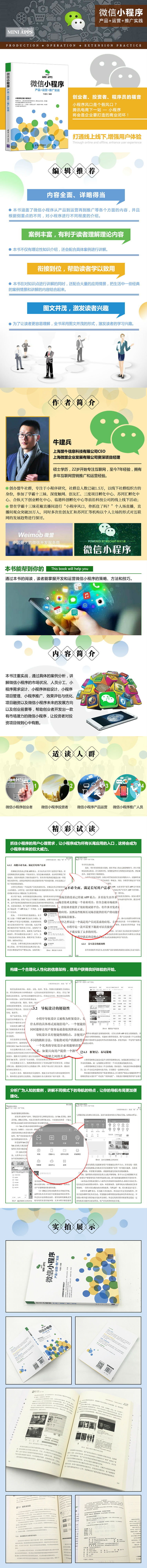 除此之外,本书还介绍了如何进行小程序的评估、对小程序的项目进行融资,以及对小程序的未来作评估,从而使互联网从业者对小程序有一个更加深入的了解。