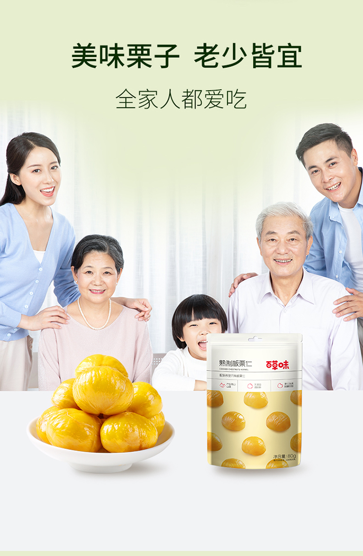百草味-熟板栗仁80g *3袋 精心炒制去壳,甘甜不腻,软糯入心底