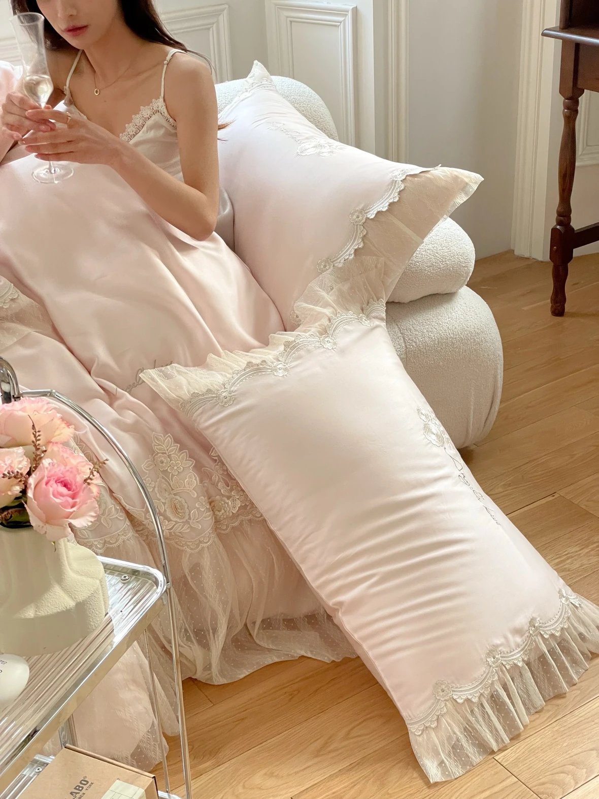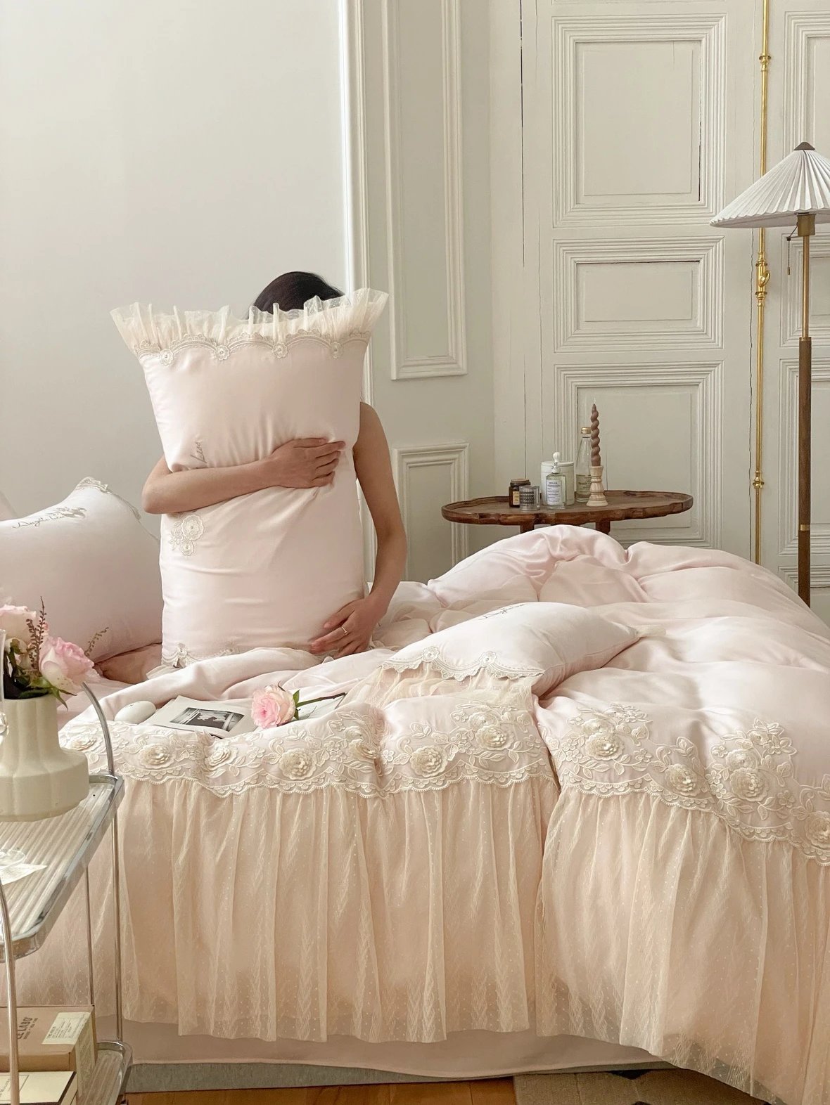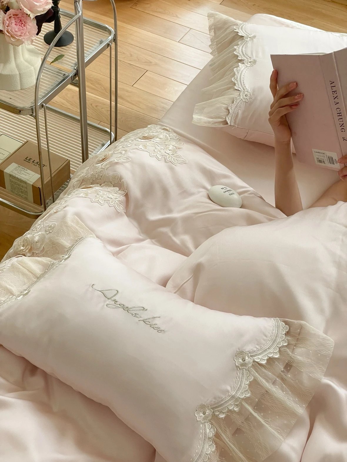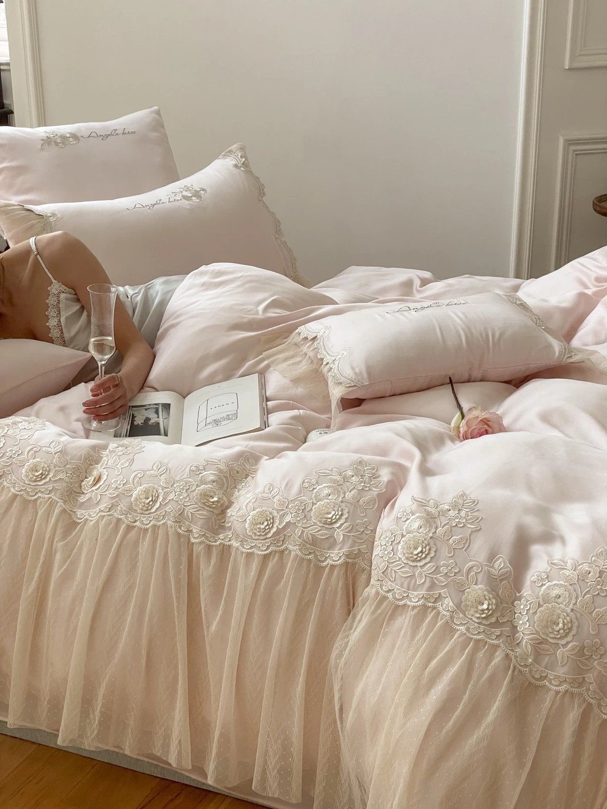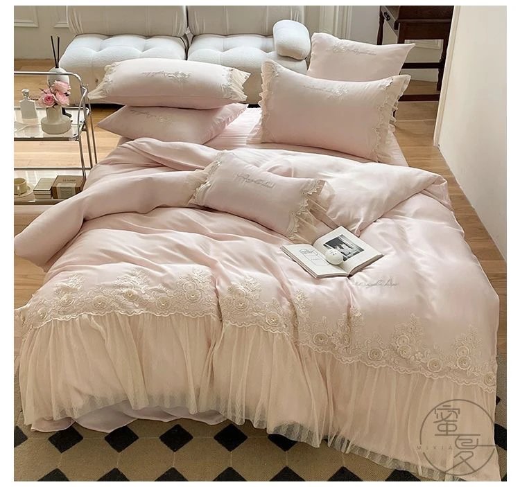 高品特价!80支兰精天丝四件套浪漫法式蕾丝花边被套凉感夏季床上用品