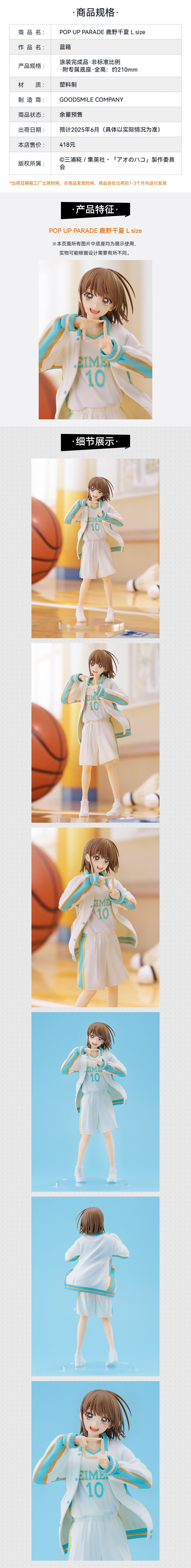 【GSC积分兑换】POP UP PARADE 鹿野千夏 L size 蓝箱