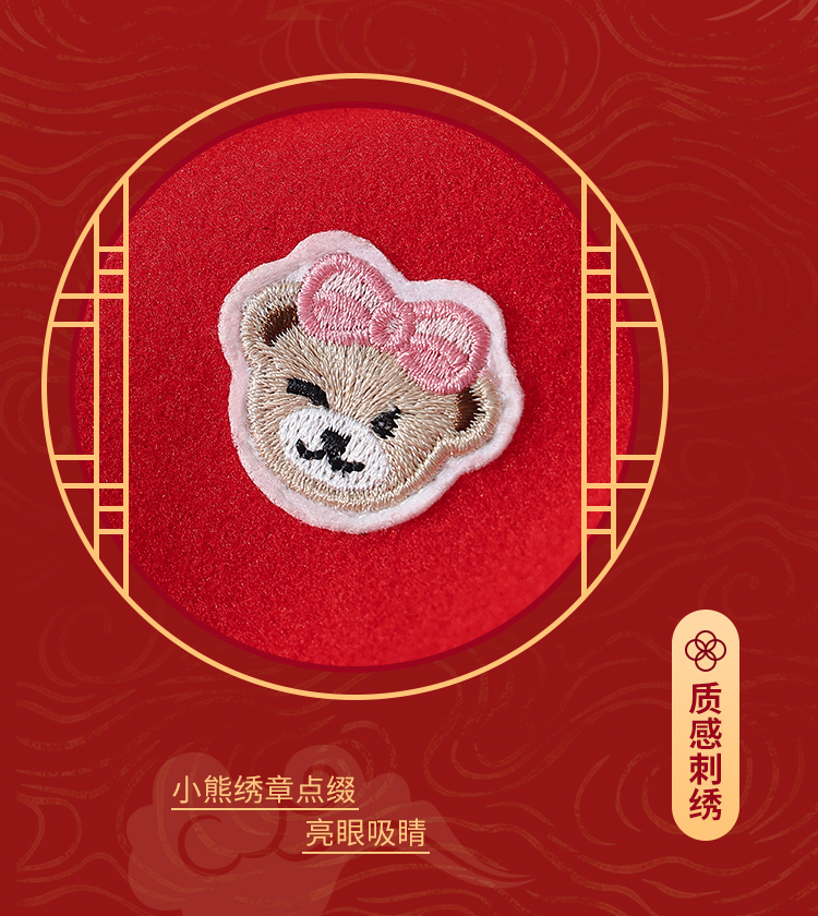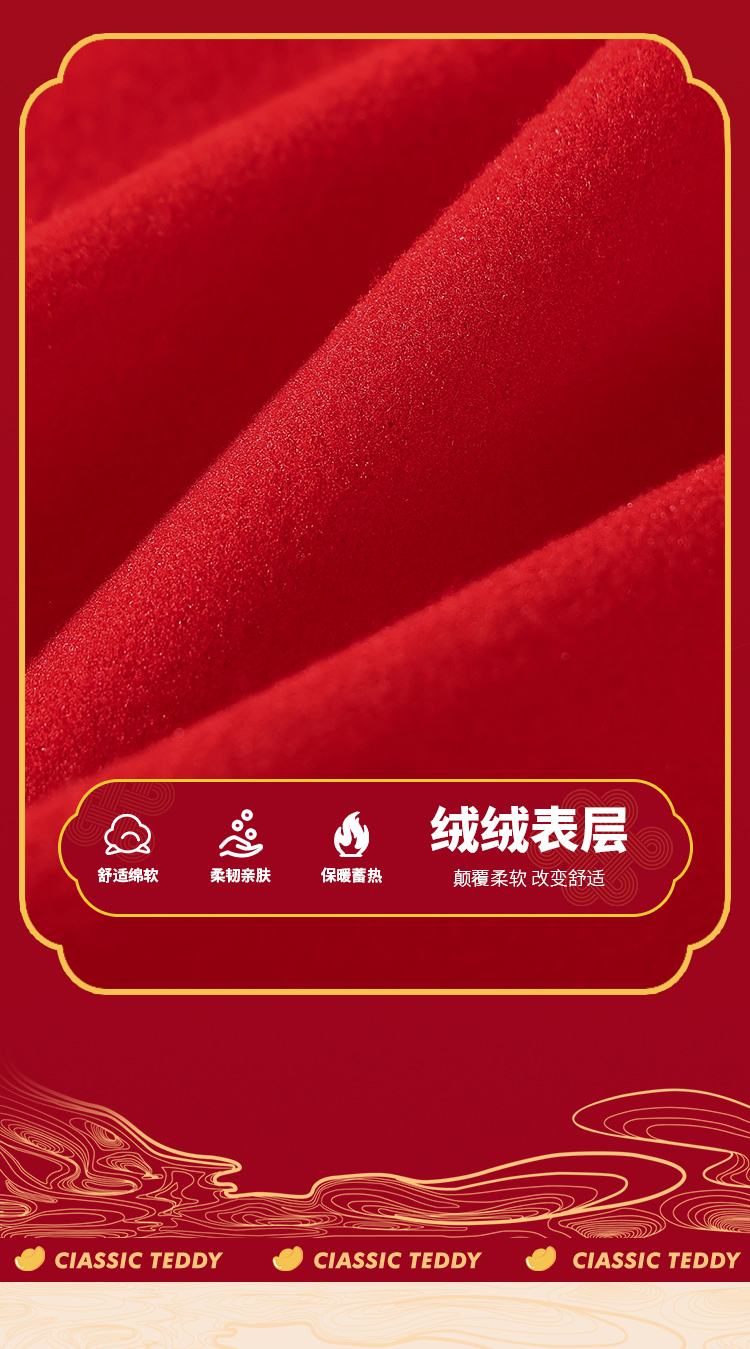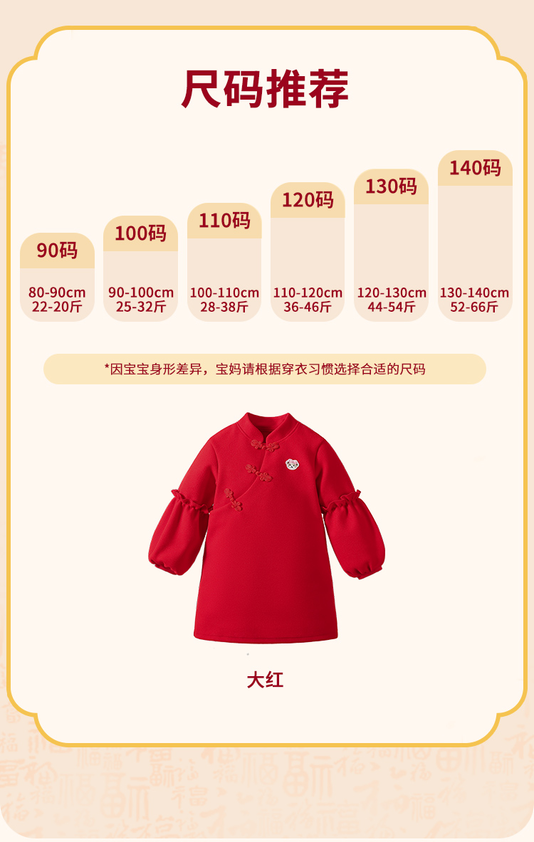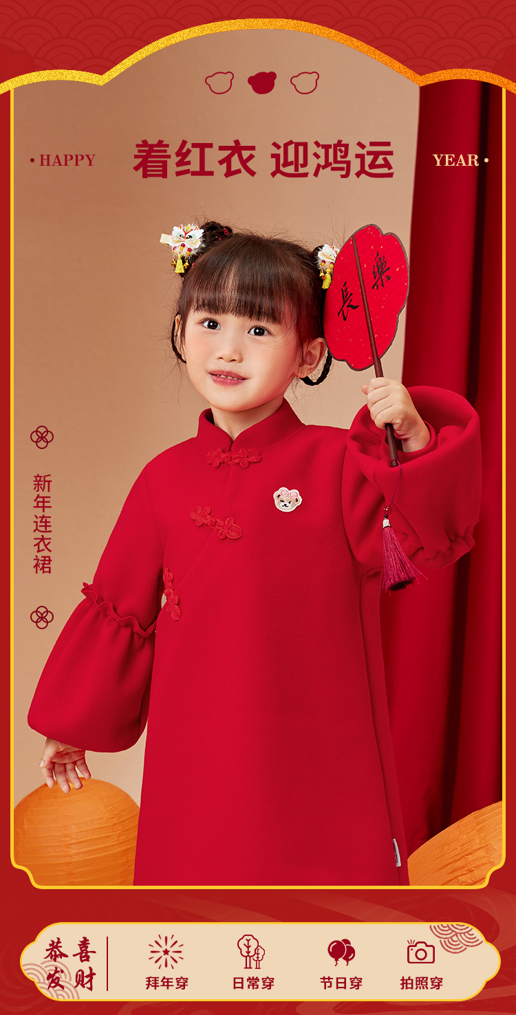 【精典泰迪】【100,130】女童加绒连衣裙儿童大红色拜年服