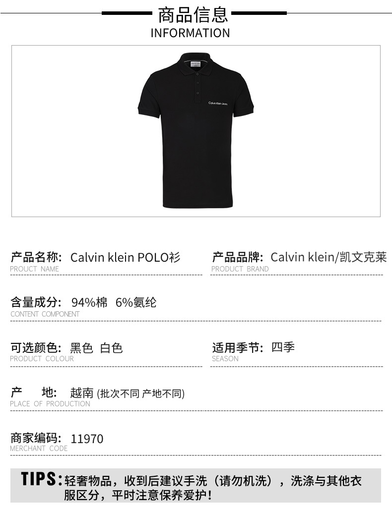 【超惠秒】CK 卡文·克莱 男士弹棉短袖Polo T恤 11970