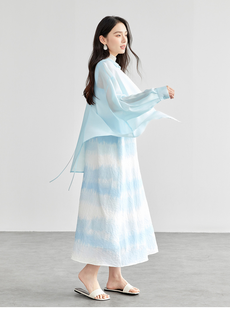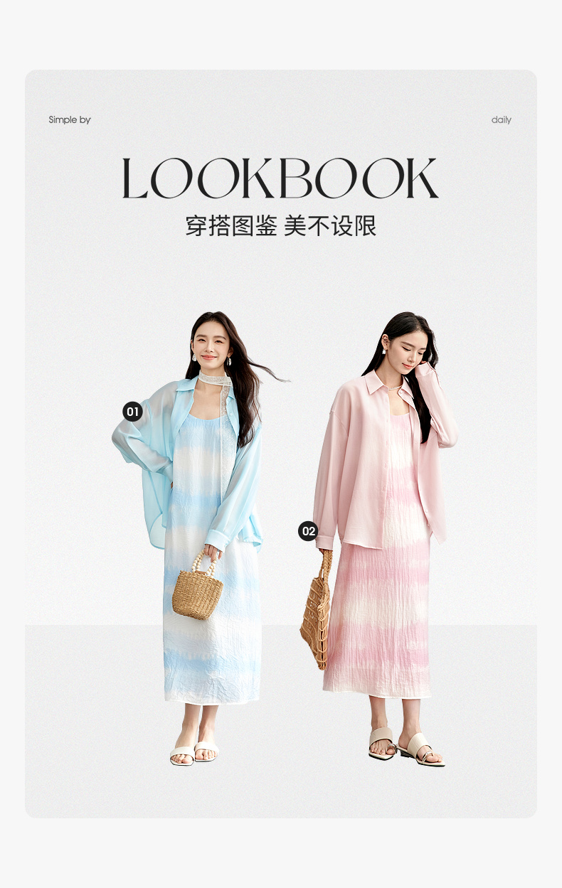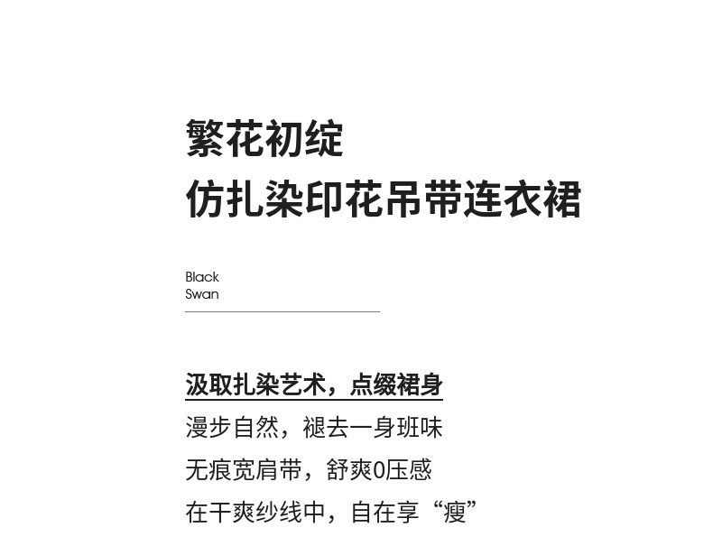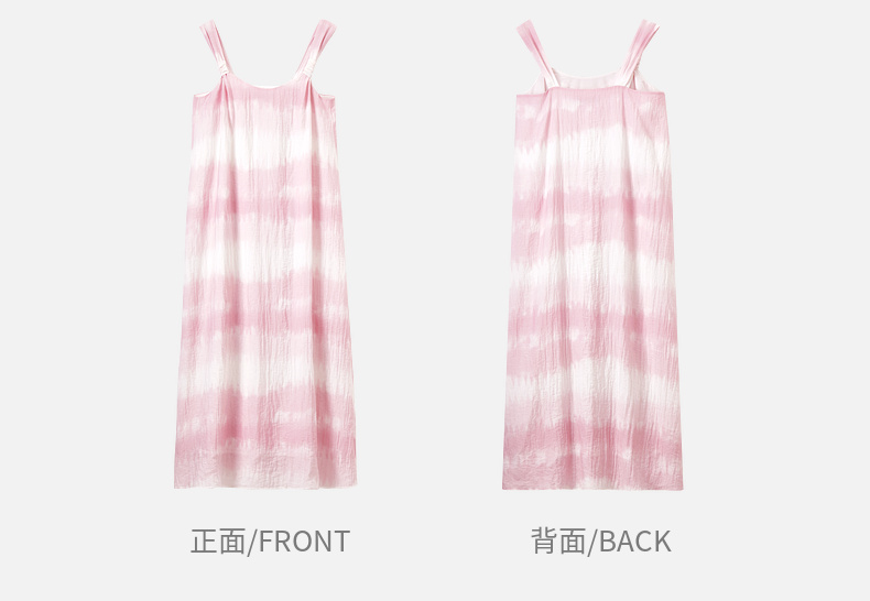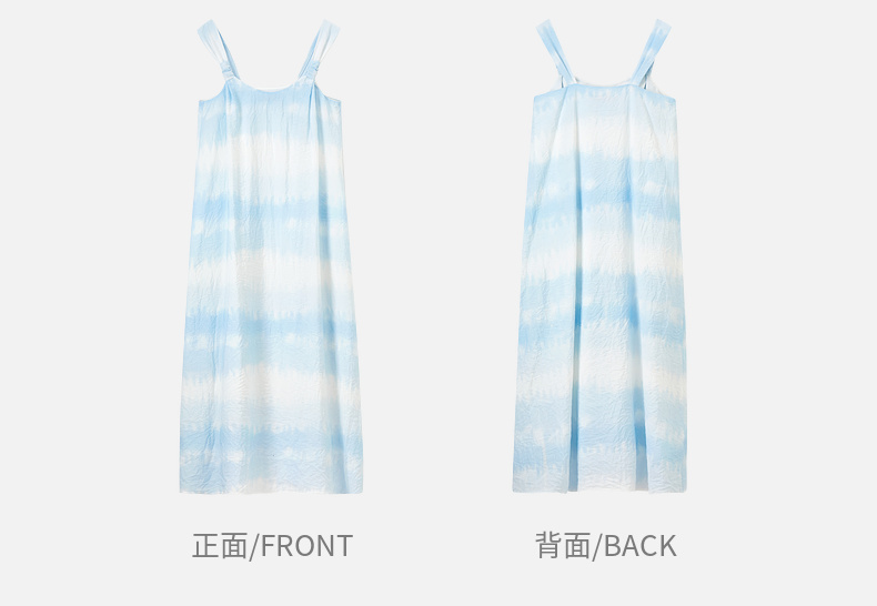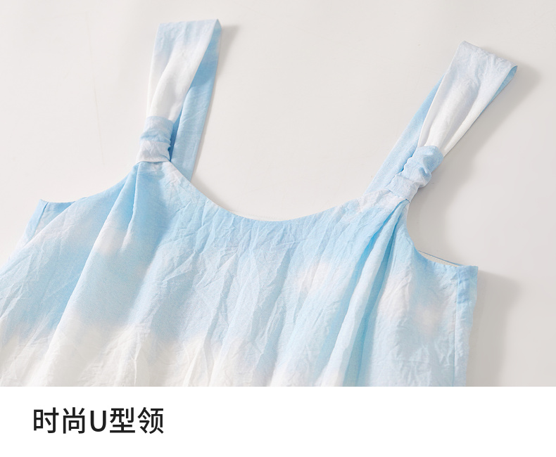 【内购】优雅度假风仿扎染印花吊带裙串珠宽肩带U型领连衣裙-57656