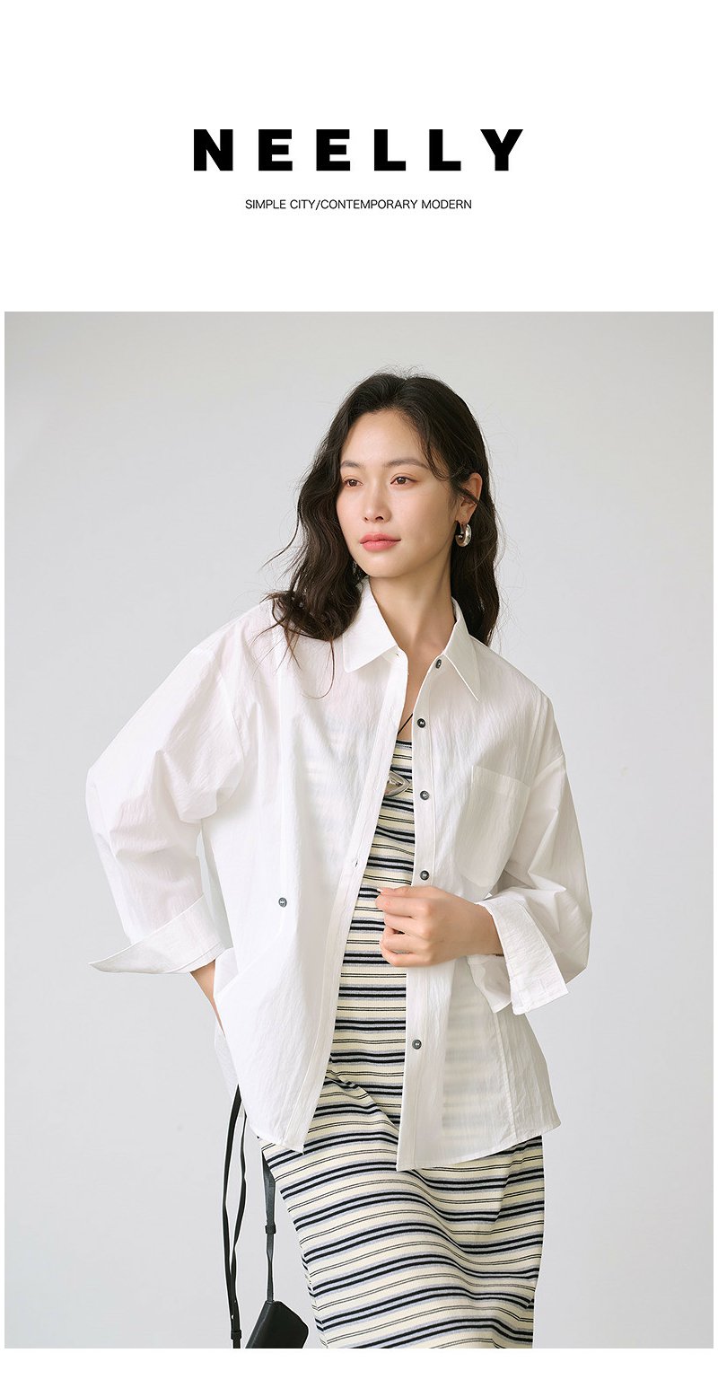 NEELLY纳俪商场同款夏新款简约休闲时尚套装女百搭翻领衬衫两件套N26044Y04597