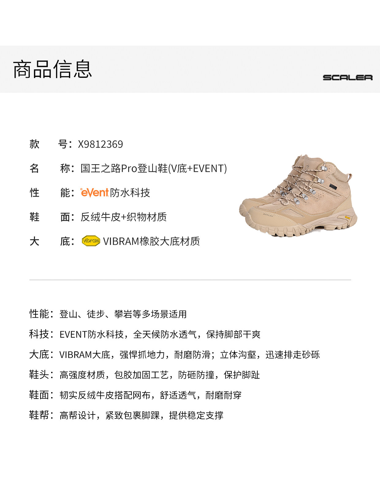 +【乐粉专属】【国王之路PRO】思凯乐户外徒步登山鞋男女防水高帮V底防滑耐磨X9812369