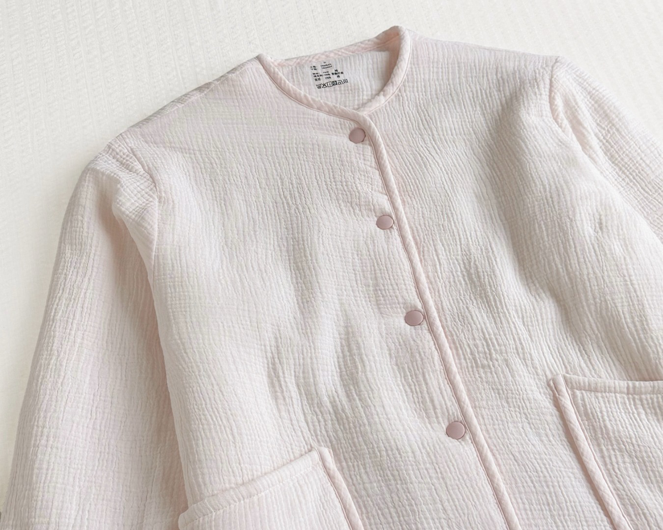 & 精致做工:上衣同色系纽扣,完美领口弧度,贯穿到衣身下摆,同色的哑光按扣质感拉满,双侧大大的口袋,口袋内里都有绗棉,时尚又保暖~