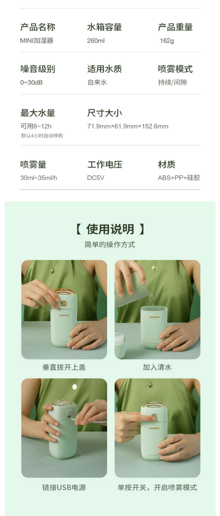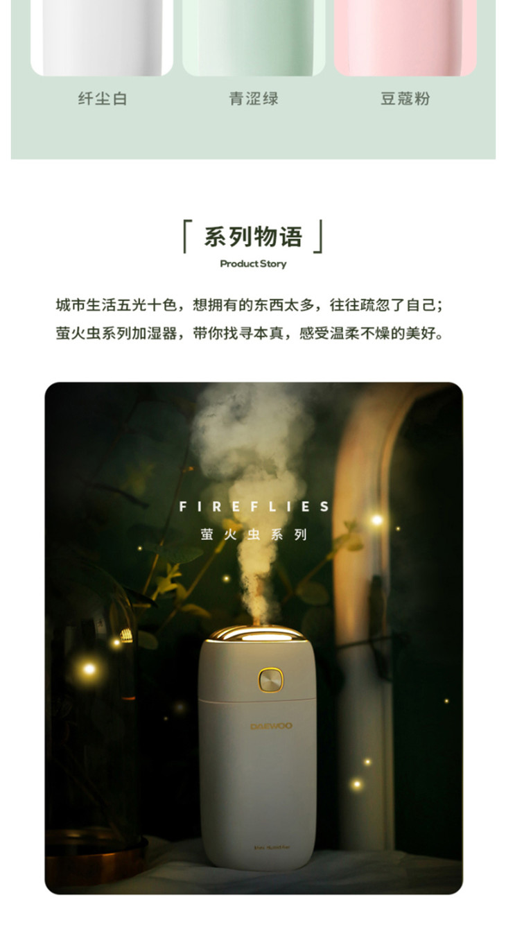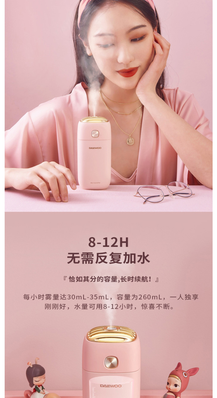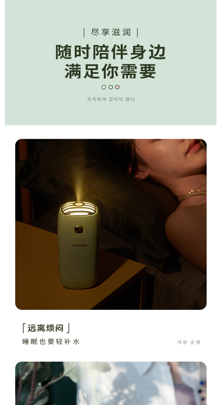 【大宇】DAEWOO/大宇加湿器迷你家用静音卧室车载孕婴充插两用办公室大宇加湿器电池款J1