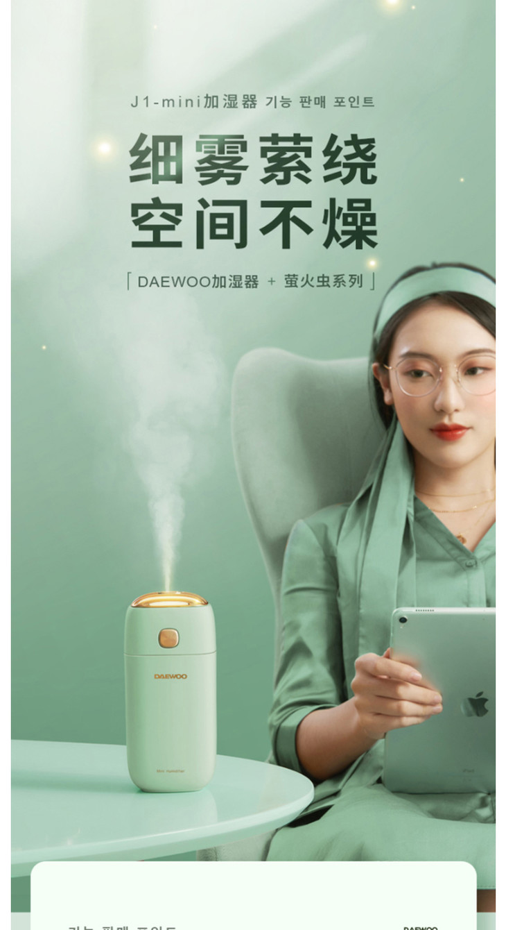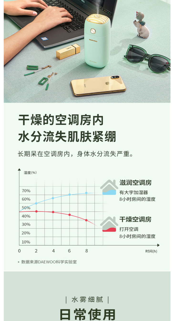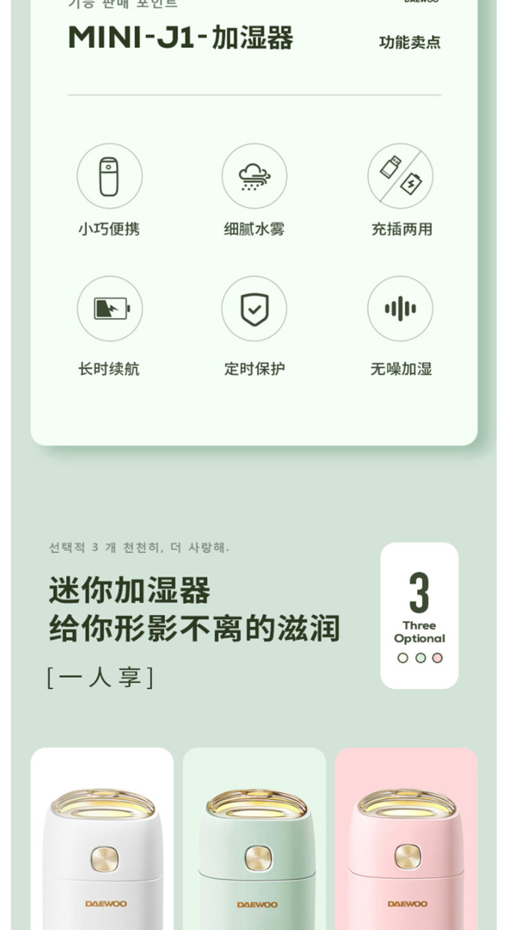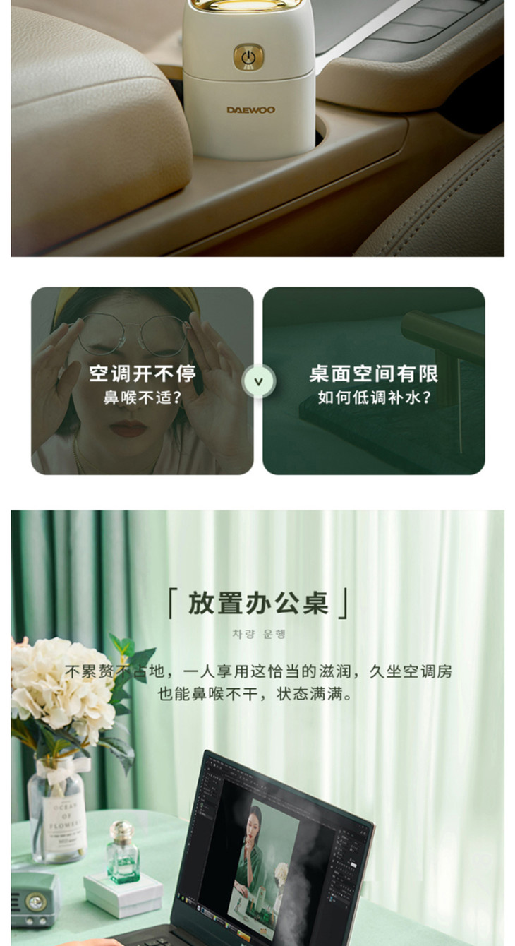 【大宇】DAEWOO/大宇加湿器迷你家用静音卧室车载孕婴充插两用办公室大宇加湿器电池款J1