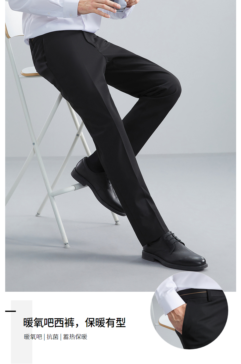 【特价】【蓄热暖氧吧】柒牌男装西裤男秋冬新款商务休闲气质黑色裤子 125H70220