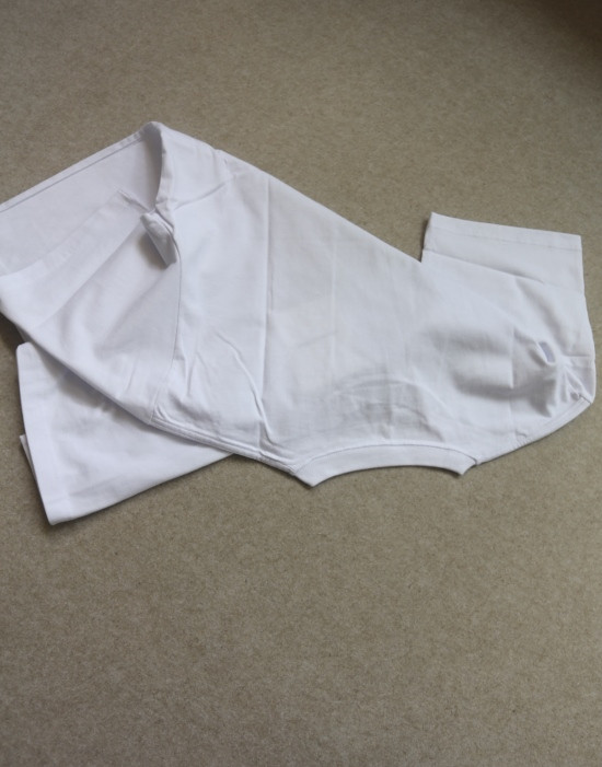 经成衣二次水洗 棉质并不硬 几乎没啥弹力 白色 穿浅色内衣 也不咋透肉