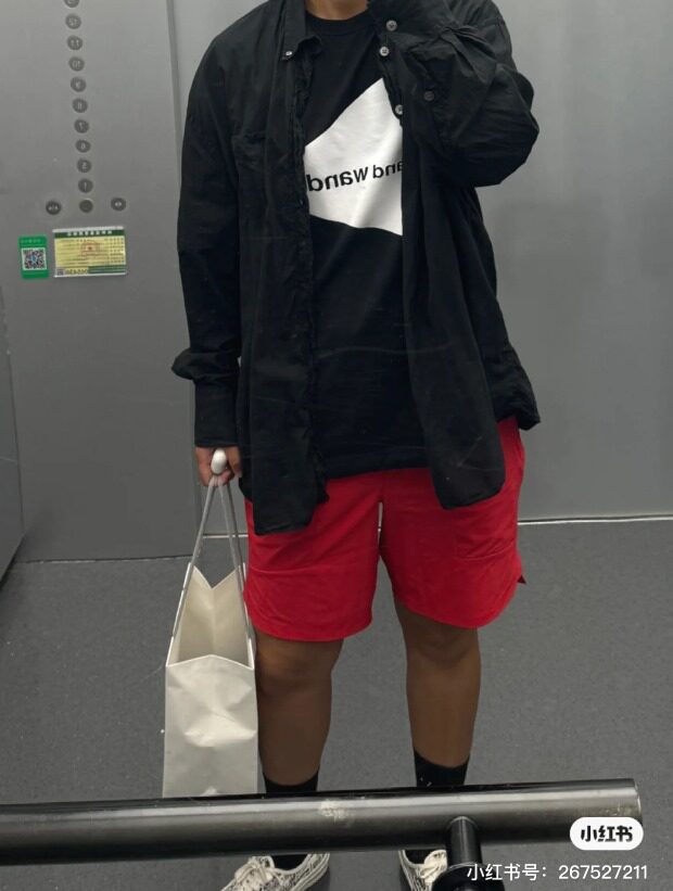 XL码 明显廓感 大腿三分之一了 就挺嘻哈范儿的 没L码效果好