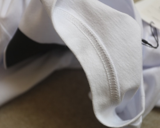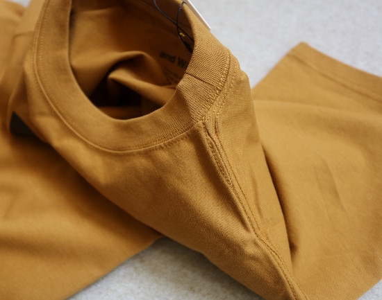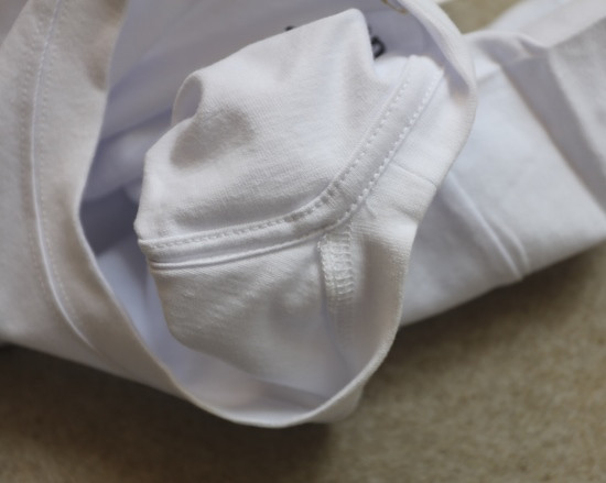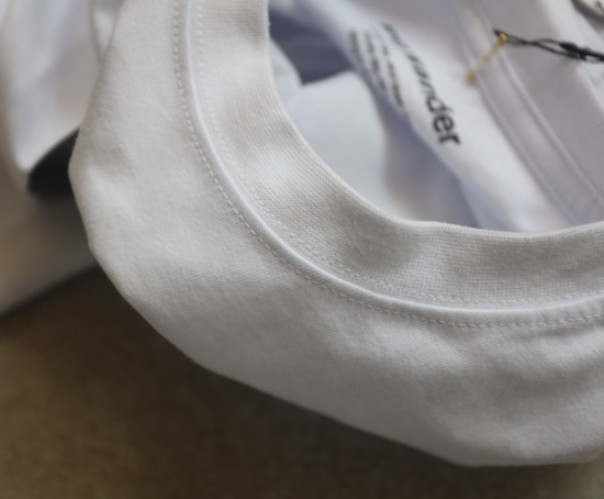 小圆领口 弹力螺纹的 非常典型的日式制衣 外缝式的拼接