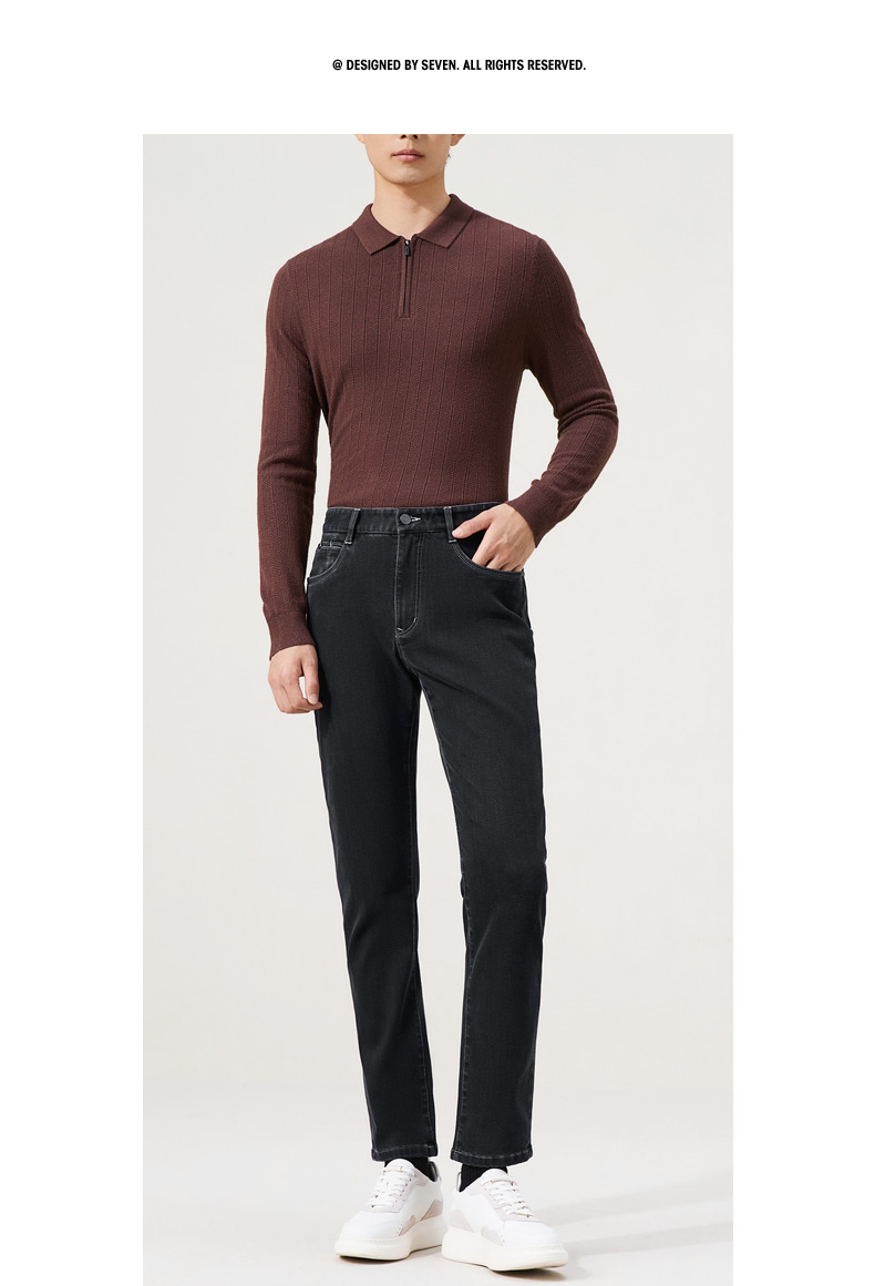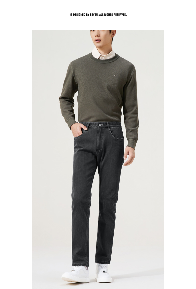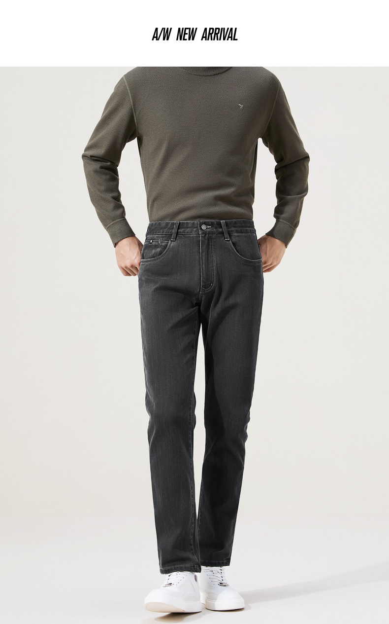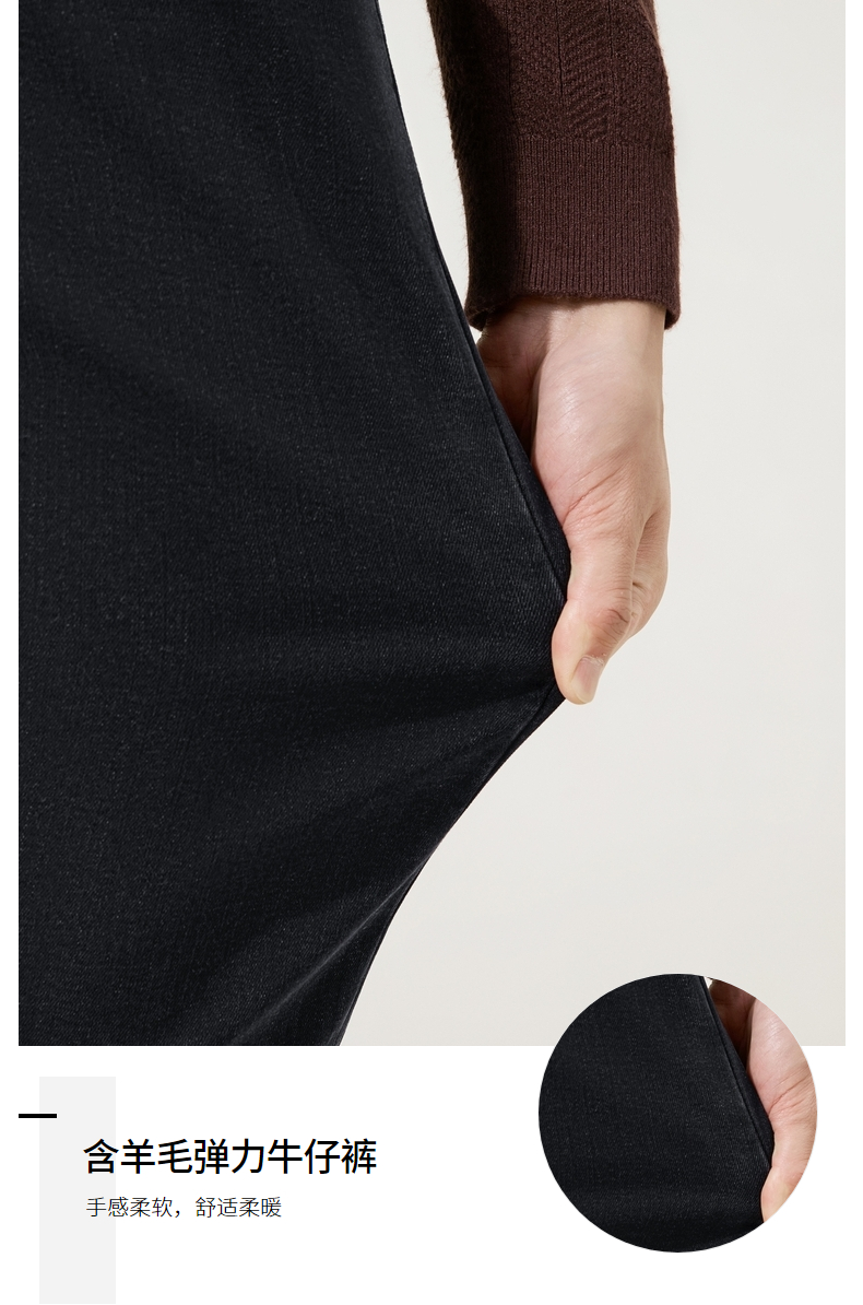 【含羊毛】柒牌高弹牛仔裤2025冬季新品内磨毛直通修身潮流长裤子129H71720