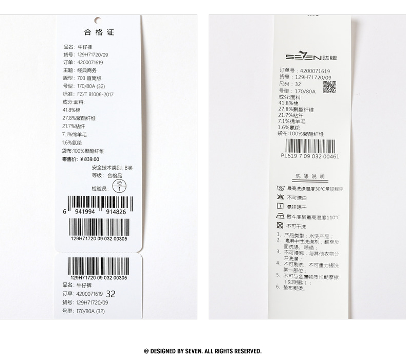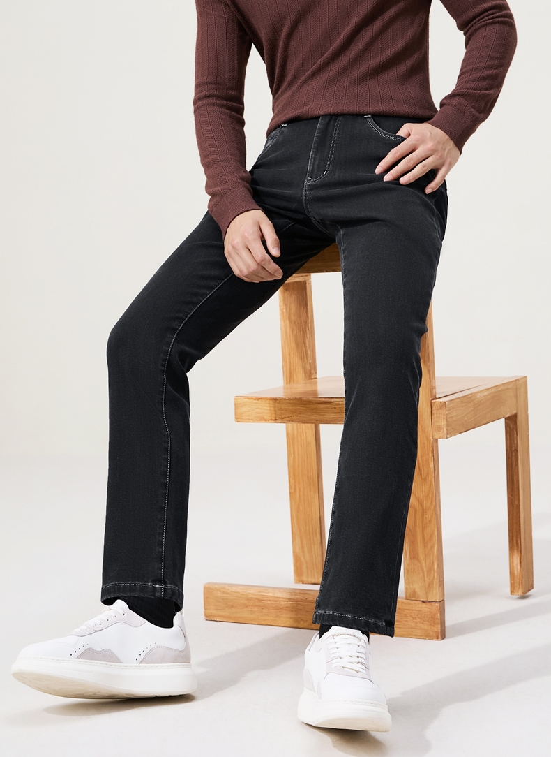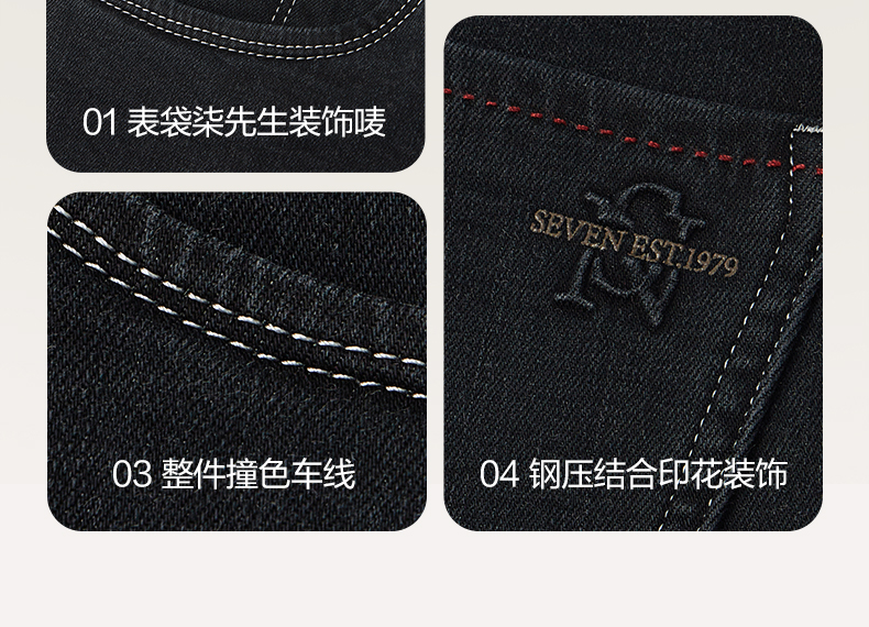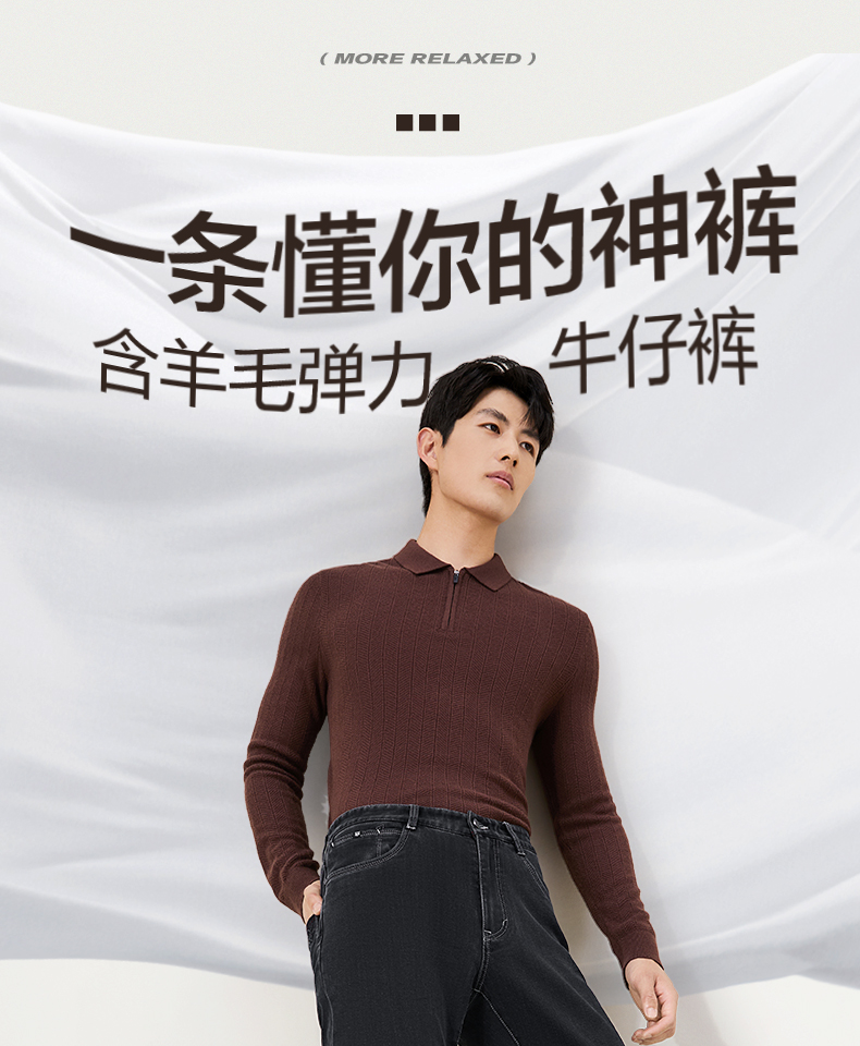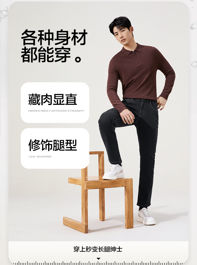 【含羊毛】柒牌高弹牛仔裤2025冬季新品内磨毛直通修身潮流长裤子129H71720
