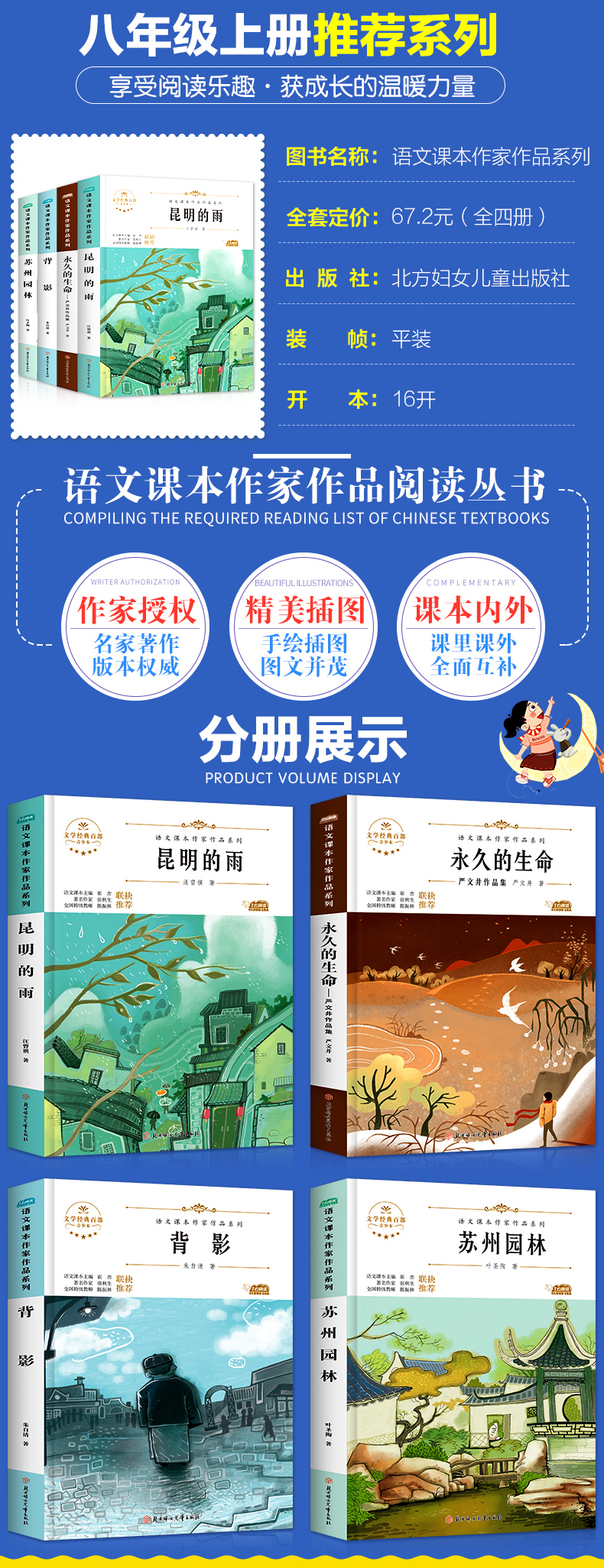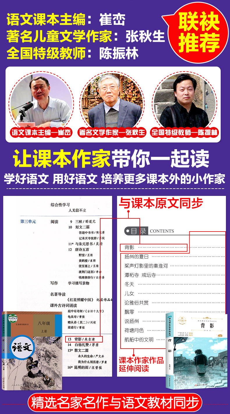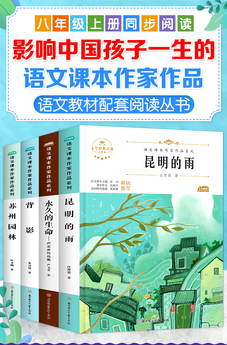 全套4册 背影朱自清 初二语文八年级上册必读课外书图书大全 初中生课外阅读书籍 儿童读物推荐10岁以上文学作品故事 青少年畅销书
