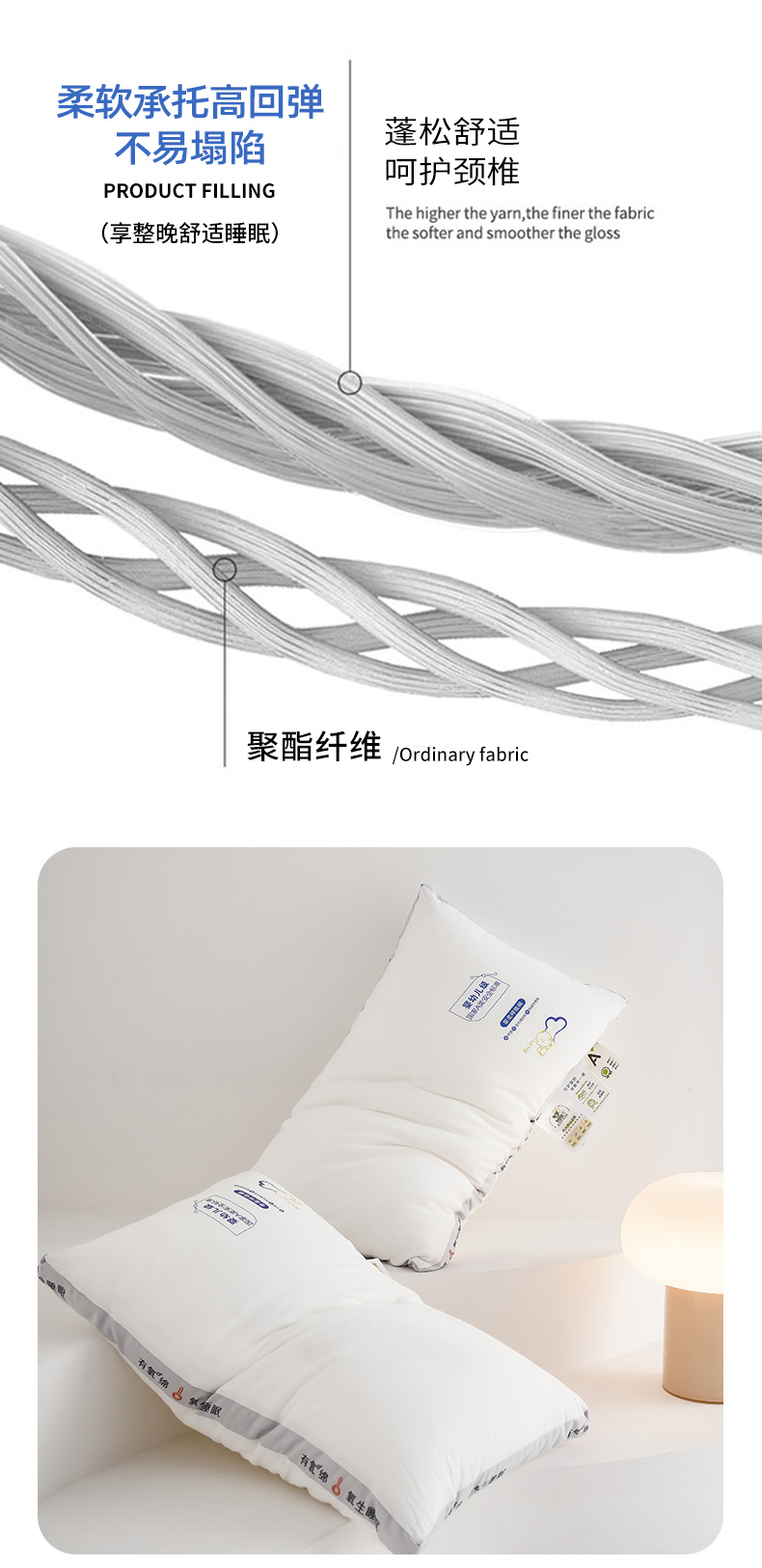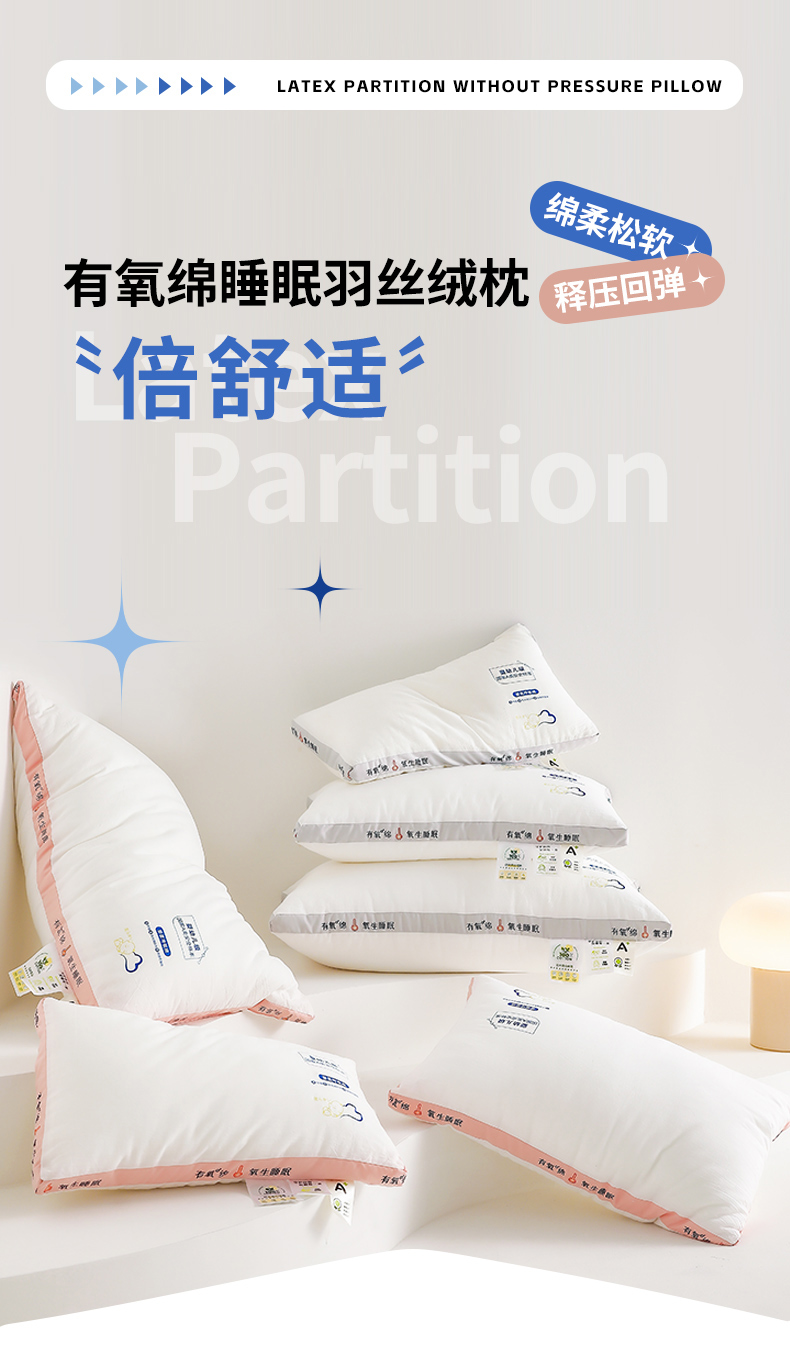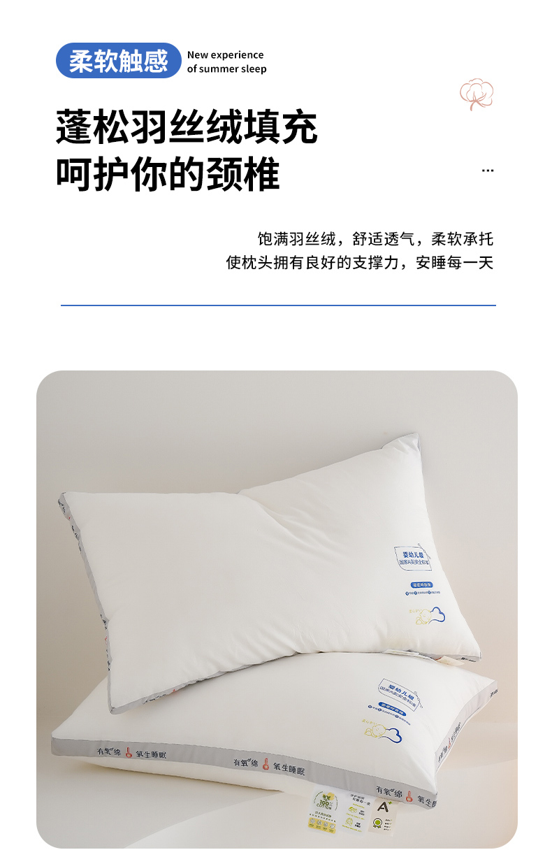【79元起2个】深睡更持久 倍舒适有氧绵羽丝绒枕芯 A类纯棉柔软蓬松枕芯