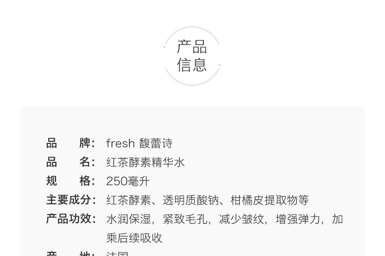 【跨境】Fresh 馥蕾诗 红茶酵素精华液 250毫升 滋润补水爽肤水 提亮肤色