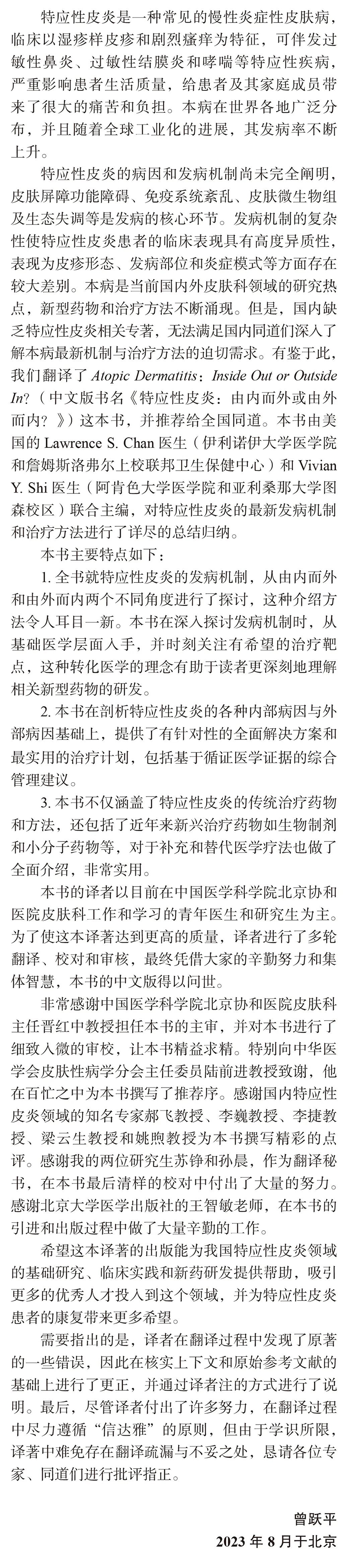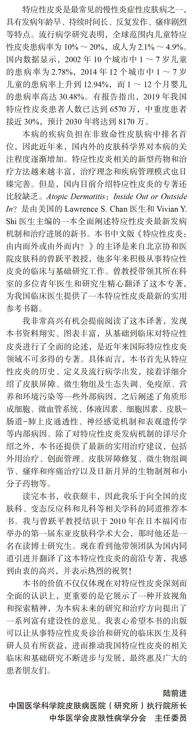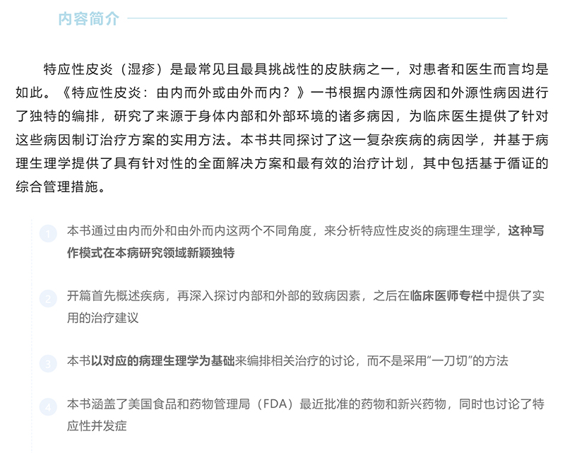 特应性皮炎 由内而外或由外而内 曾跃平主译 病理生理学分析 临床治疗方案制订实用方法 皮肤病学9787565930300北京大学医学出版社