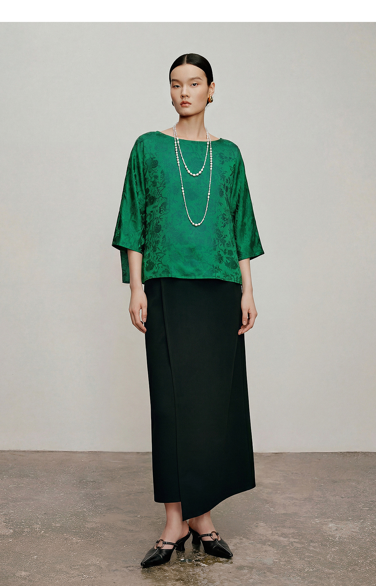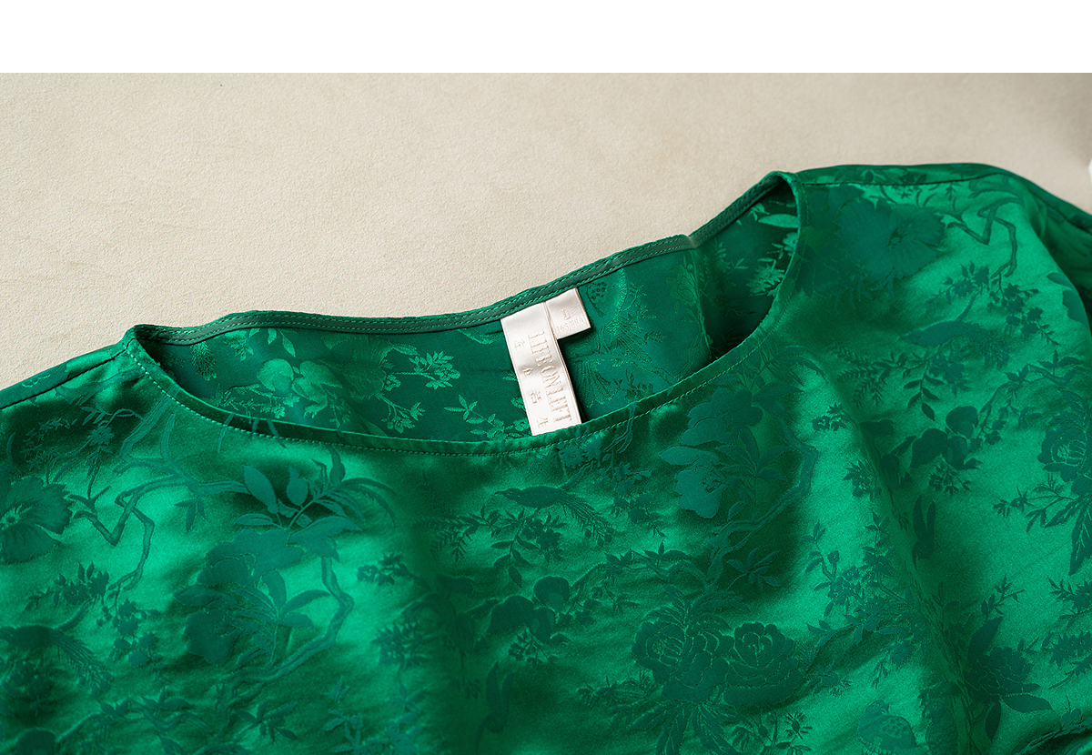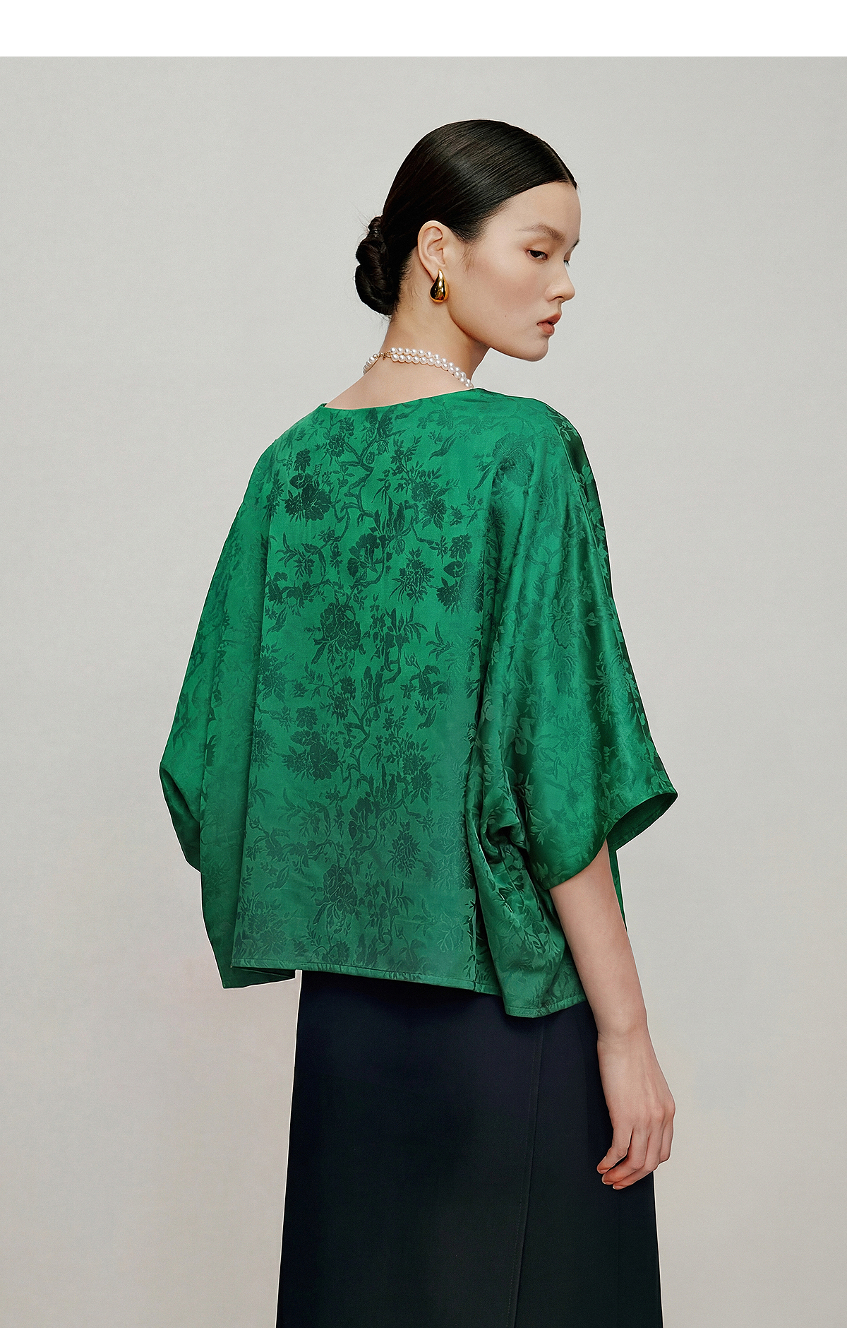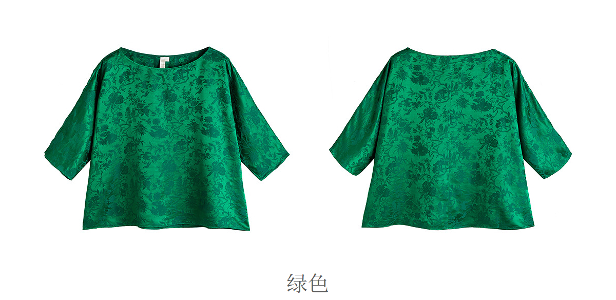 【林栖设计小店】琉璃繁缕|绿色优雅提花百搭宽松显瘦夏新品衬衫上衣T1962302