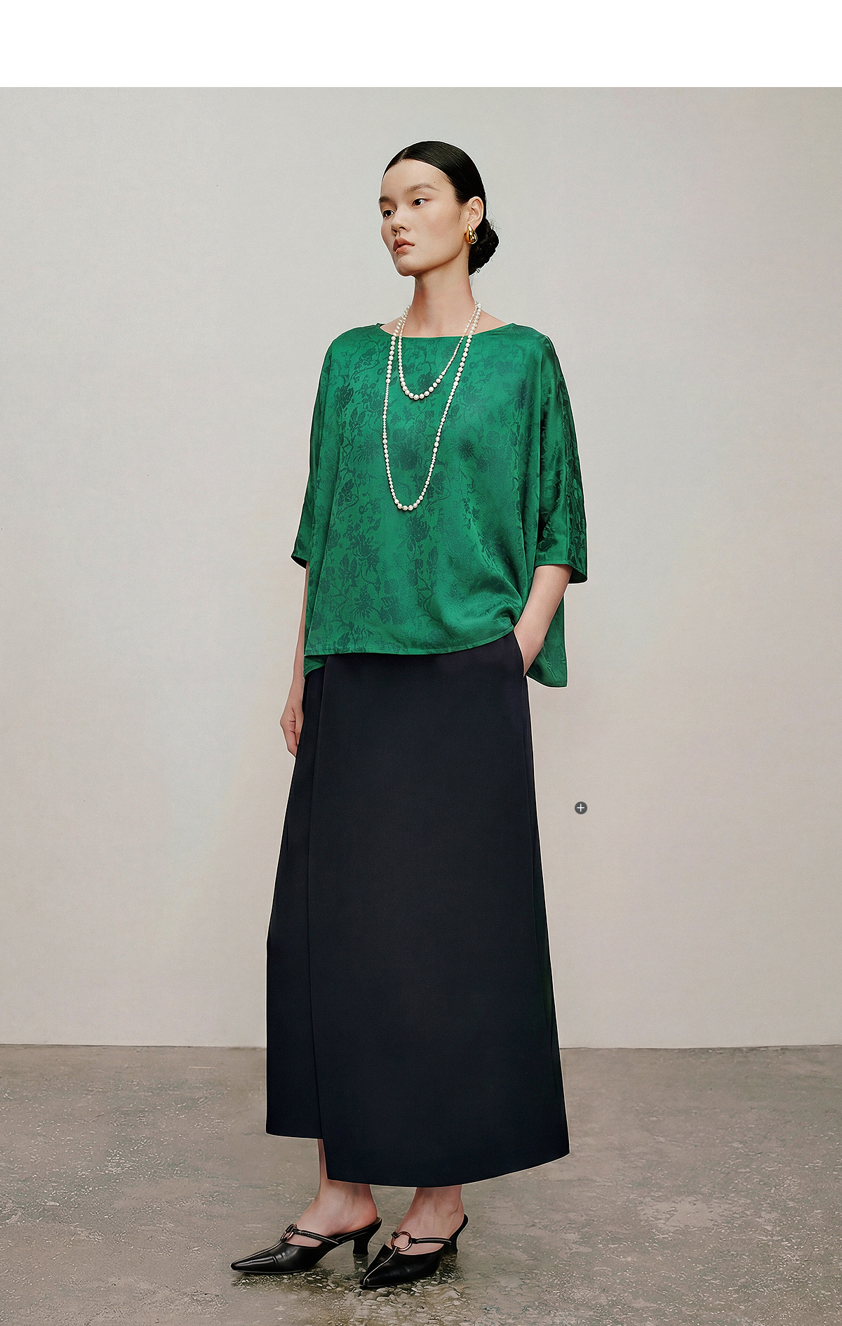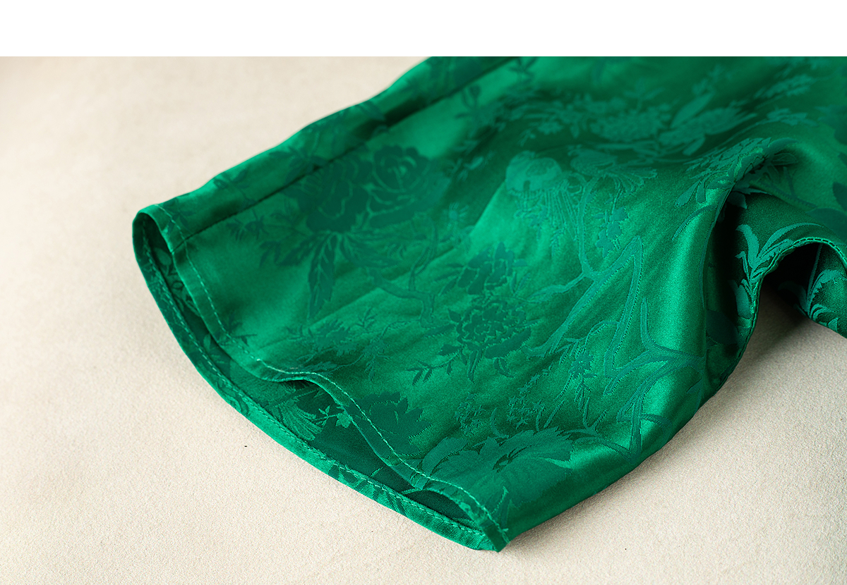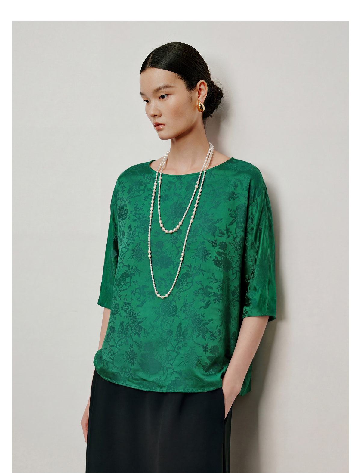【林栖设计小店】琉璃繁缕|绿色优雅提花百搭宽松显瘦夏新品衬衫上衣T1962302