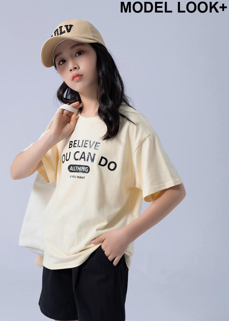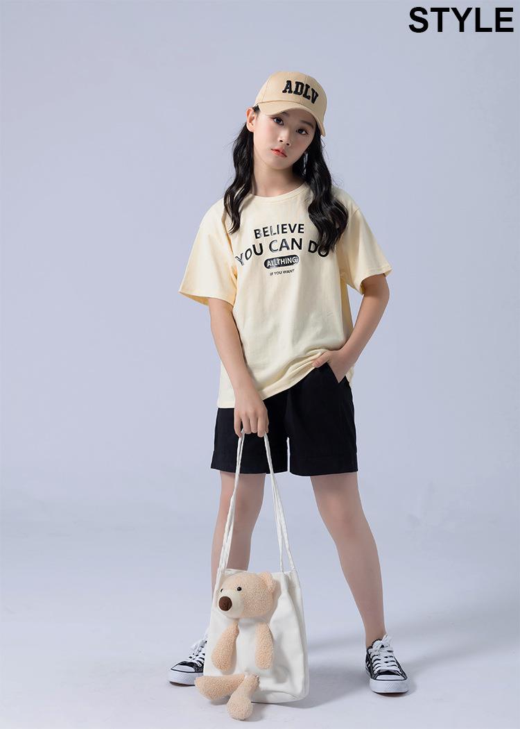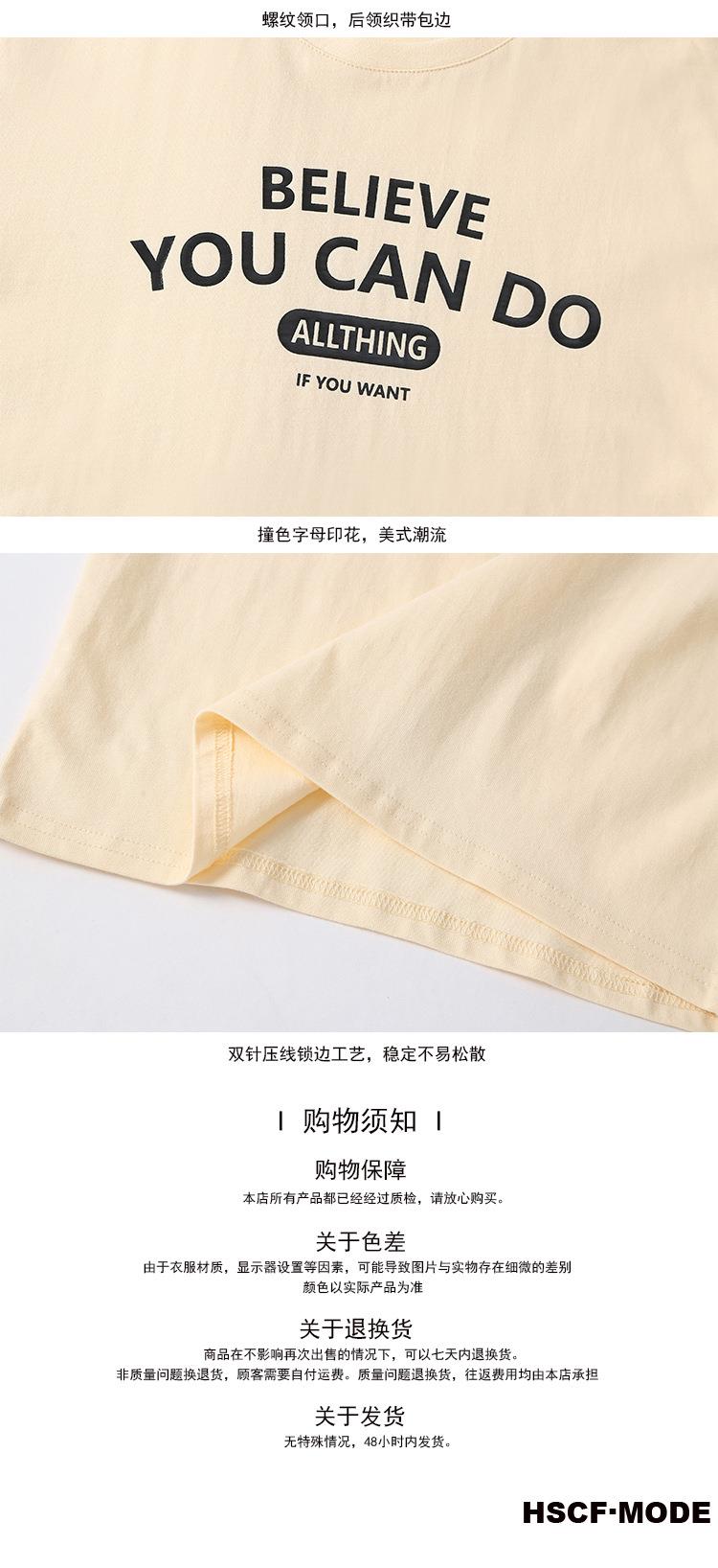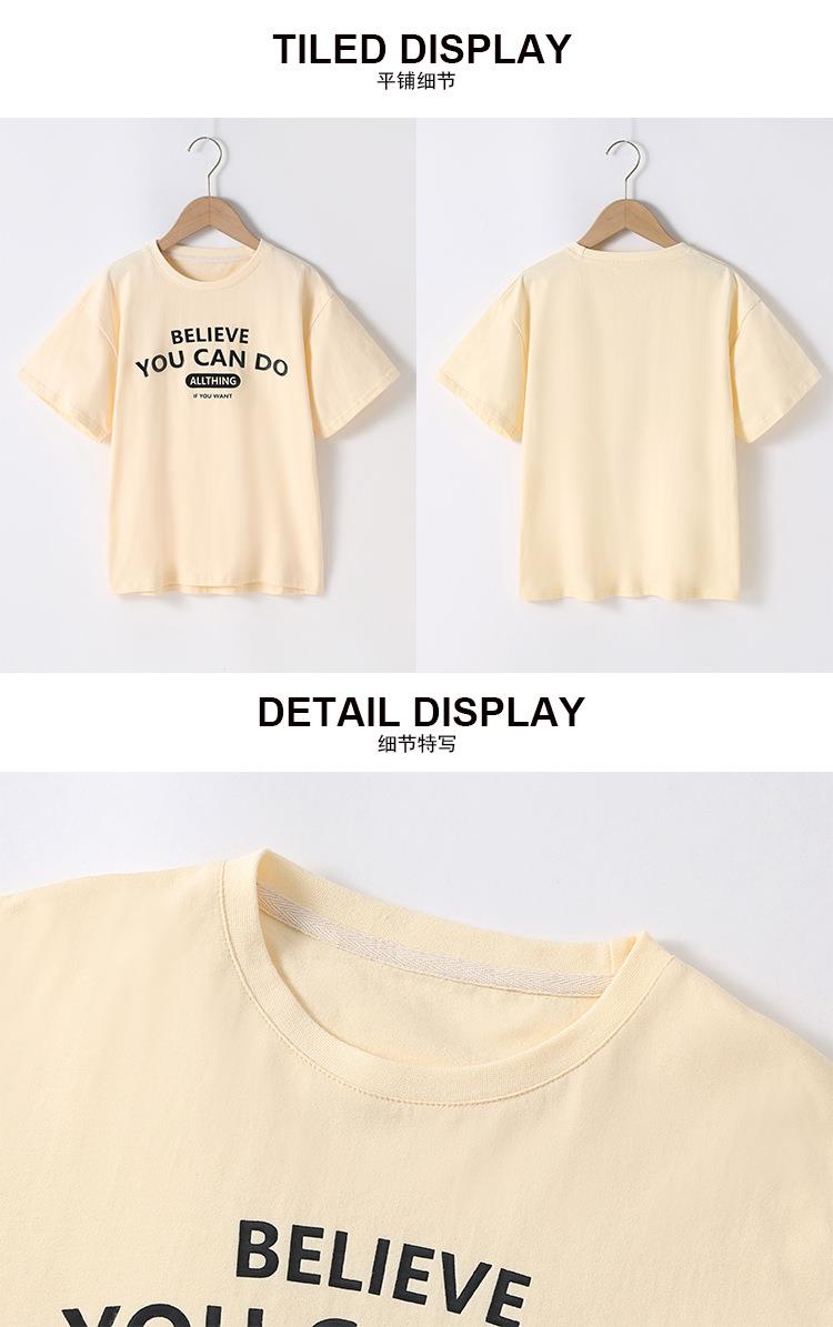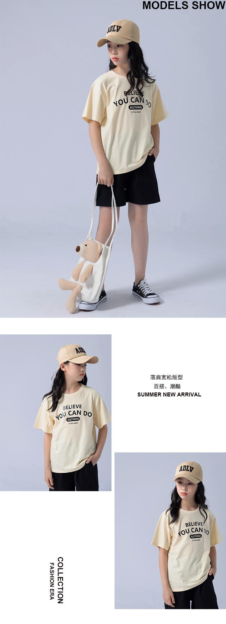 女童T恤2023夏季字母印花纯棉短袖T恤韩版时尚大童青少年女T恤