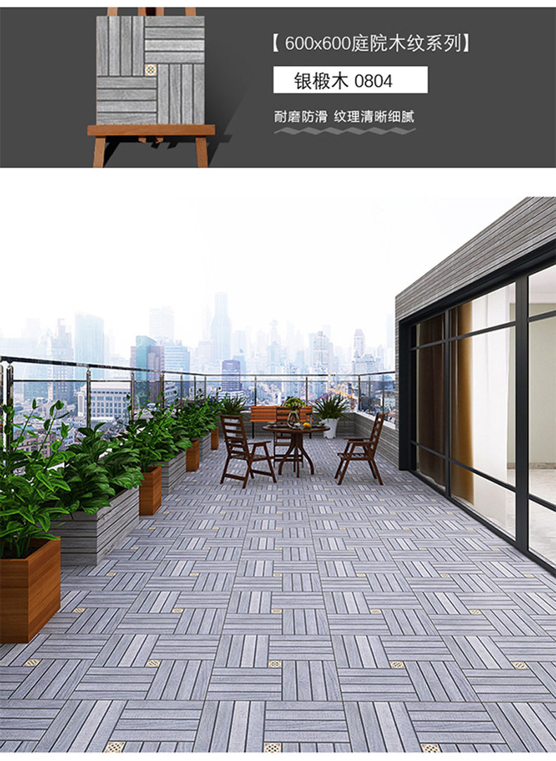 阳台砖露台户外地砖防滑仿院子庭院别墅抗冻瓷砖花园地砖木纹室外 商品图4