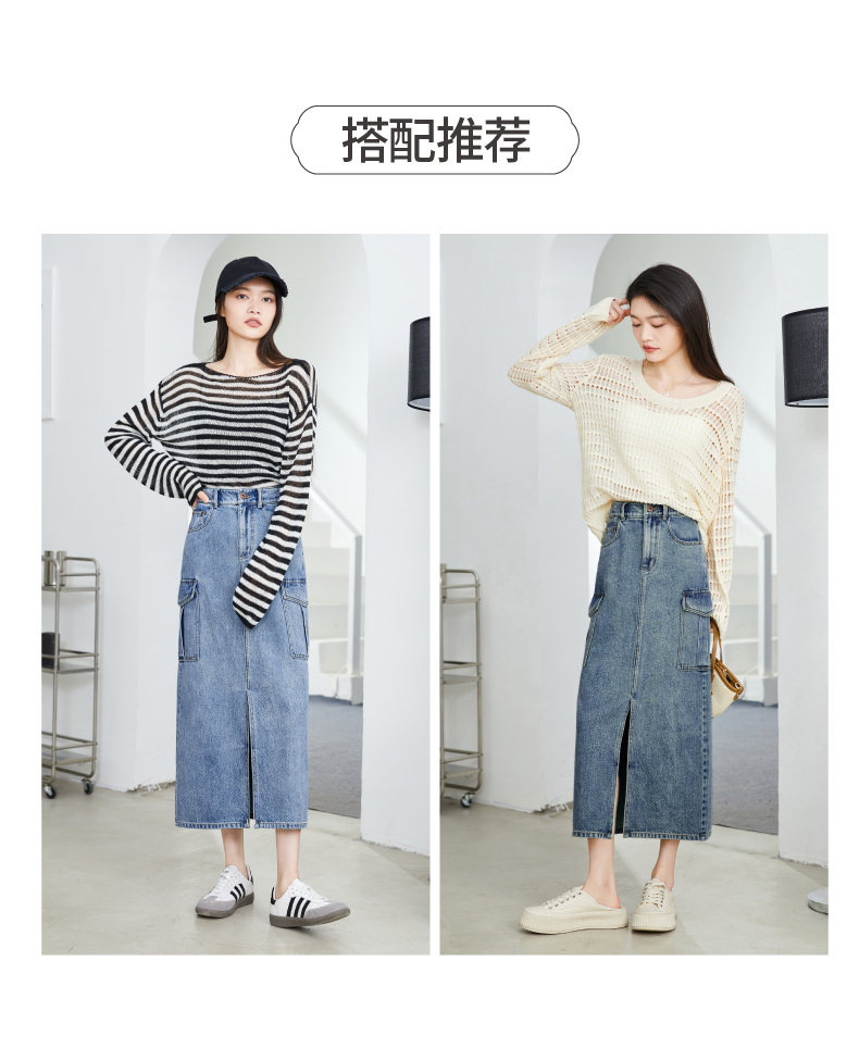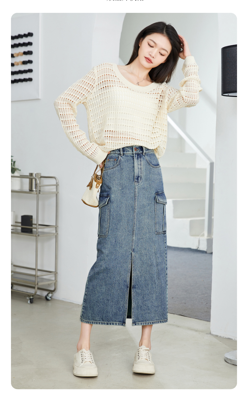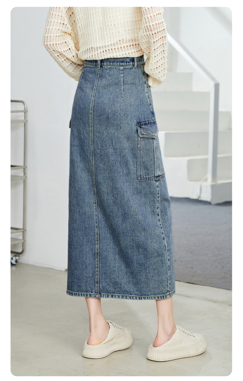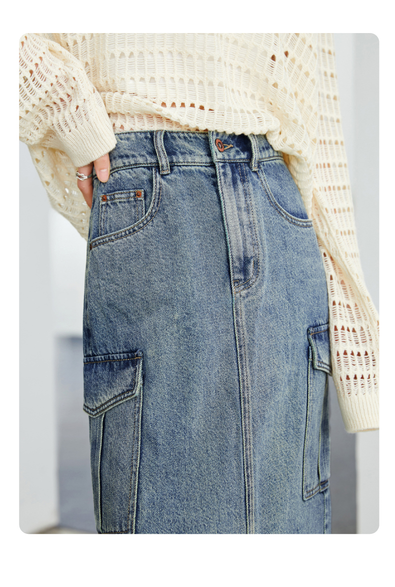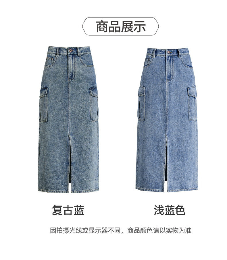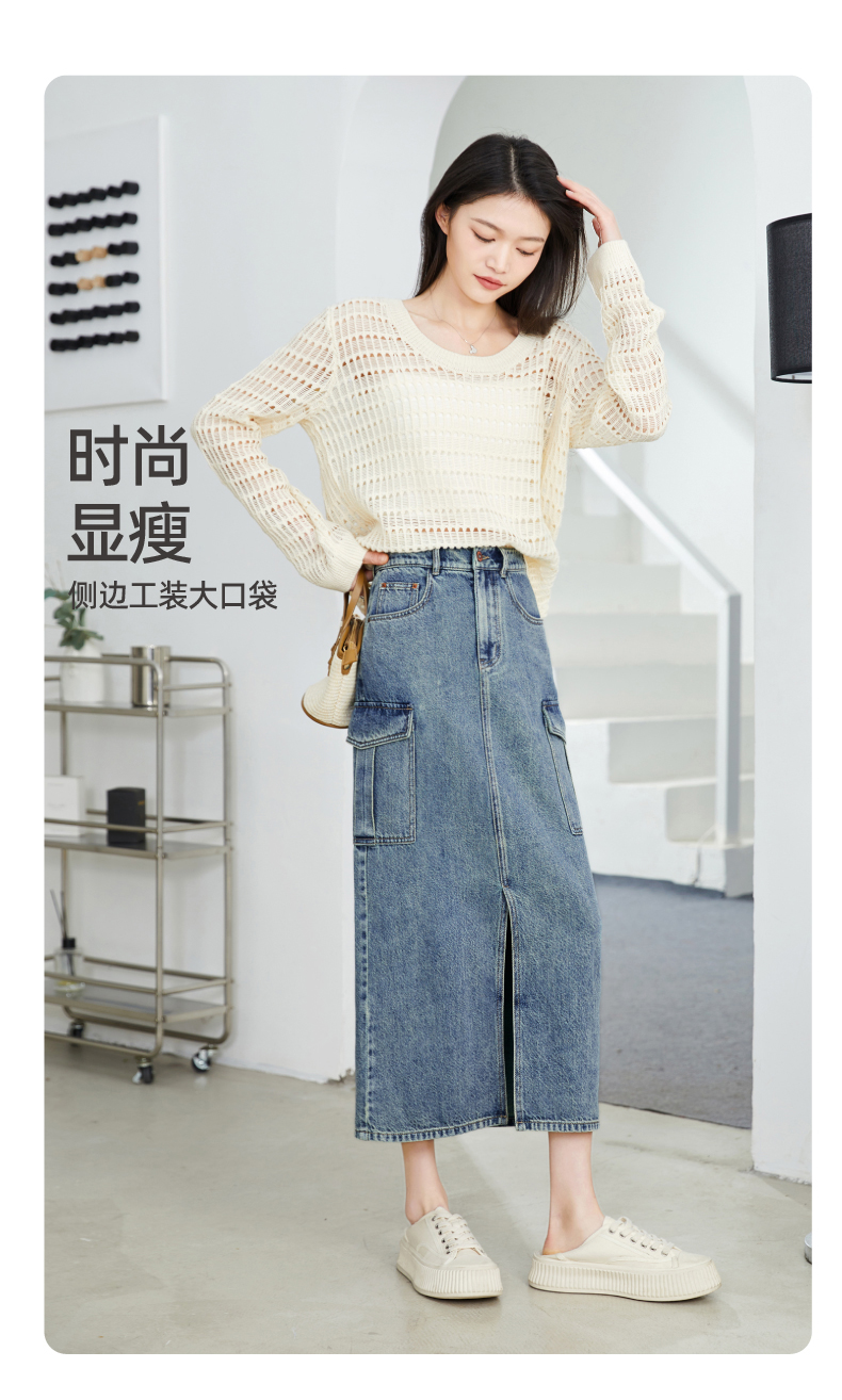 【H版型-工装牛仔裙】逸阳春夏季前开叉显高显瘦大口袋包臀半身裙0893
