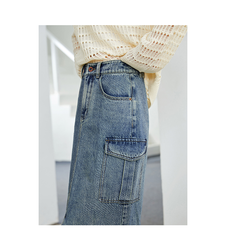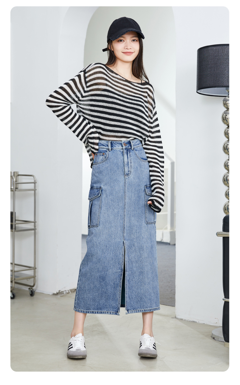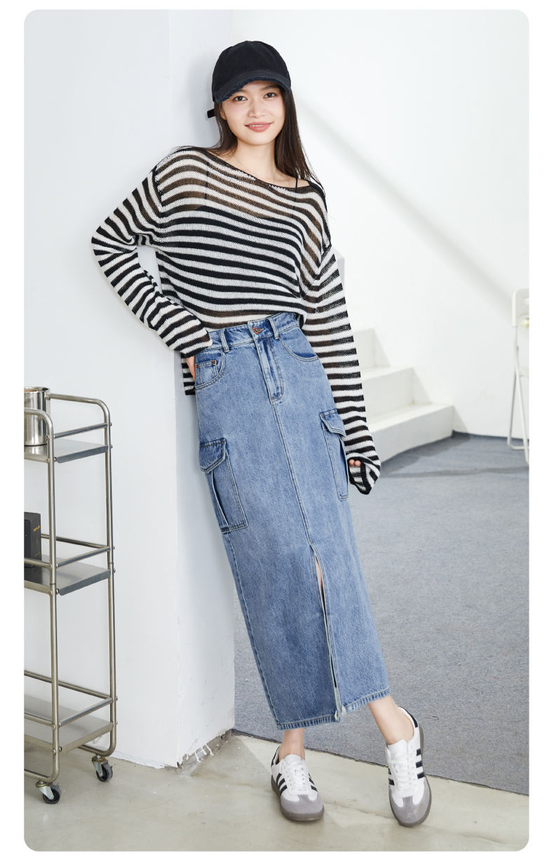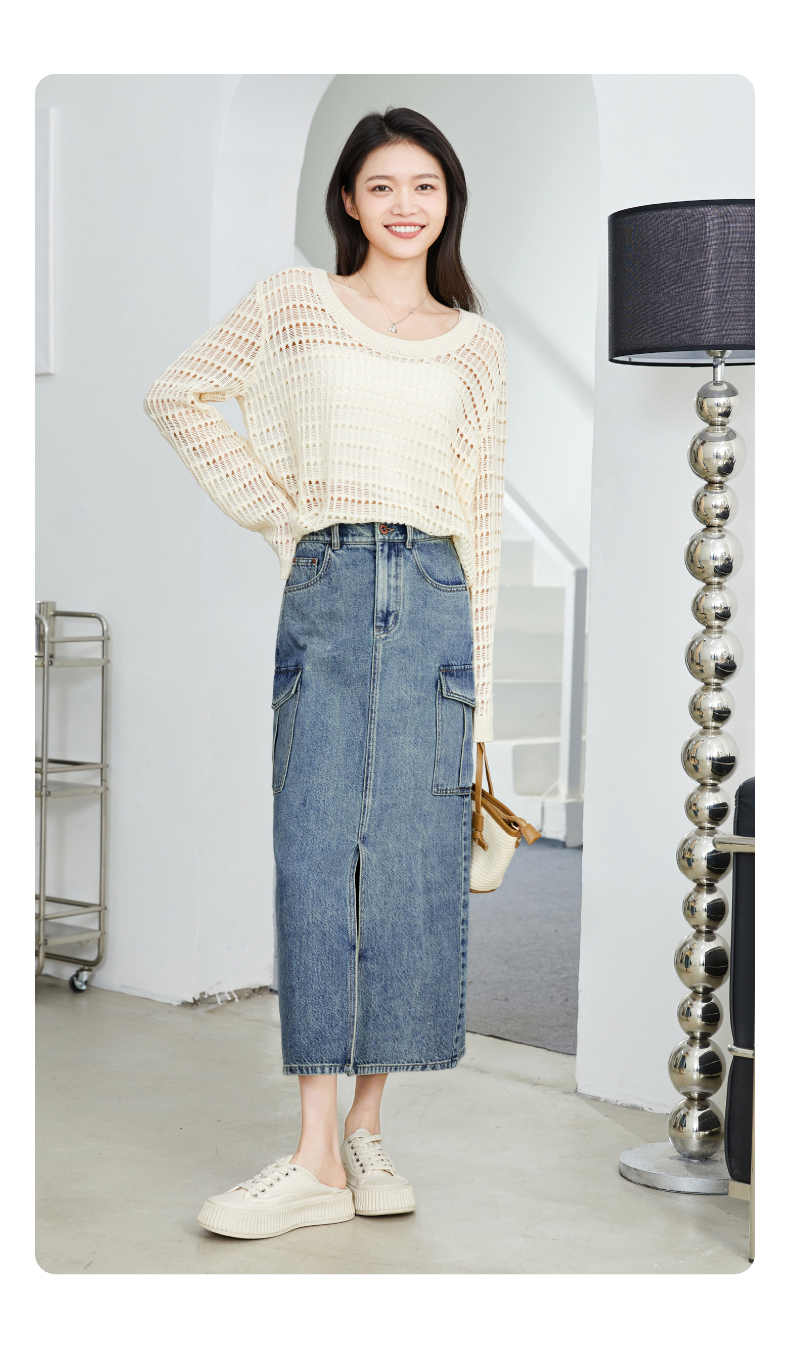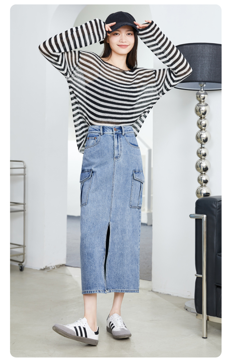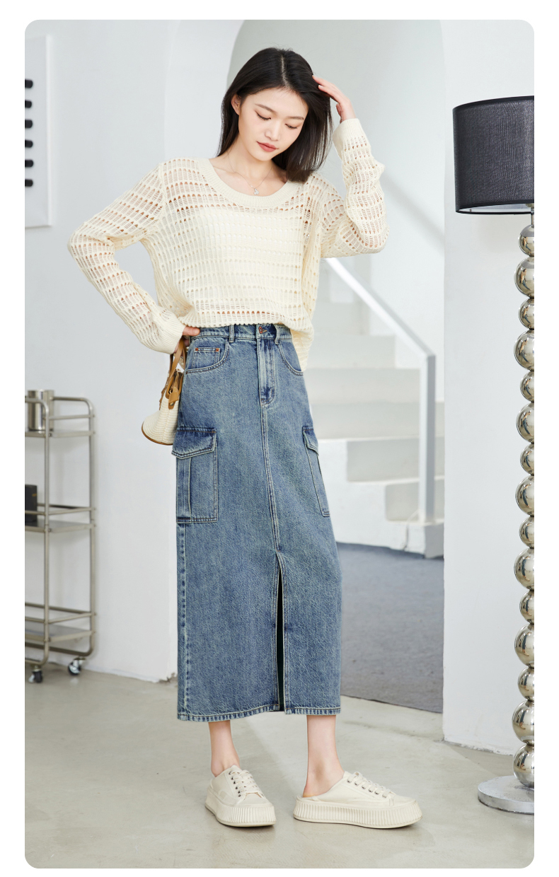 【H版型-工装牛仔裙】逸阳春夏季前开叉显高显瘦大口袋包臀半身裙0893